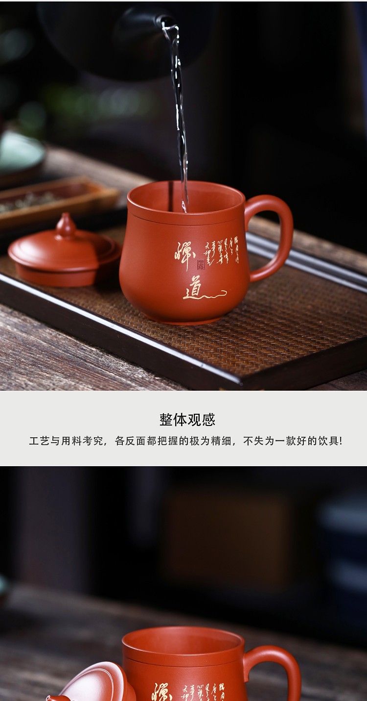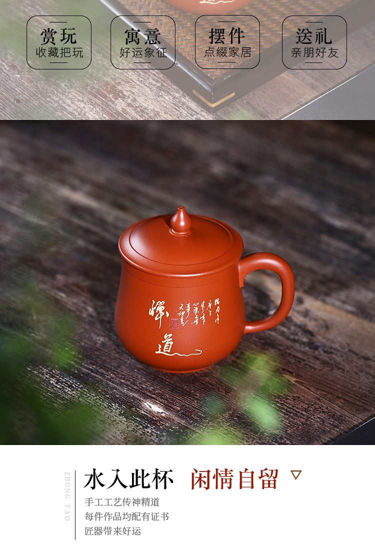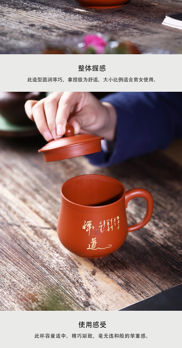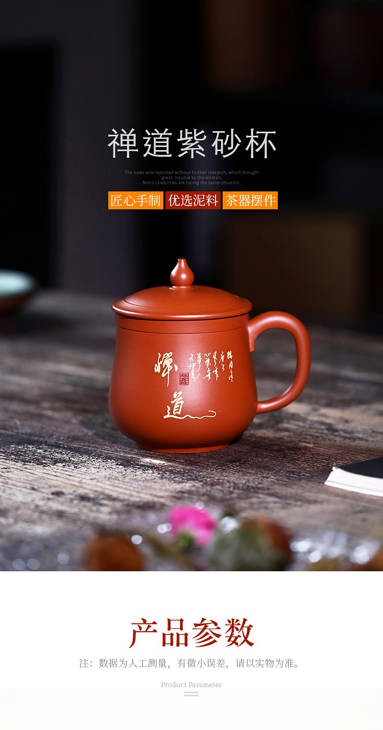 京峰阁 茶具茶杯宜兴紫砂朱泥禅道办公杯 全手工办公室带盖泡茶杯子水杯 紫砂盖杯A-20