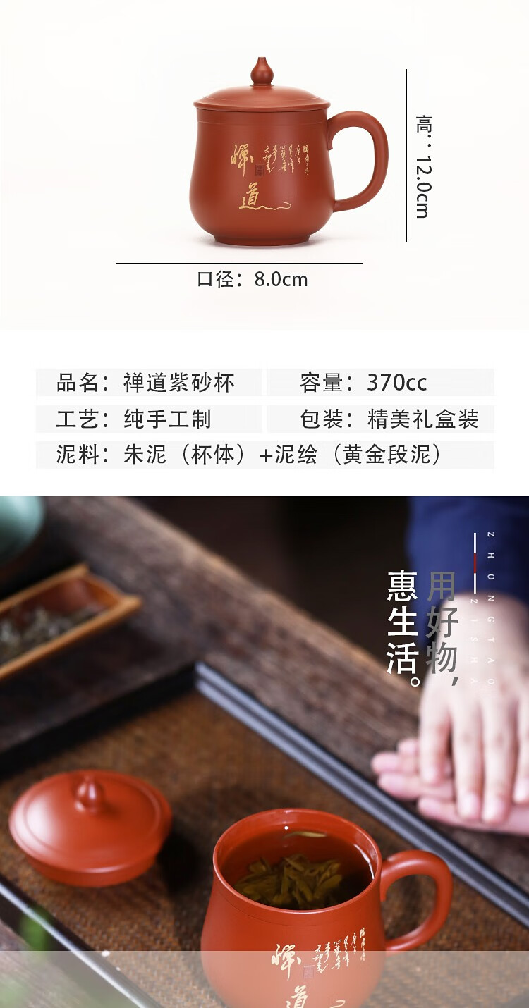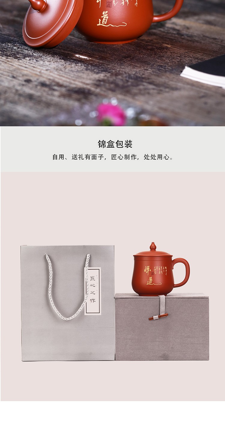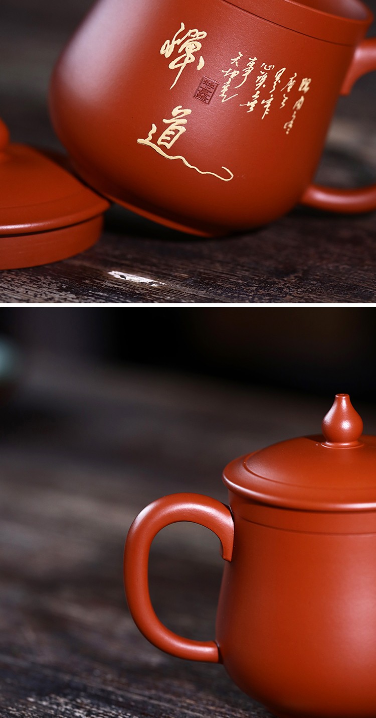 京峰阁 茶具茶杯宜兴紫砂朱泥禅道办公杯 全手工办公室带盖泡茶杯子水杯 紫砂盖杯A-20