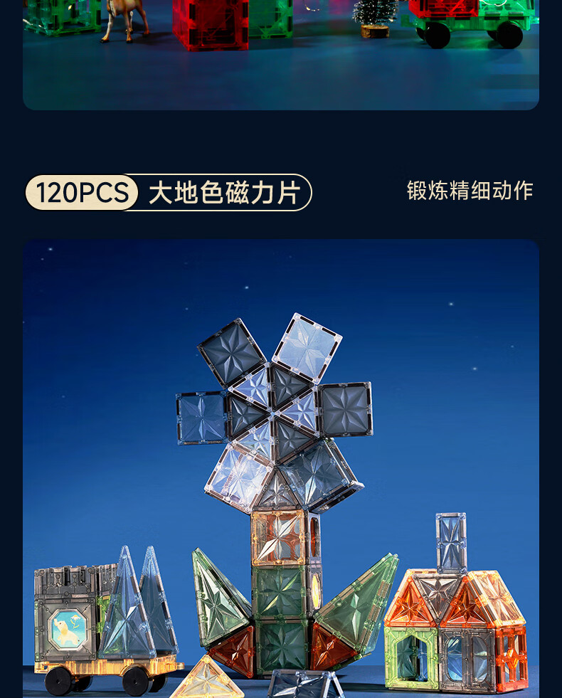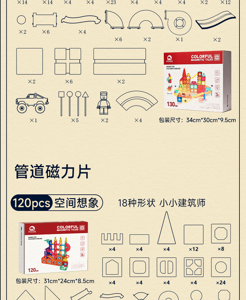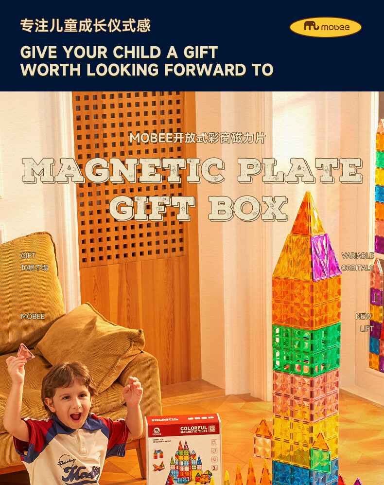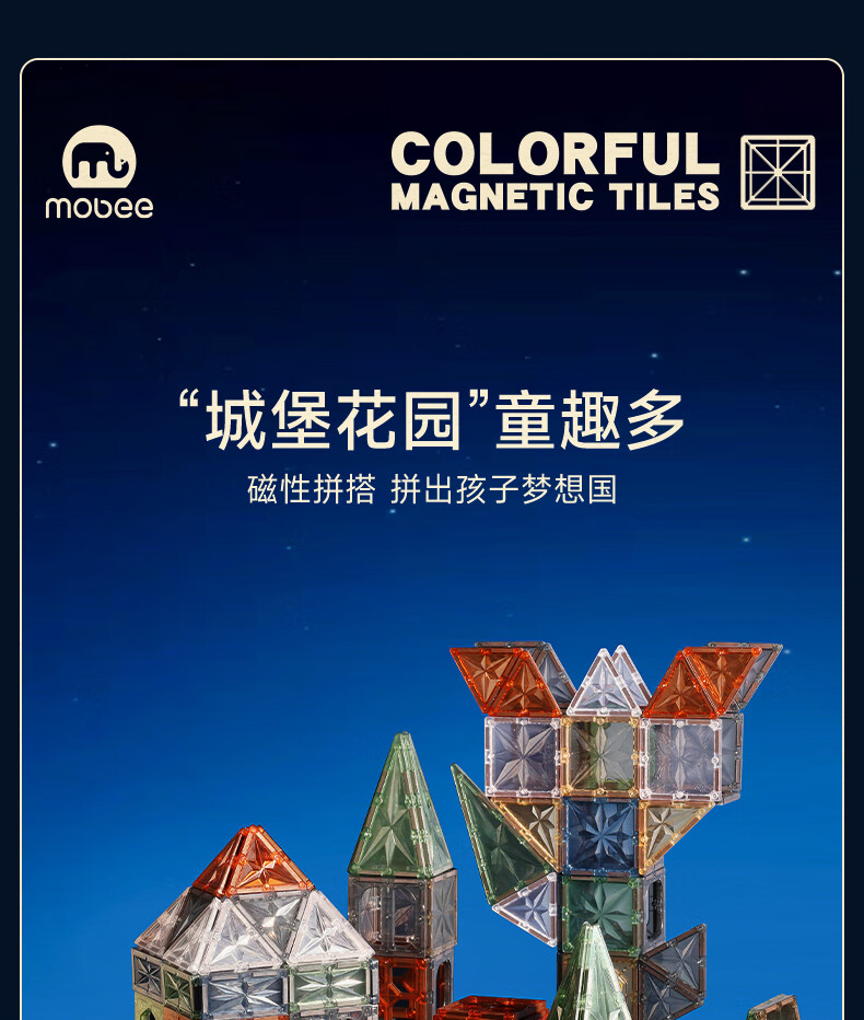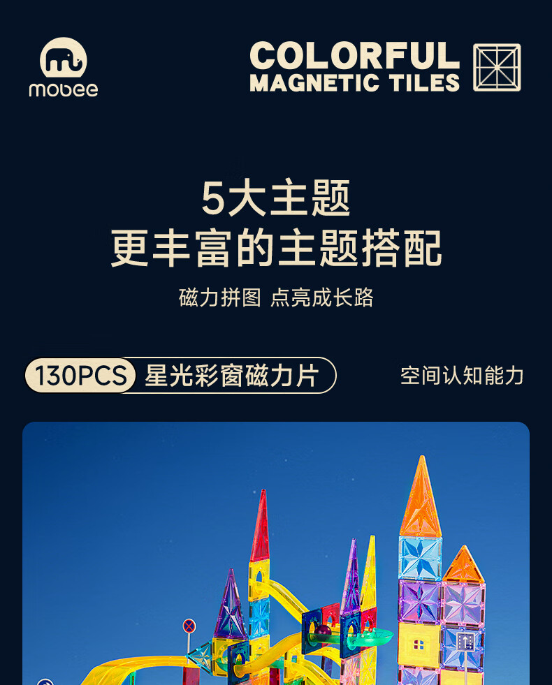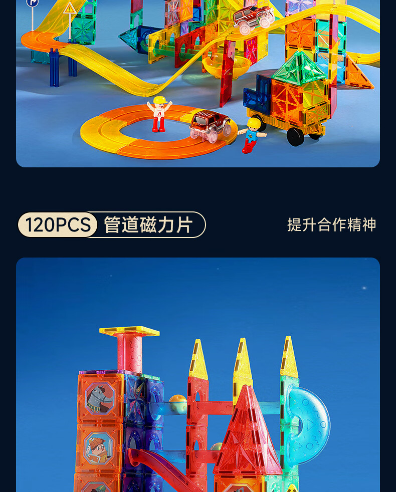 mobee儿童磁力片3-6岁男女孩生日礼物7-14岁磁铁拼装早教益智玩具圣诞 常规色管道磁力片-120套装【赠收纳袋】 节日礼物 强劲磁吸 大面积防误吞