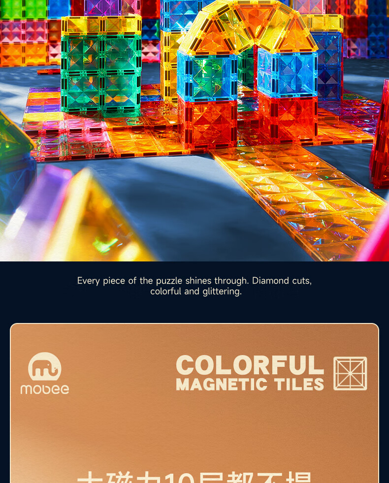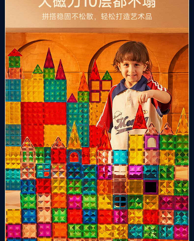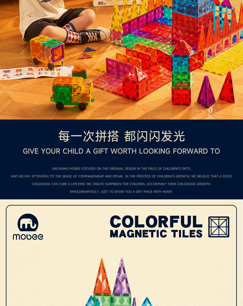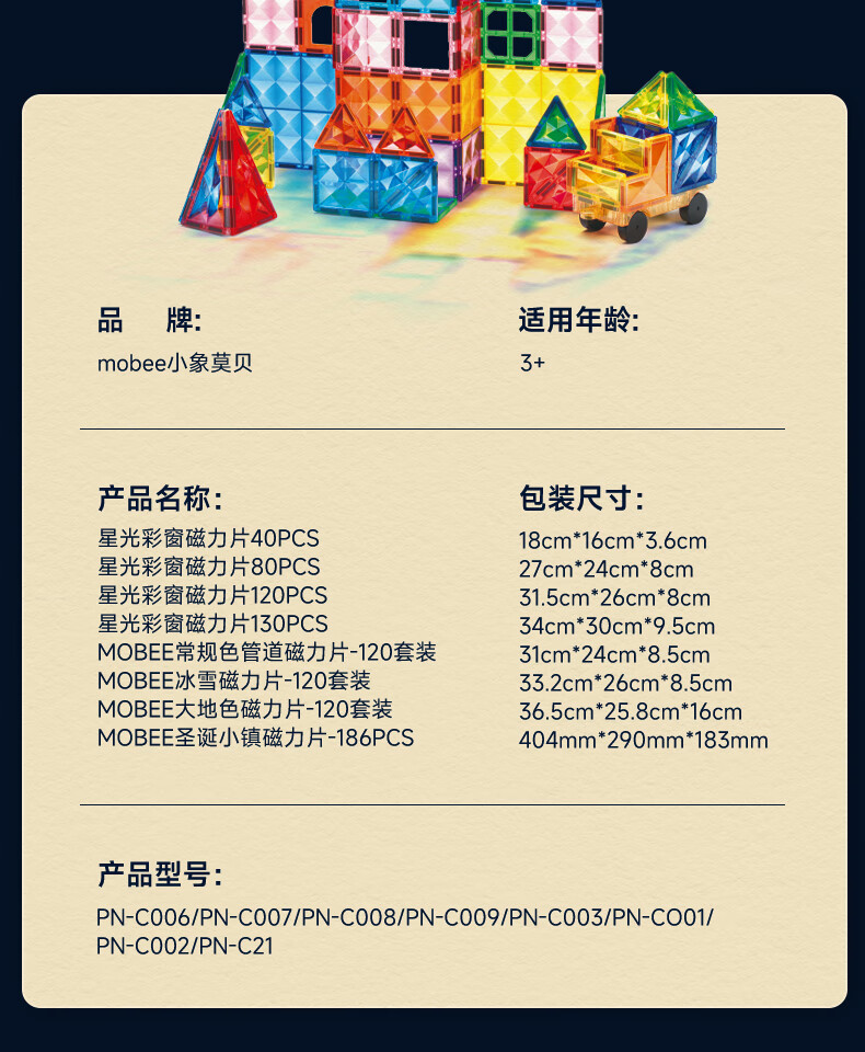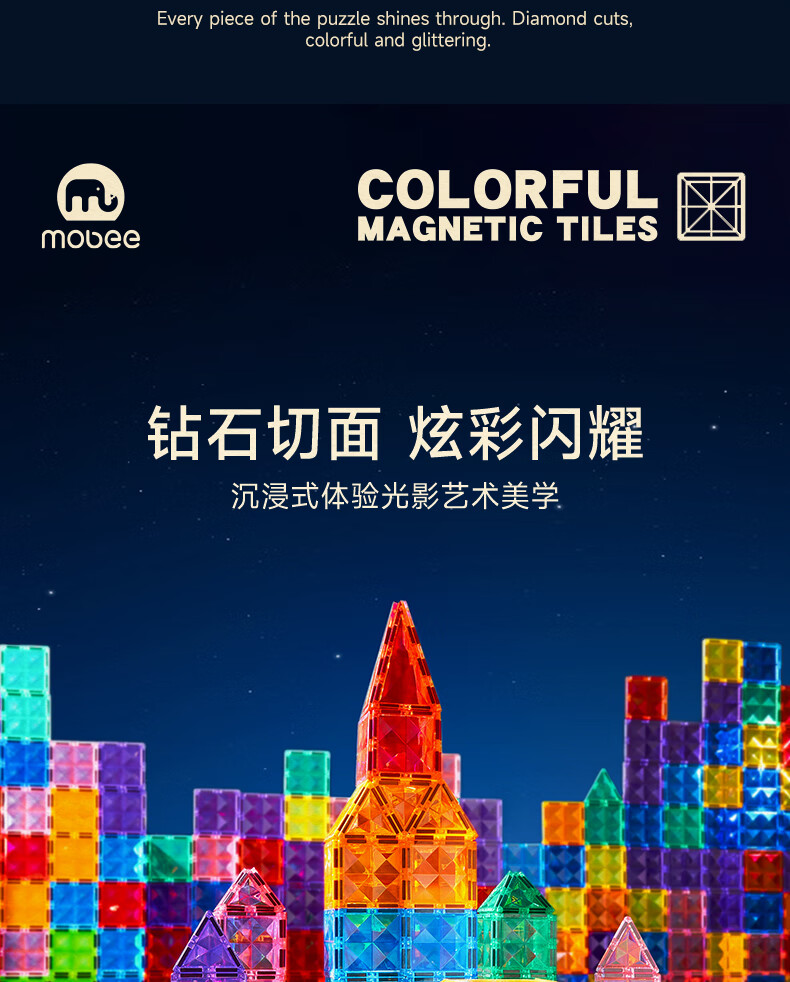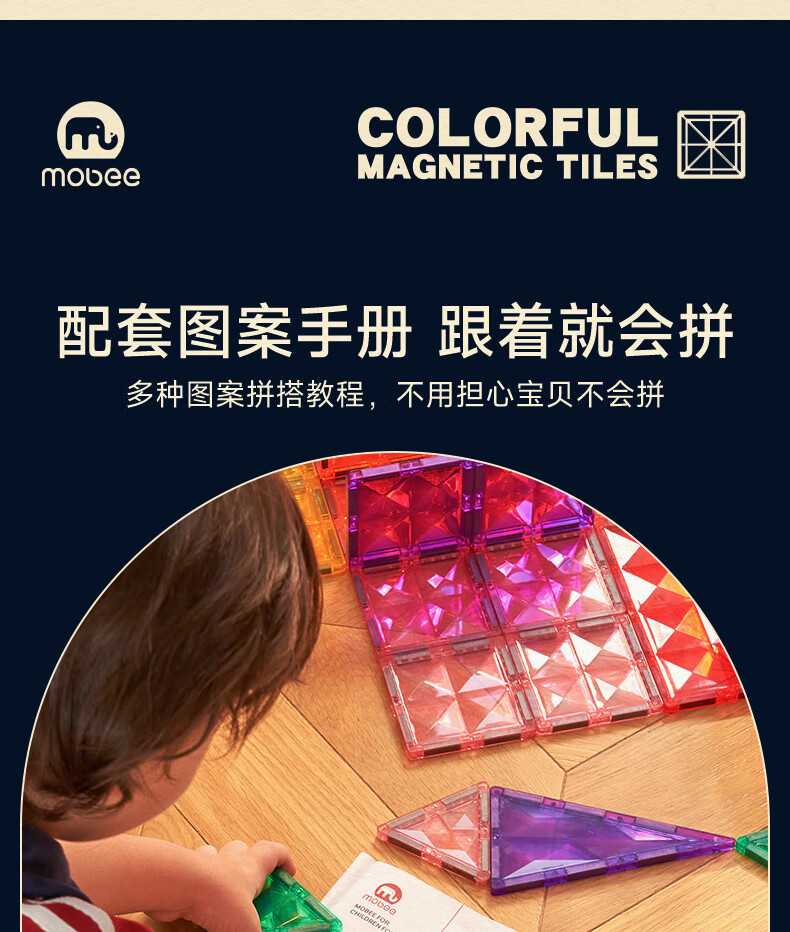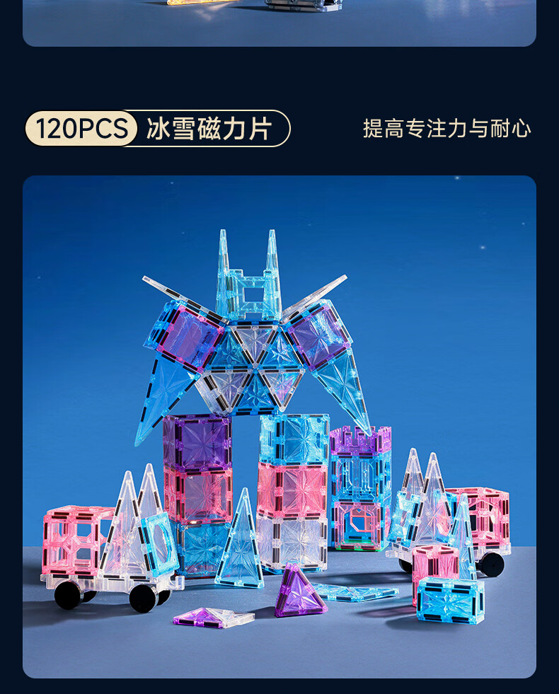 mobee儿童磁力片3-6岁男女孩生日礼物7-14岁磁铁拼装早教益智玩具圣诞 常规色管道磁力片-120套装【赠收纳袋】 节日礼物 强劲磁吸 大面积防误吞