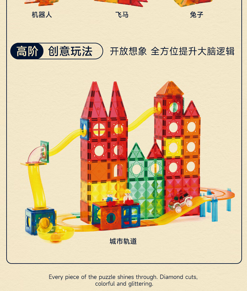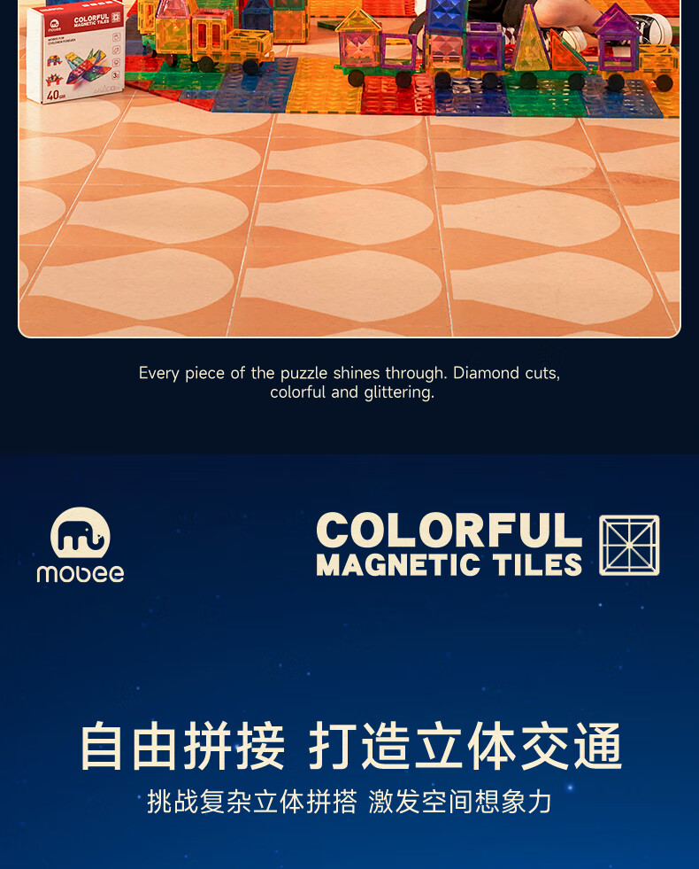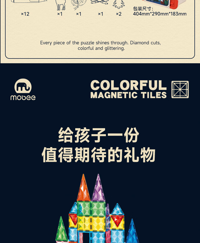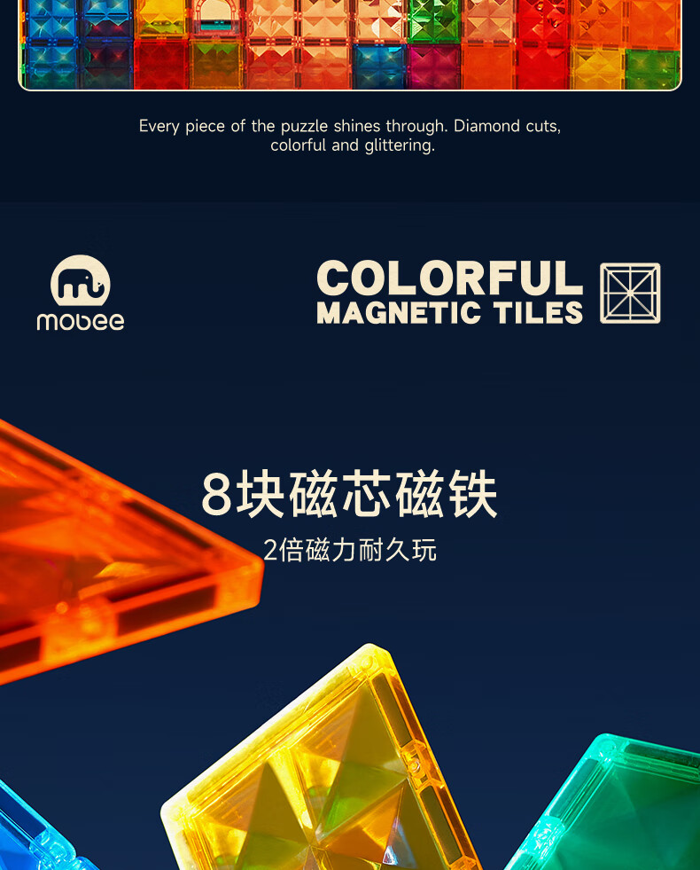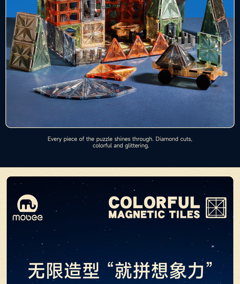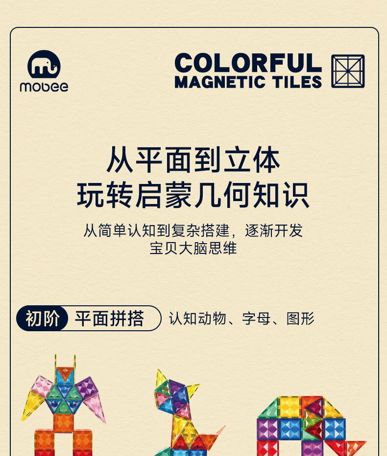 mobee儿童磁力片3-6岁男女孩生日礼物7-14岁磁铁拼装早教益智玩具圣诞 常规色管道磁力片-120套装【赠收纳袋】 节日礼物 强劲磁吸 大面积防误吞