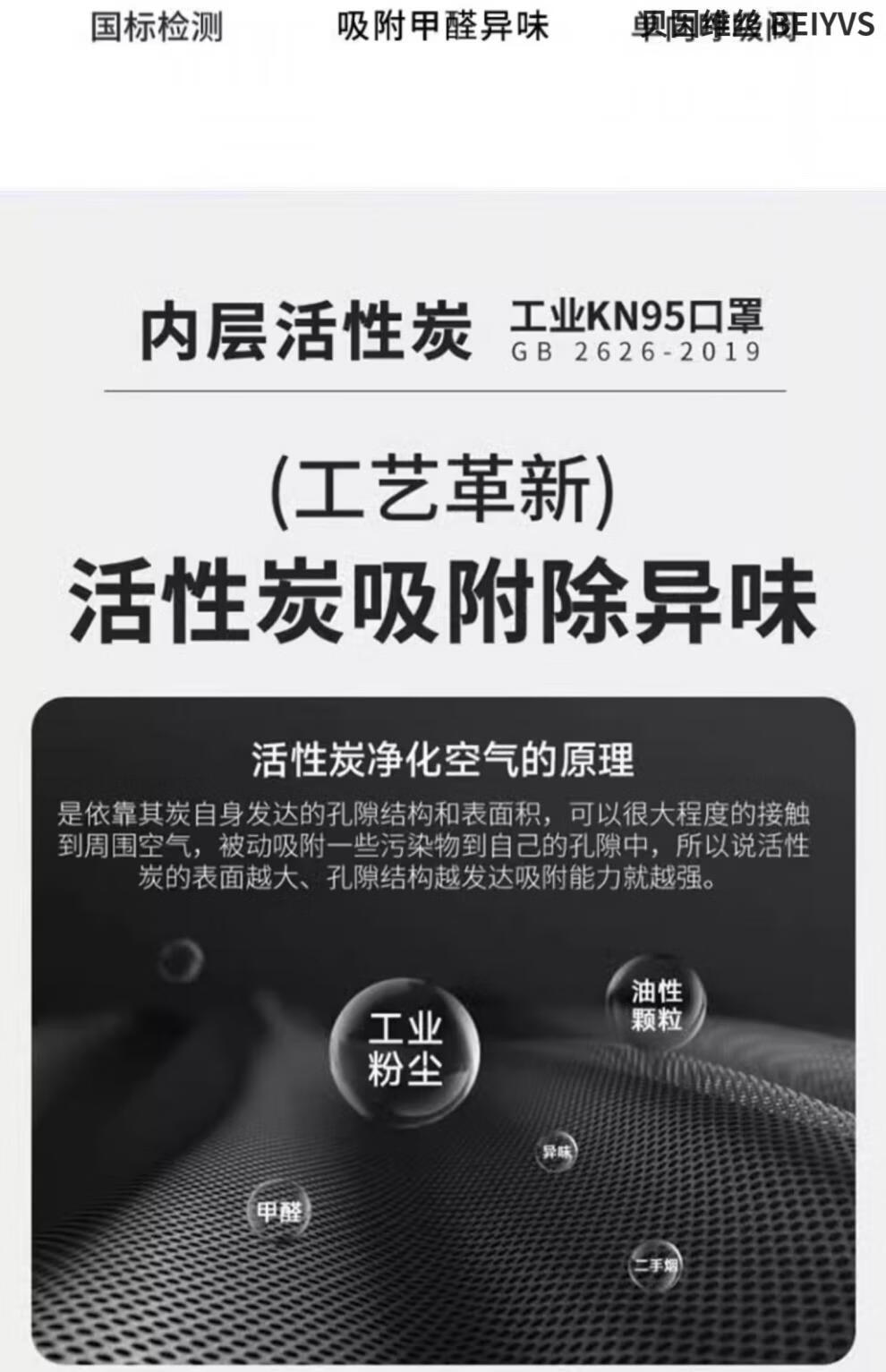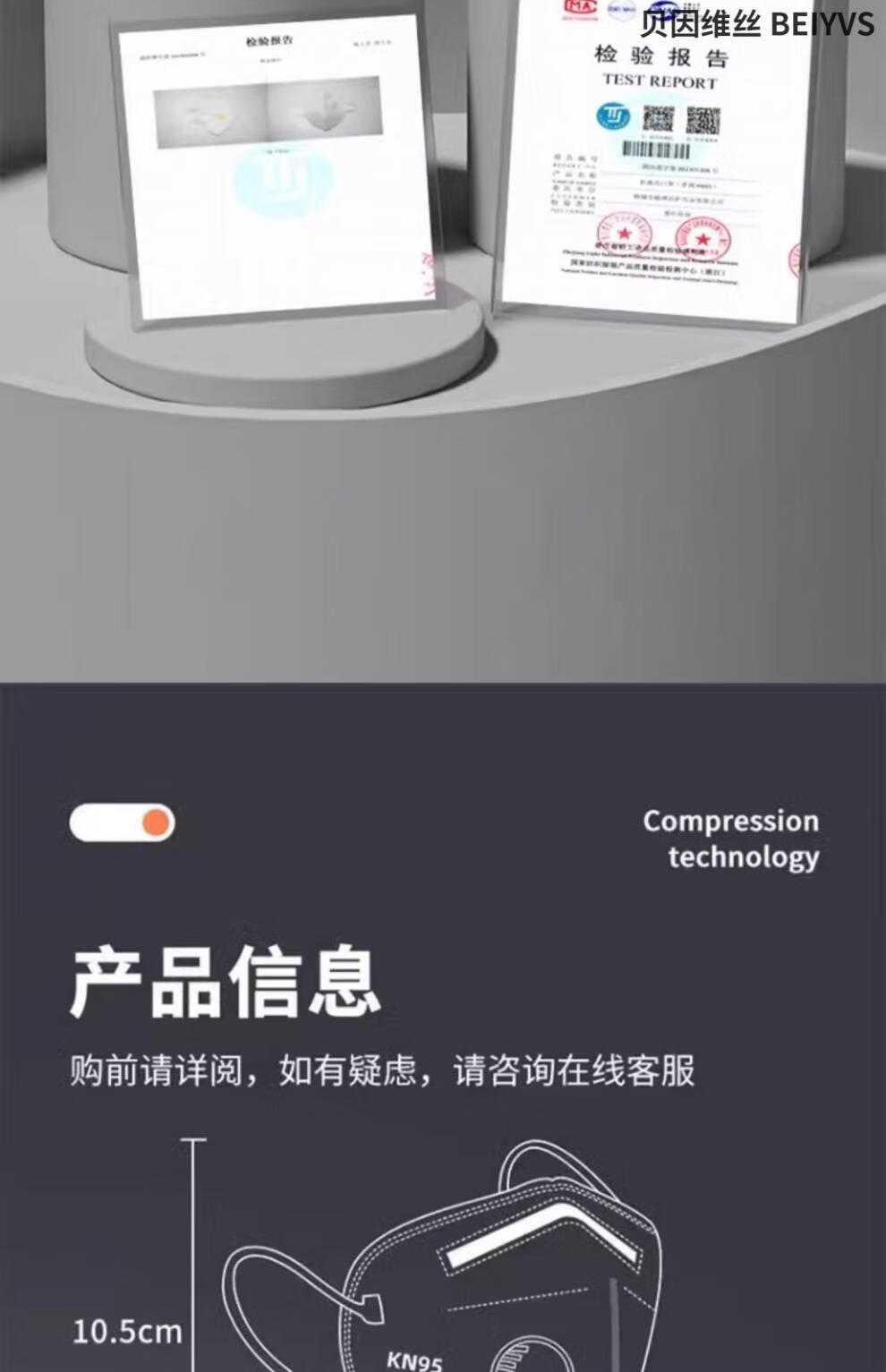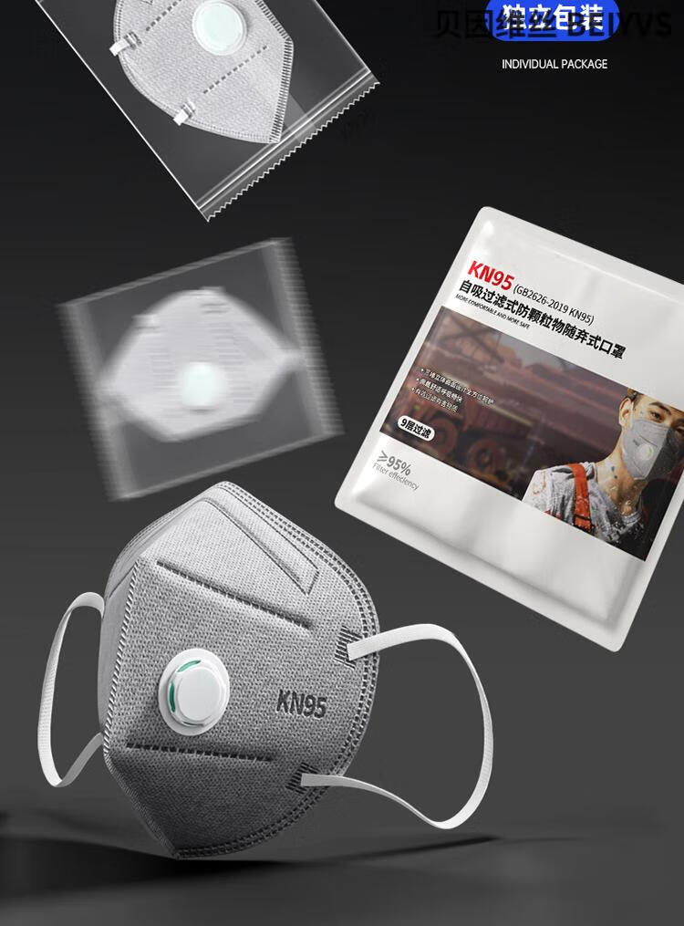 贝因维丝口罩n95防粉尘工邺业 100片白色 7层活性炭成人KN带阀95+海绵条+独立包装