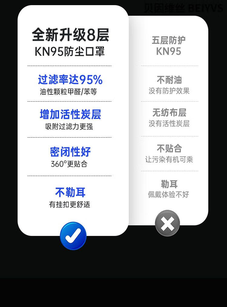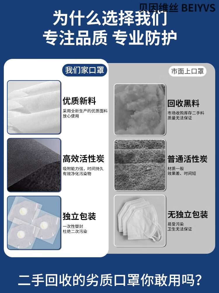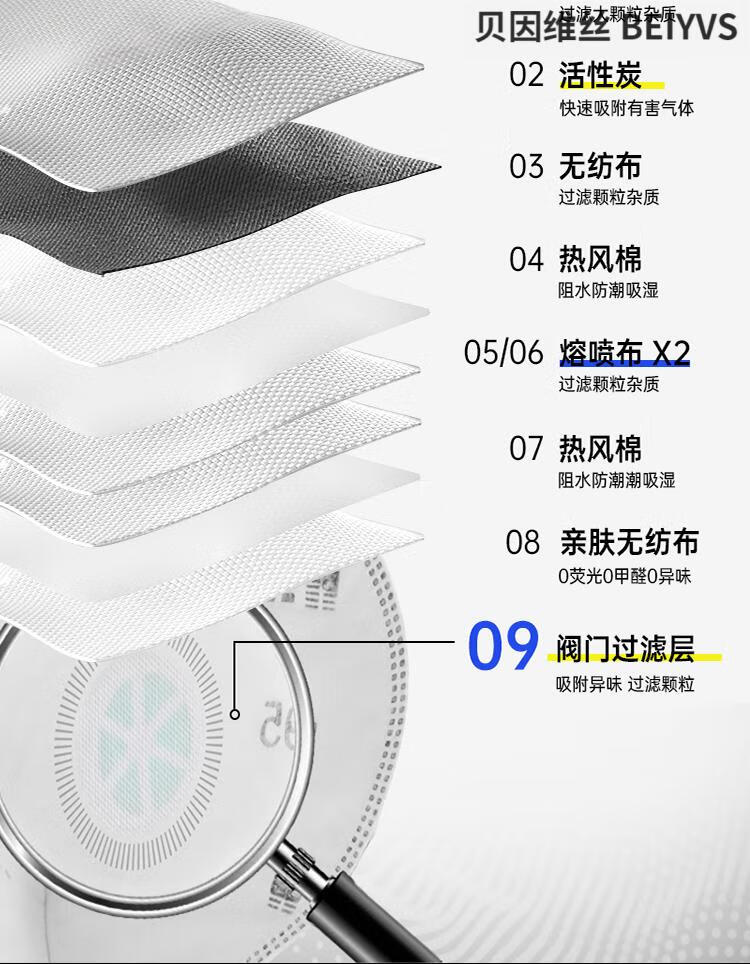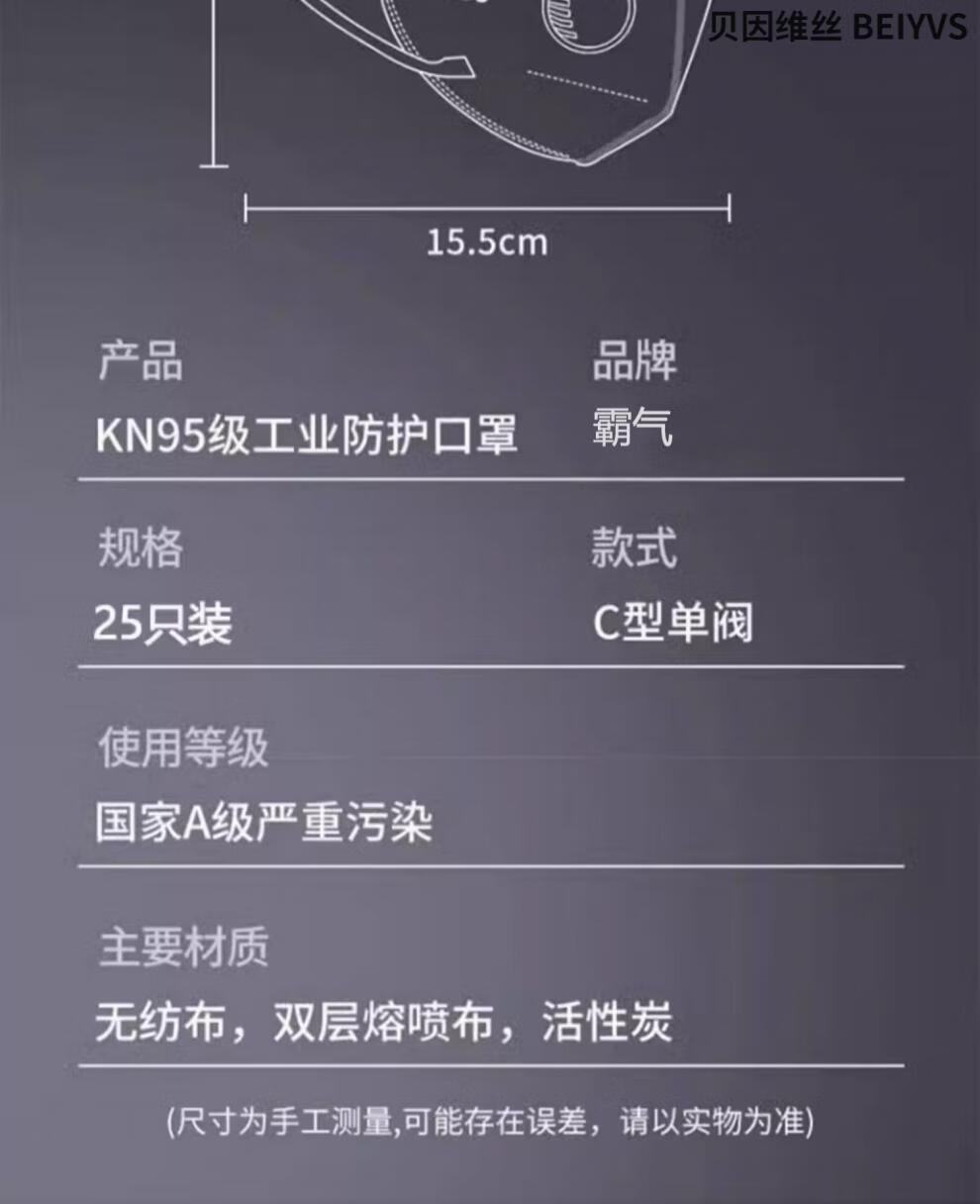 贝因维丝口罩n95防粉尘工邺业 100片白色 7层活性炭成人KN带阀95+海绵条+独立包装