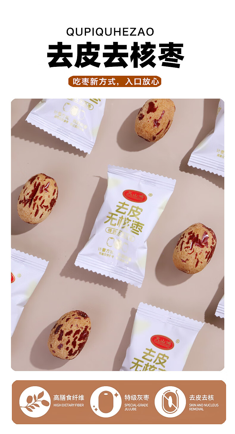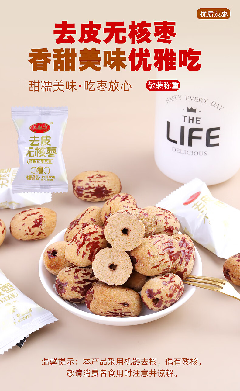 去皮去核红枣独立包装新疆若羌灰枣煮粥煲汤泡水脱皮无核红枣 去皮去核红枣500g*1袋
