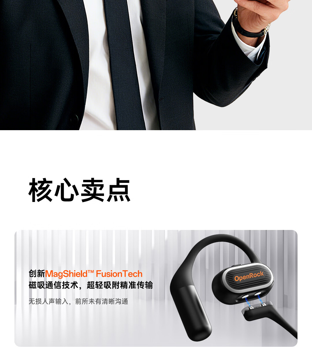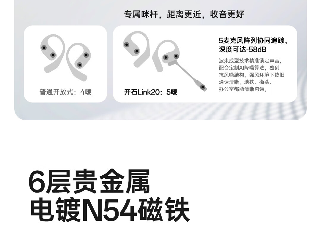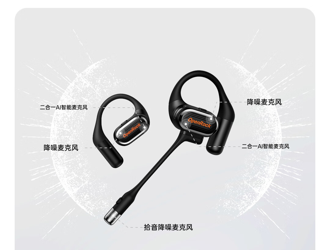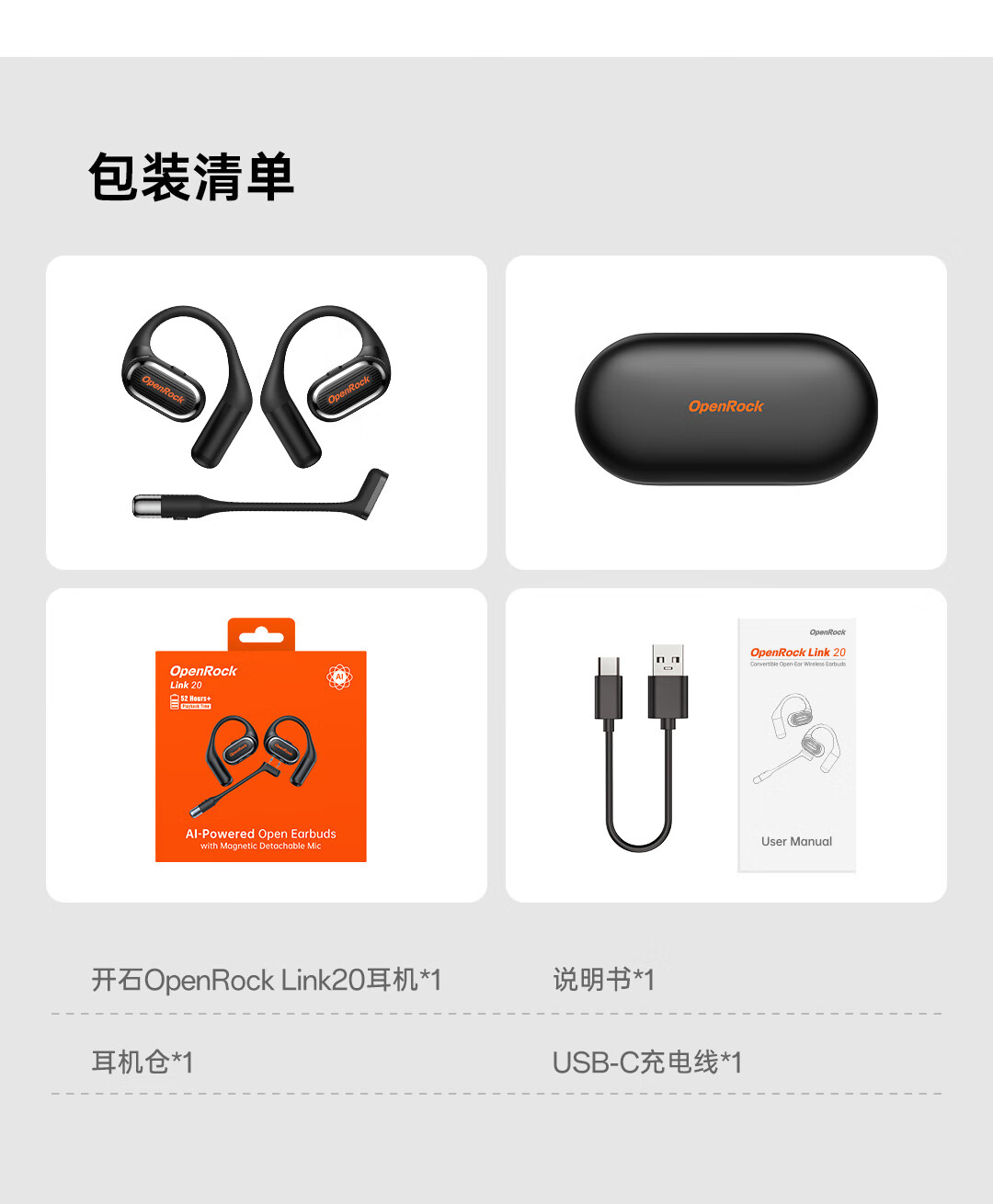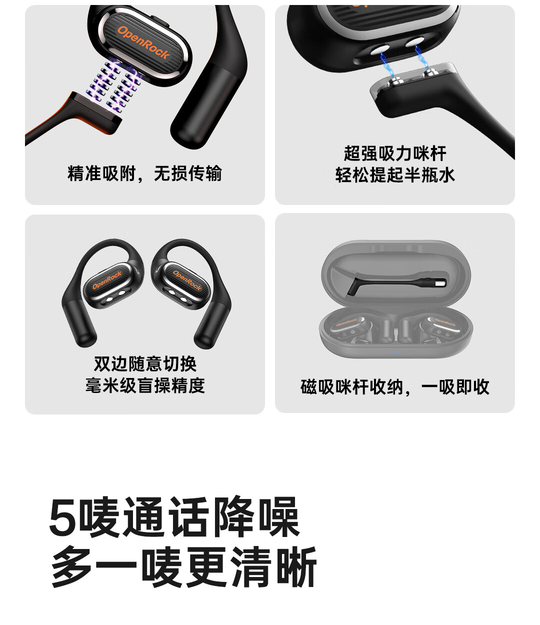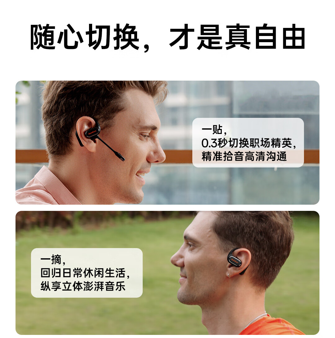 OpenRock开石OpenRock Link20开放式话务耳机无线磁吸咪杆通话降噪通话灭噪一机两用 黑色