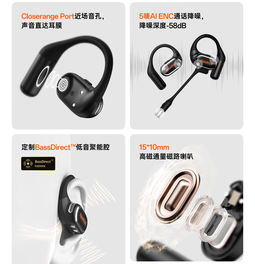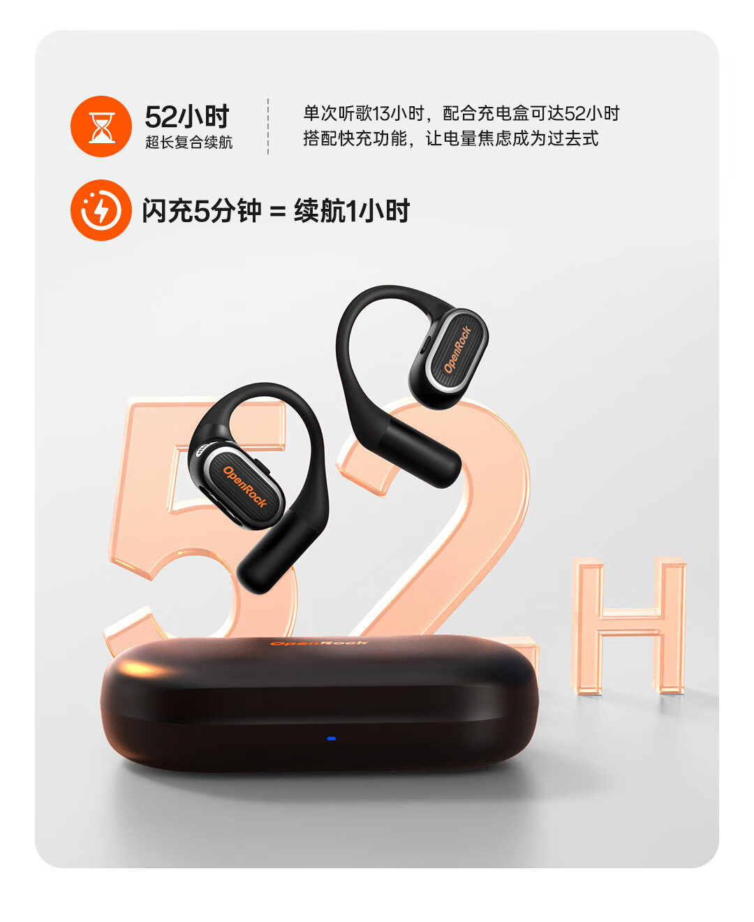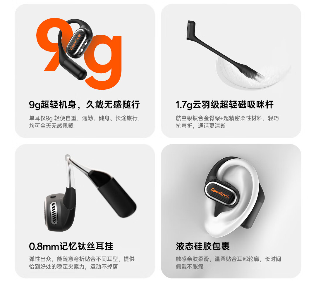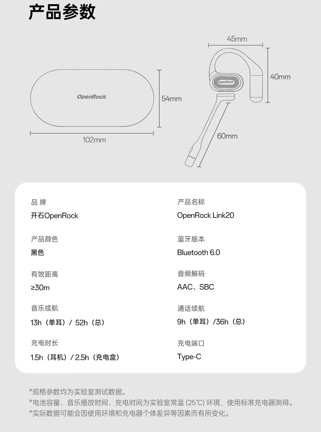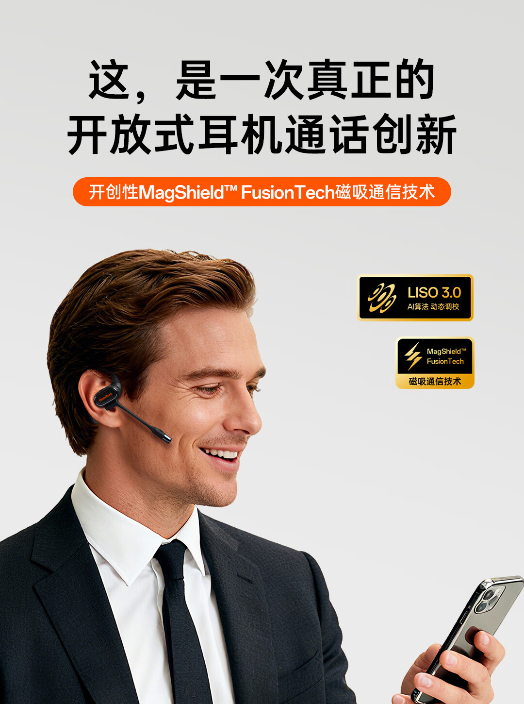 OpenRock开石OpenRock Link20开放式话务耳机无线磁吸咪杆通话降噪通话灭噪一机两用 黑色