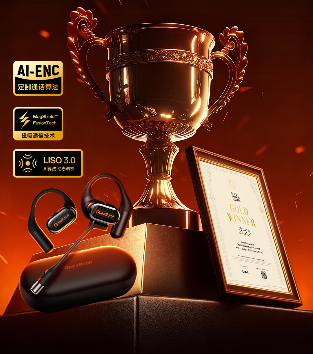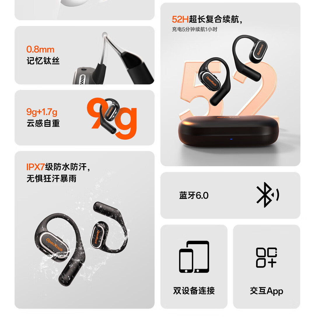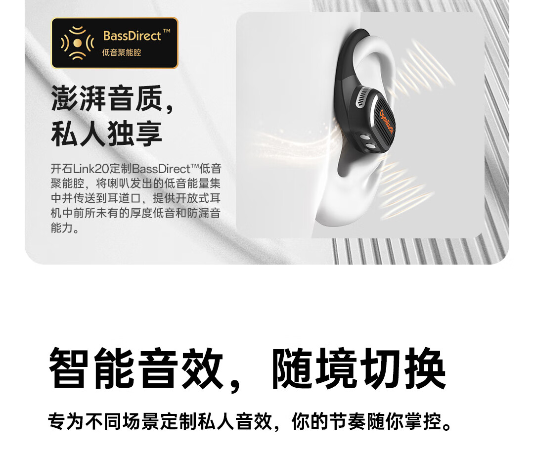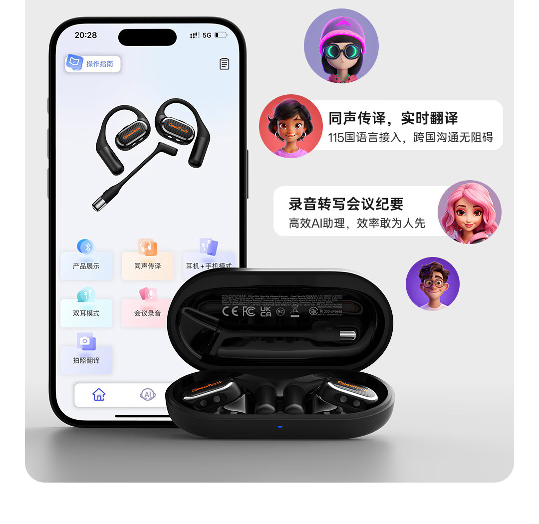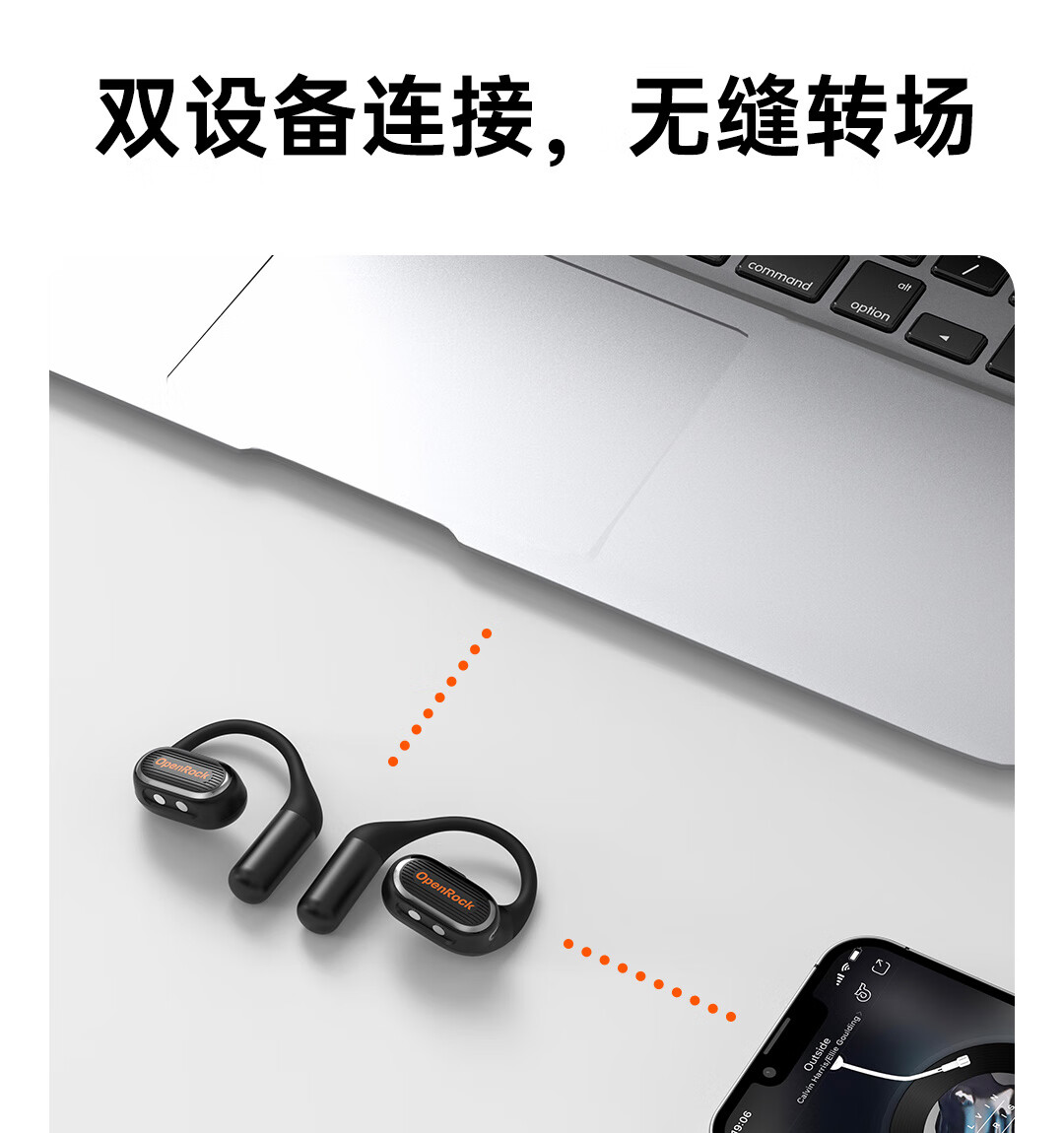 OpenRock开石OpenRock Link20开放式话务耳机无线磁吸咪杆通话降噪通话灭噪一机两用 黑色