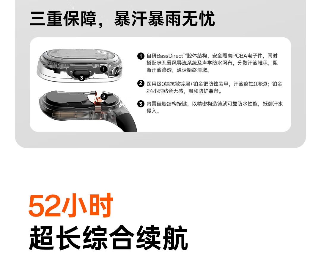 魔声(Monster)蓝牙耳机骨传导概念AI智能小度真无线挂耳式开放式运动骑行长续航适用苹果D01黑色