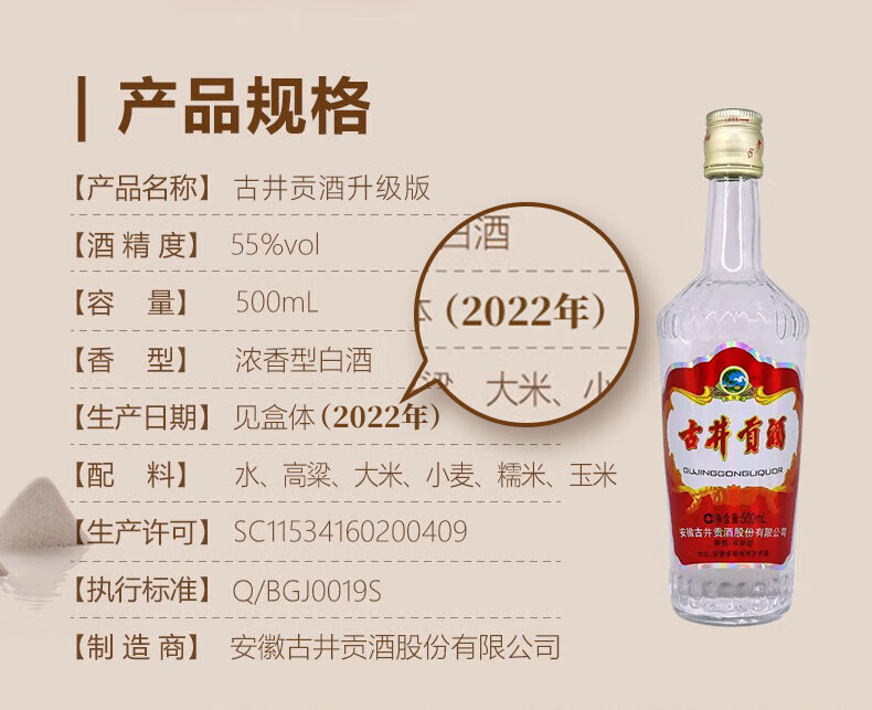 古井贡酒 第五代 55度 500ml 6瓶整箱纯粮浓香型白酒口粮酒中秋企业团购 55度 500mL 6瓶 第5代升级版整箱(2022年)
