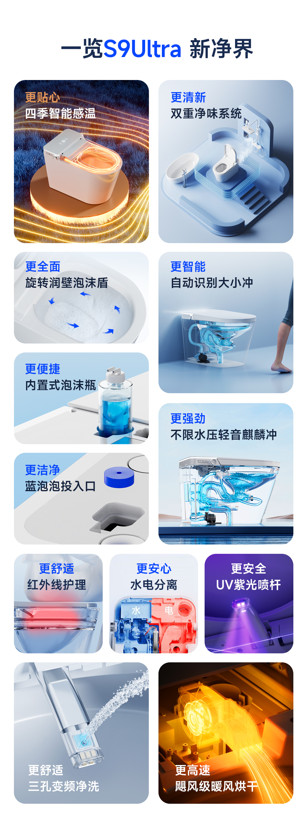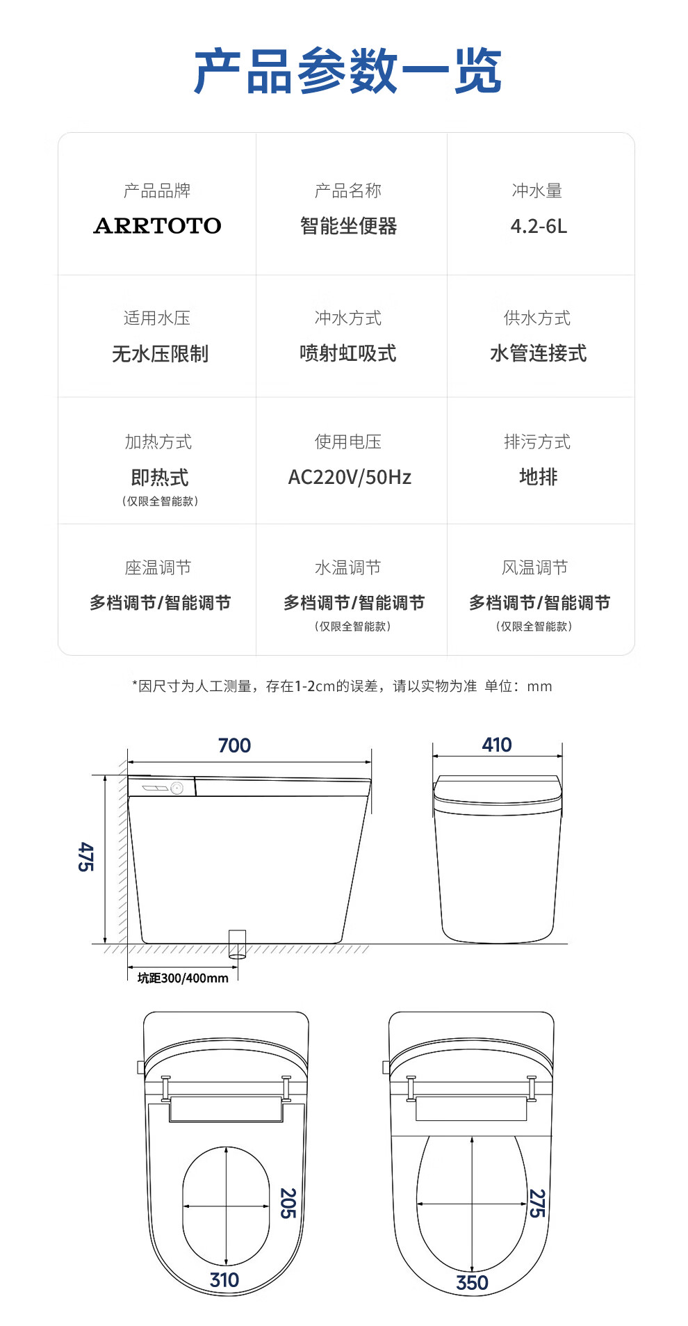 ARRTOTO智能马桶一体机无水压限制内置泡沫盾全自动带水箱轻音冲水坐便器 CES-S9F智慧版语音控制内置泡泡 250/300/350/400MM坑距下单备注