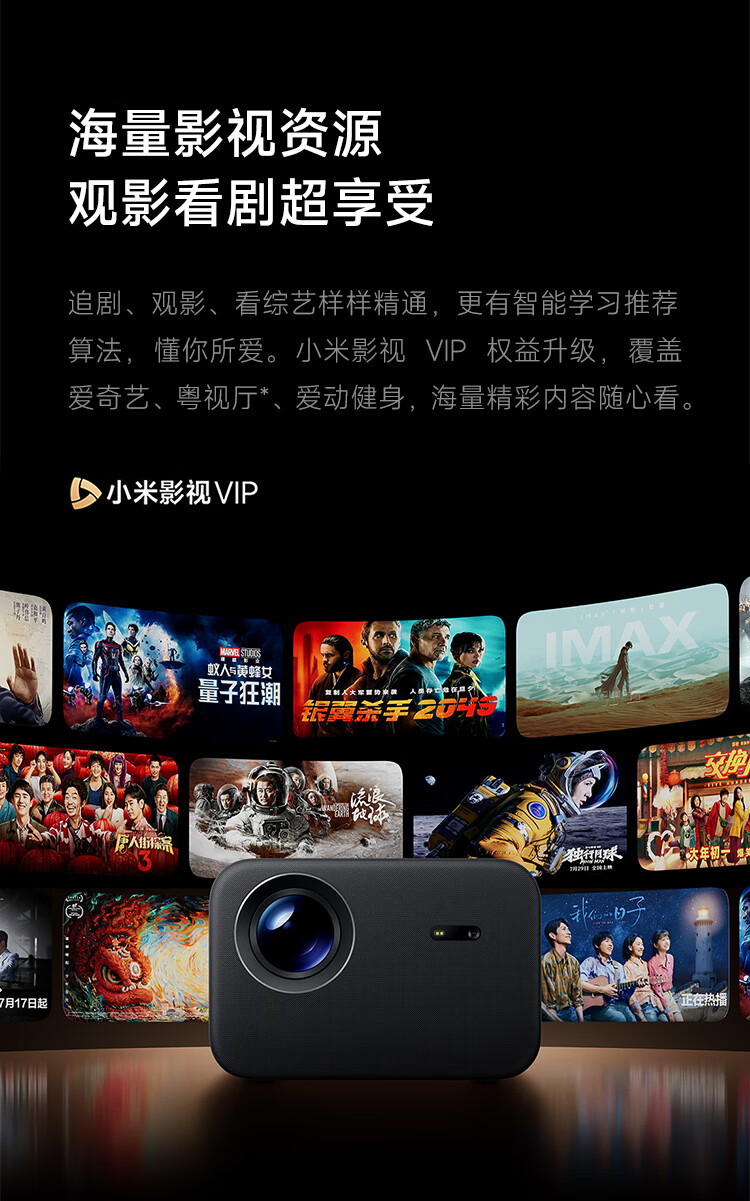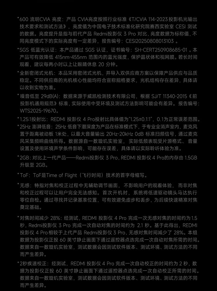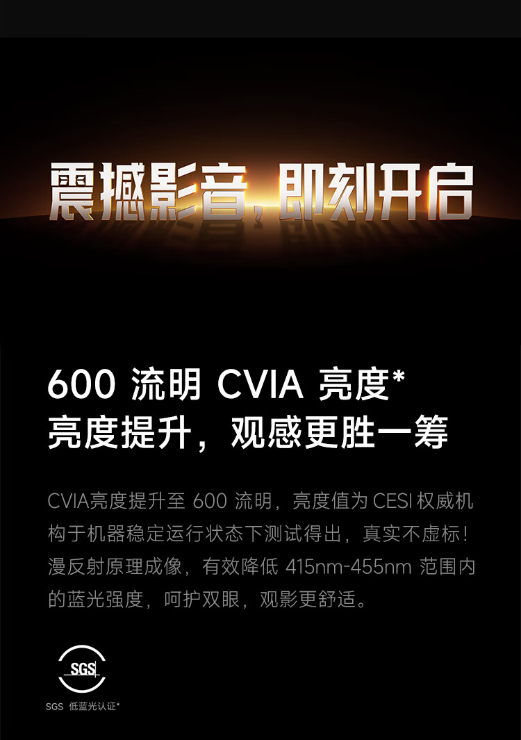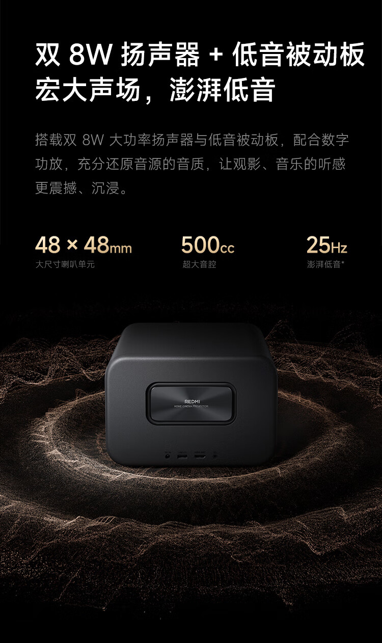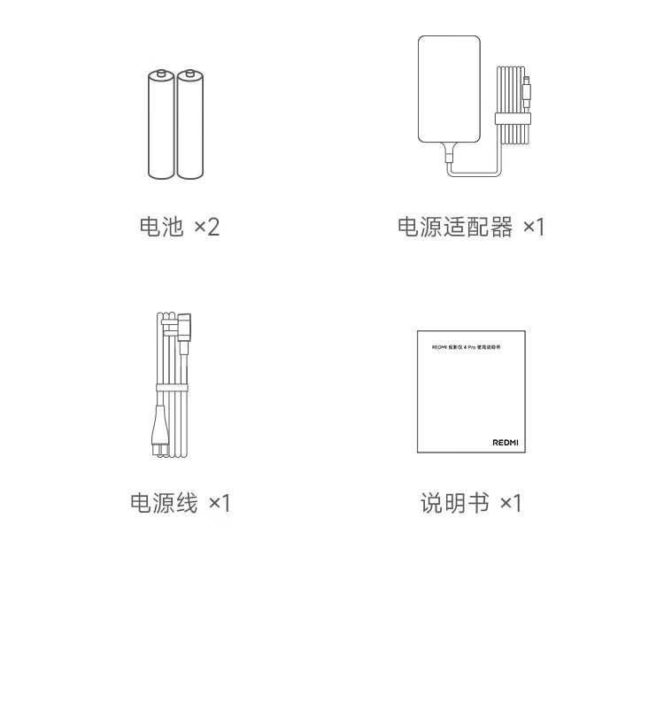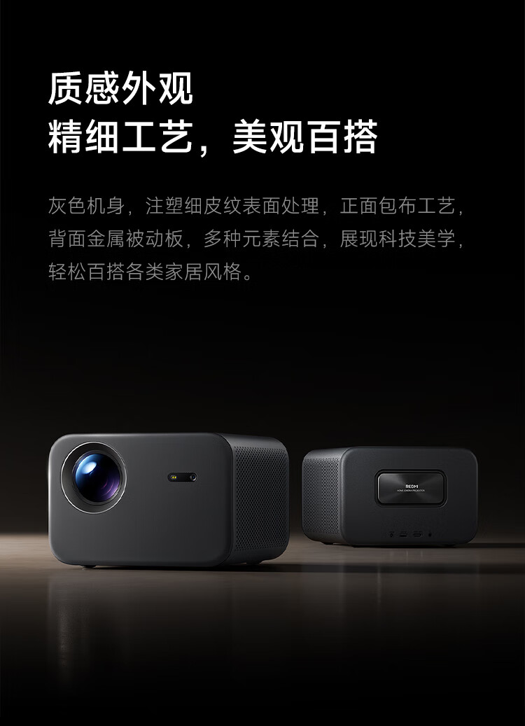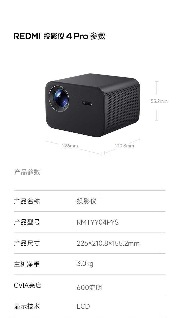 小米REDMI 投影仪4 Pro 投影仪 智能家庭影院 600流明CVIA亮度 双8W扬声器+低音被动板MEMC动态补偿