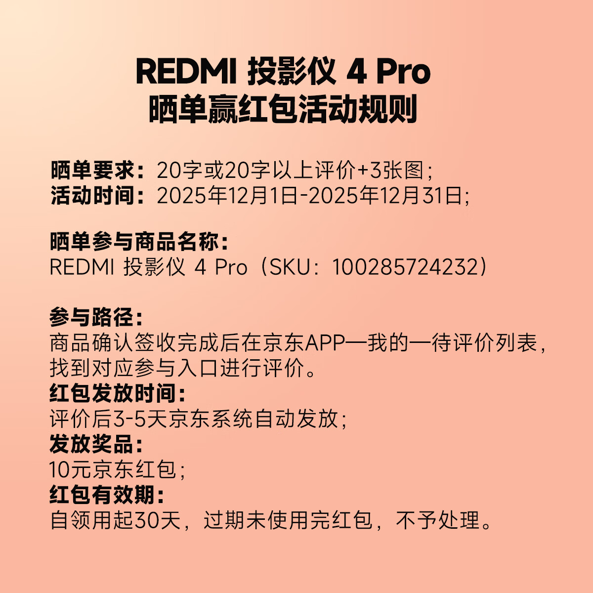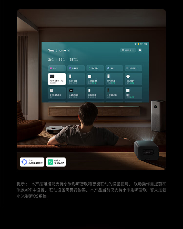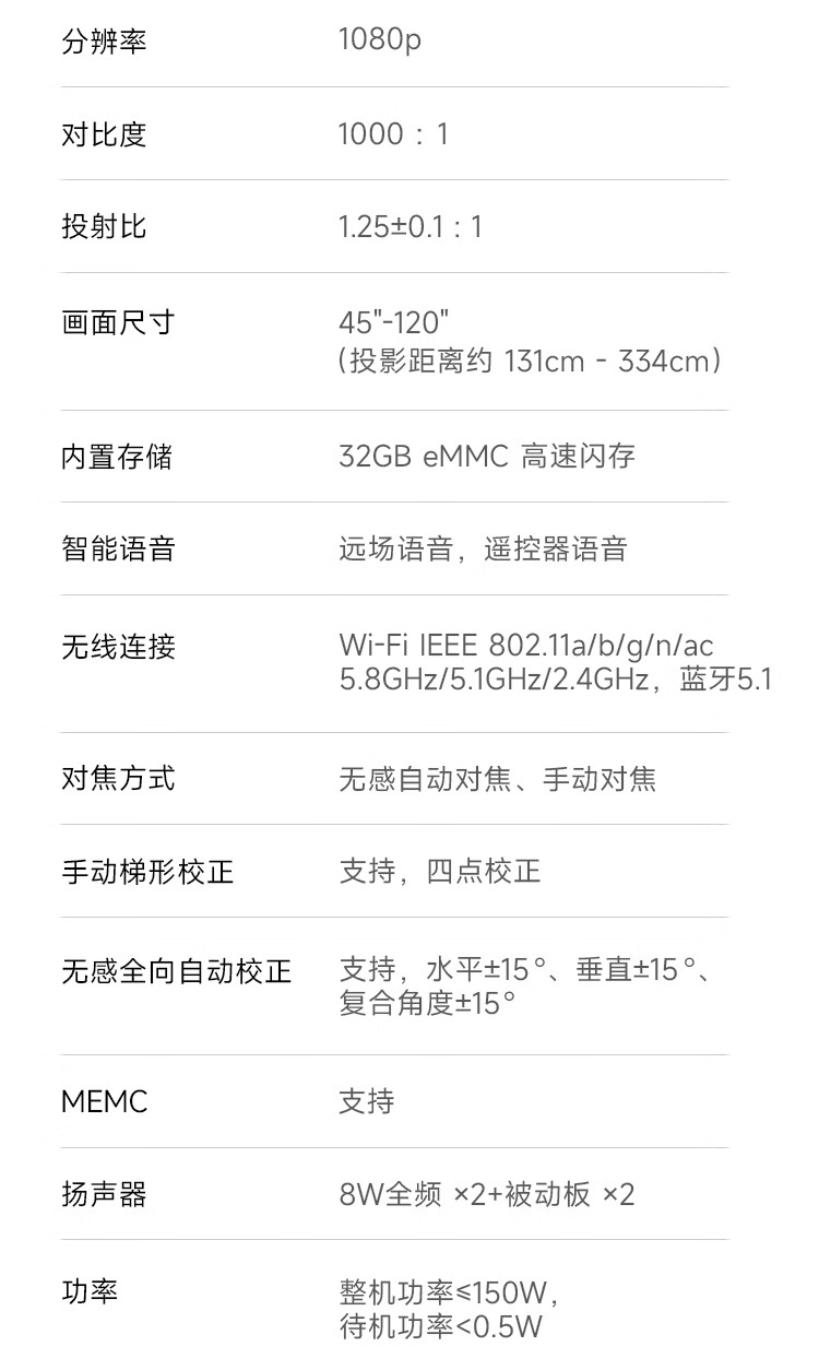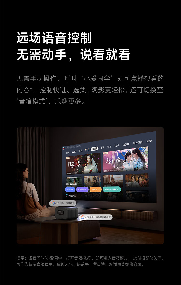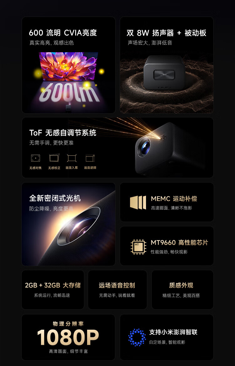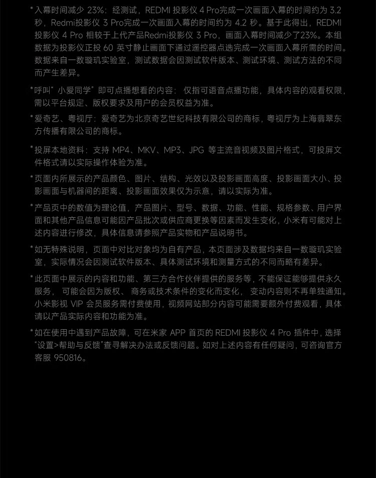 小米REDMI 投影仪4 Pro 投影仪 智能家庭影院 600流明CVIA亮度 双8W扬声器+低音被动板MEMC动态补偿
