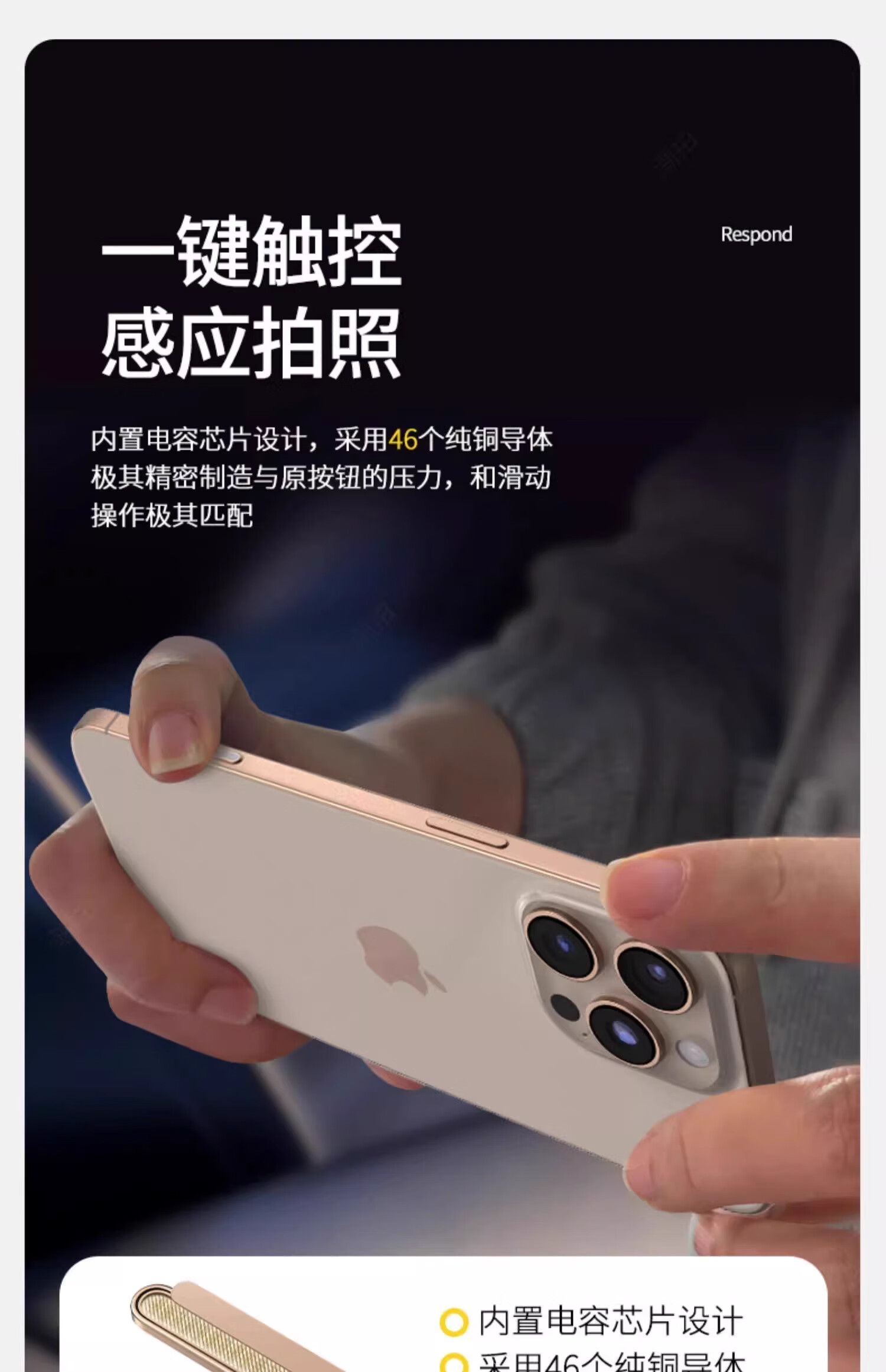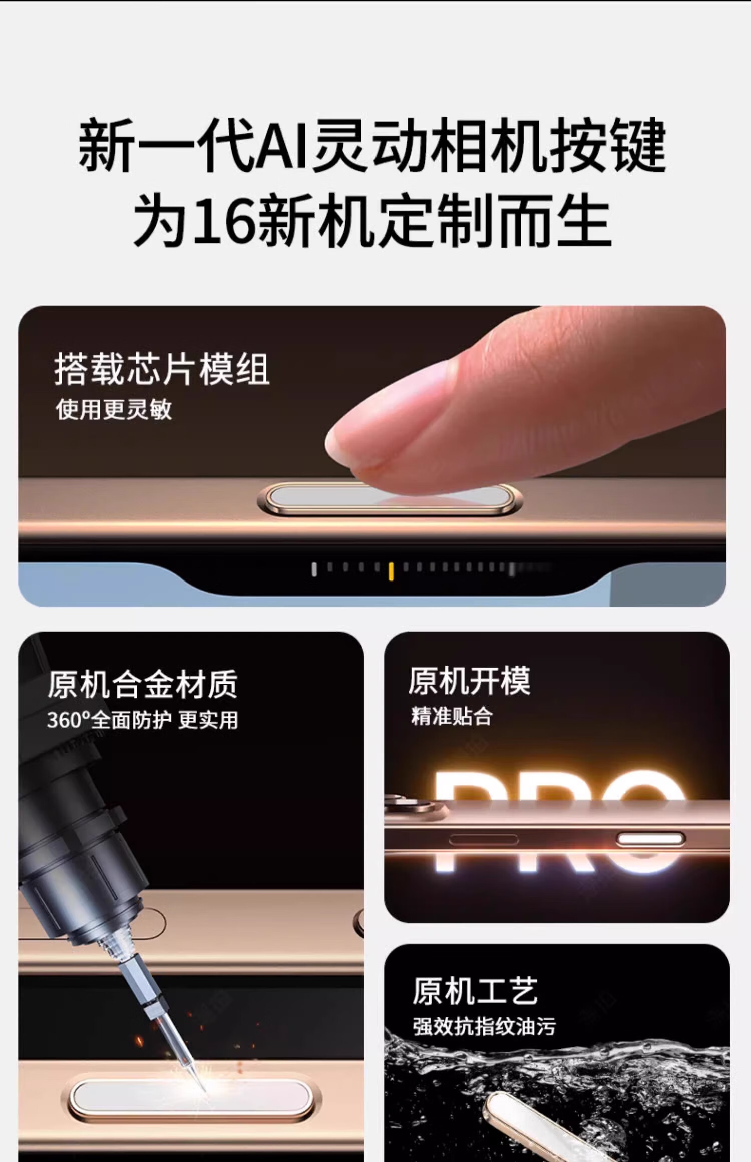 Smorss【岩灰金】适用苹果iPhone16/17拍照按键贴16promax侧边按键膜16pro相机按键保护16plus照相保护贴