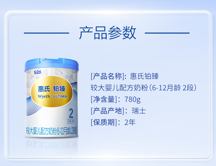 惠氏(Wyeth)铂臻进口DHA较大婴儿配方奶粉2段(6-12月)780g