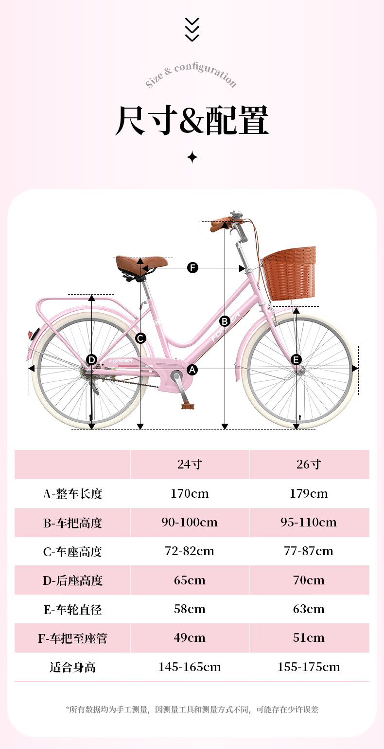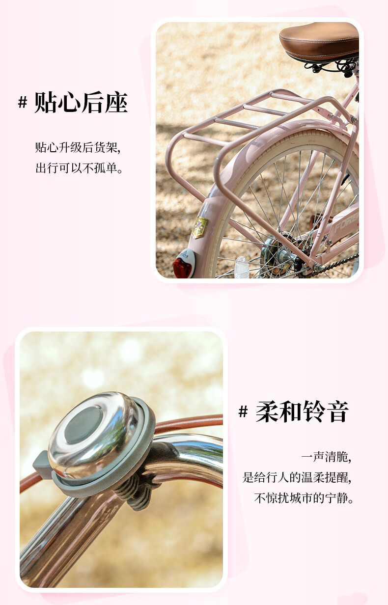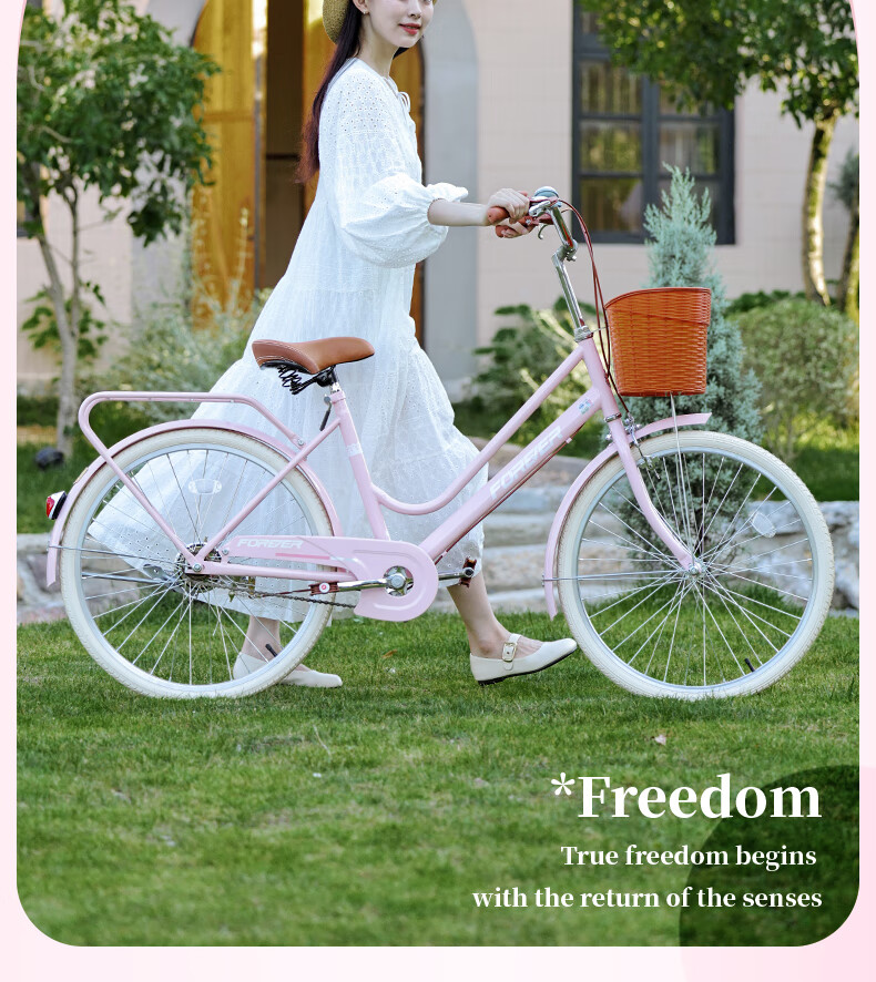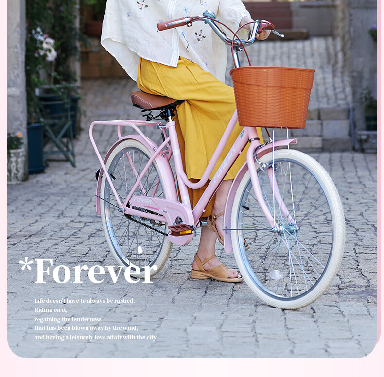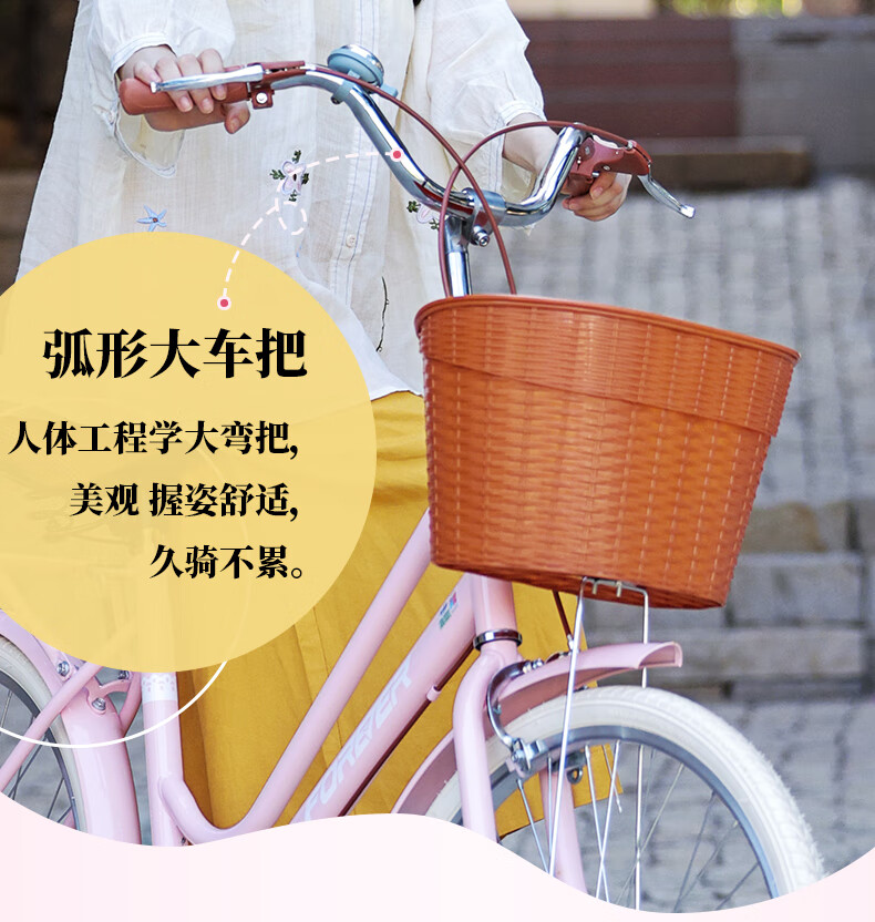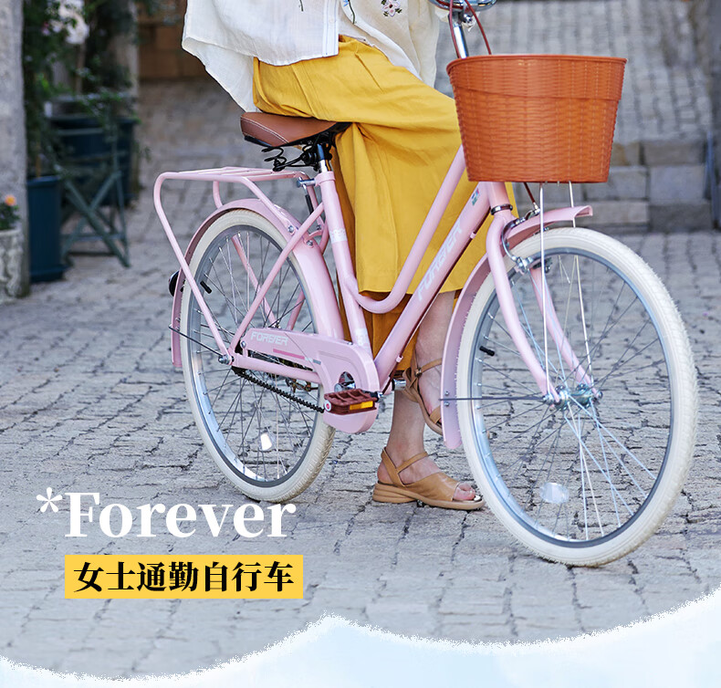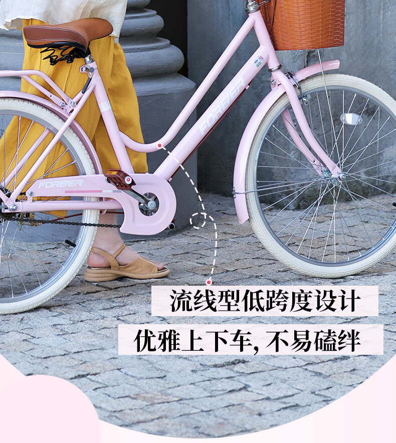 永久(FOREVER)自行车成人通勤女士自行车学生单车自行车通勤自行车女士亲子车 粉 【升级加厚鞍座-加粗后衣架】 变速24寸【适合145-165cm】