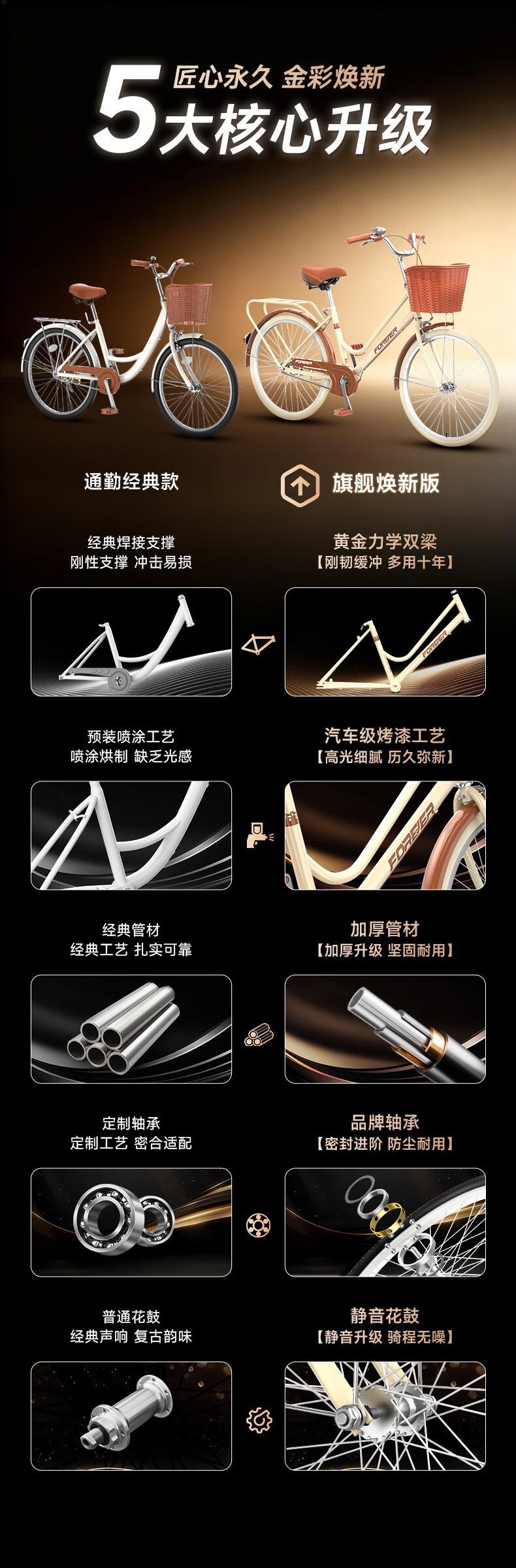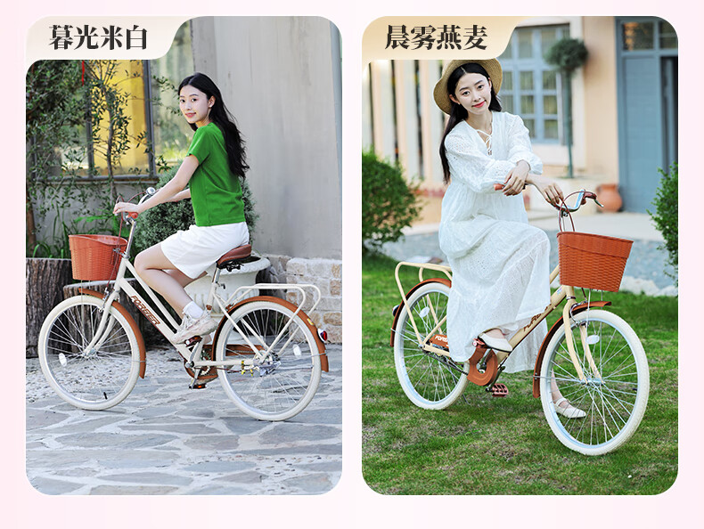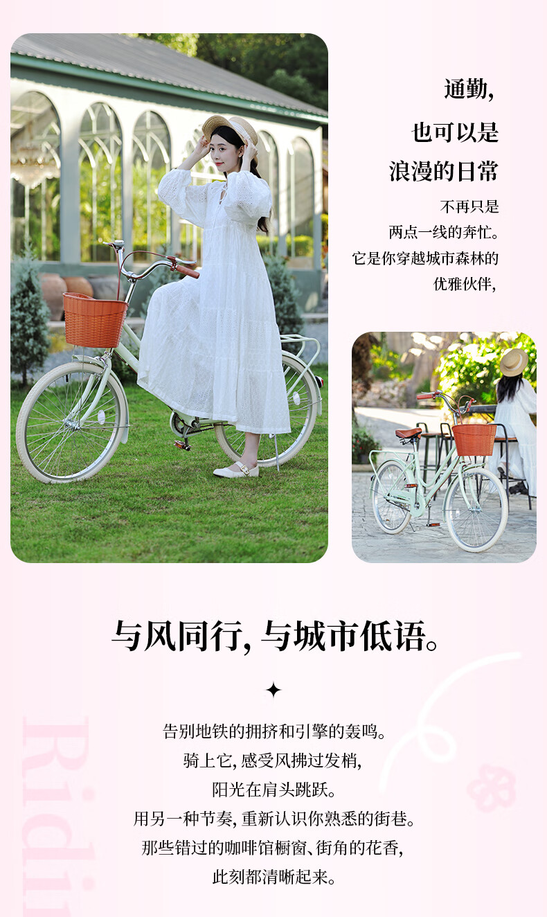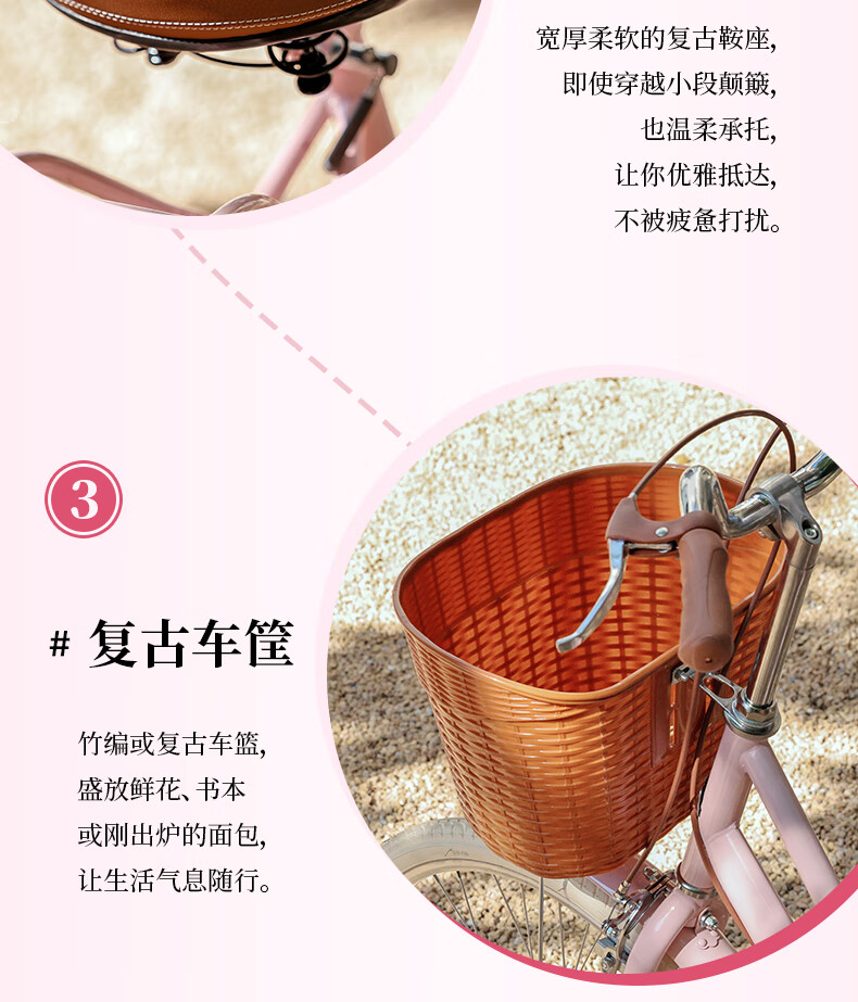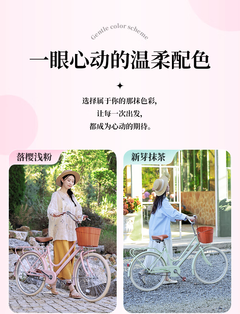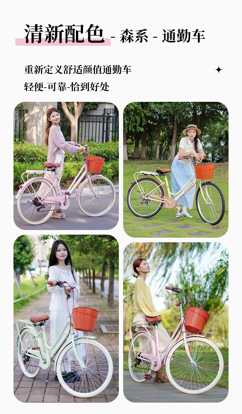 永久(FOREVER)自行车成人通勤女士自行车学生单车自行车通勤自行车女士亲子车 粉 【升级加厚鞍座-加粗后衣架】 变速24寸【适合145-165cm】