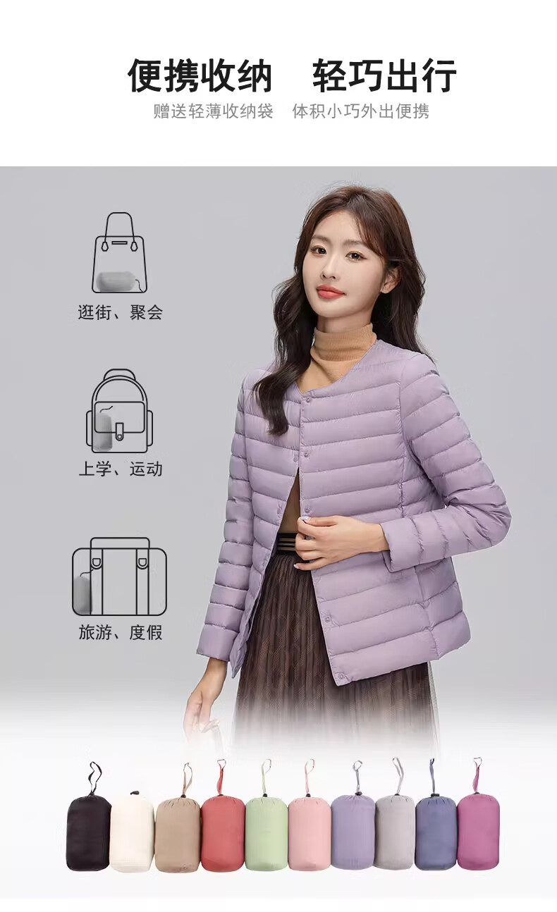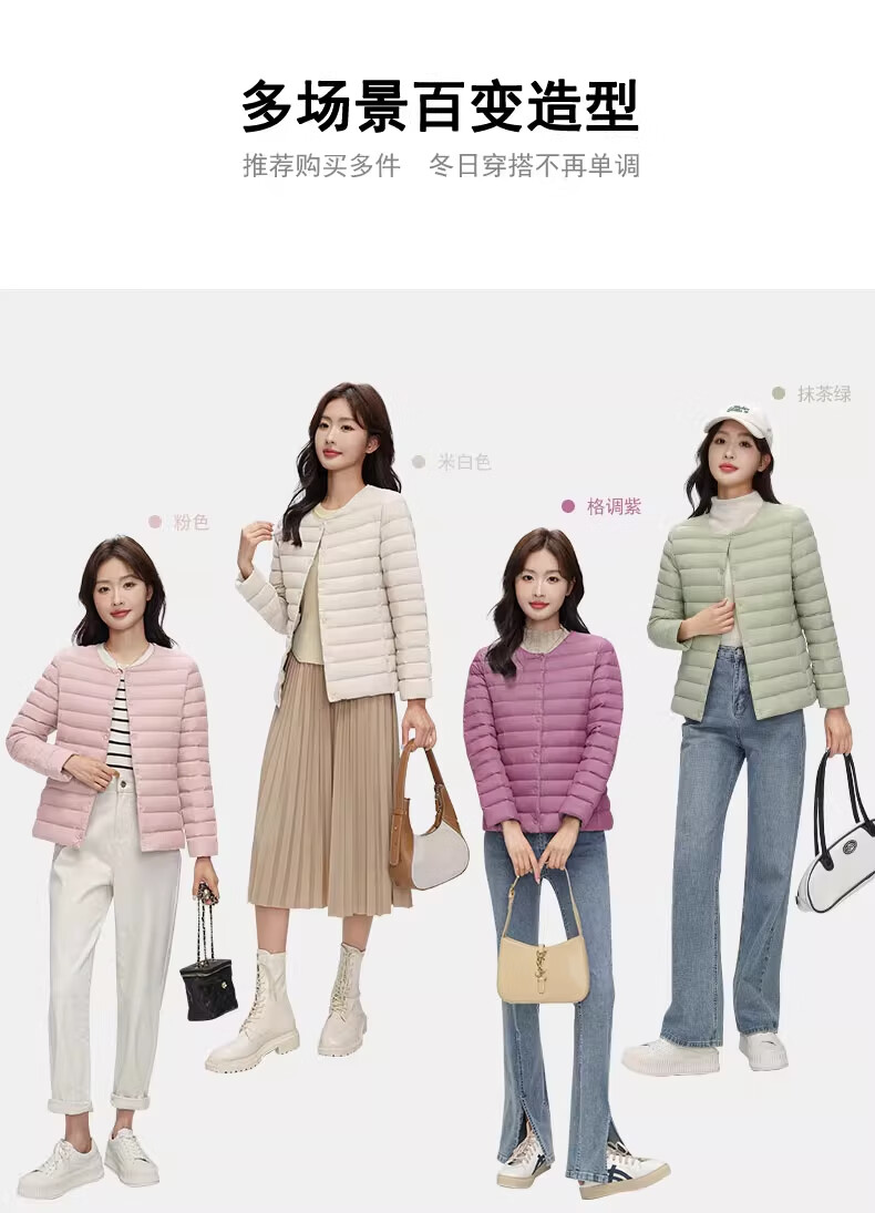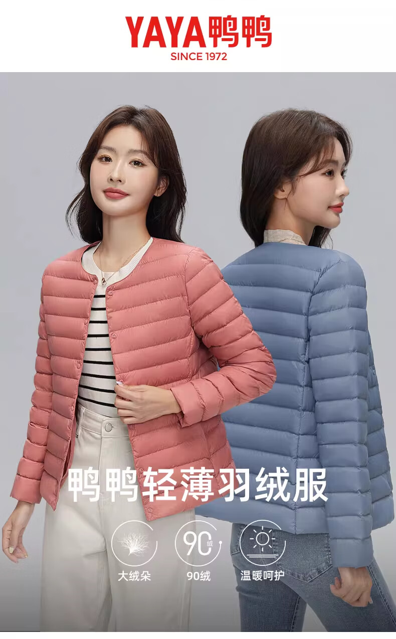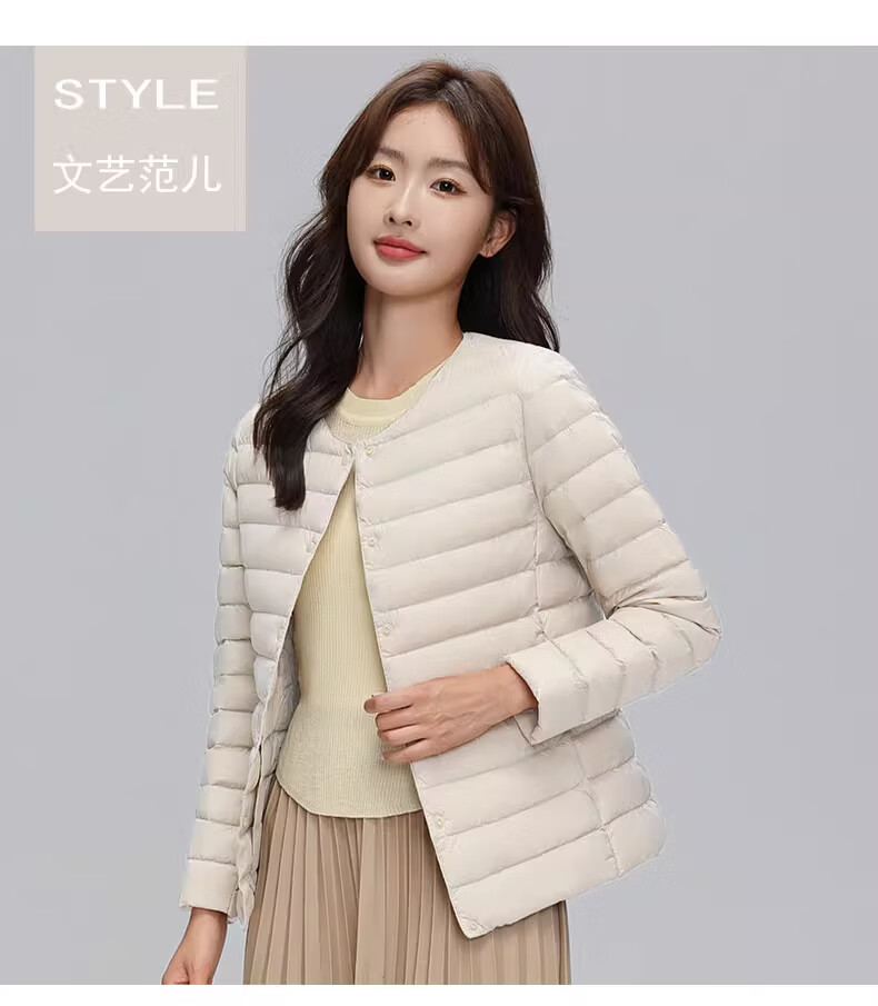 鸭鸭(YAYA)佟丽娅同款轻薄羽绒服女短款秋冬羽绒内胆轻型薄款保暖外套GF 米白色【女款】 L 165