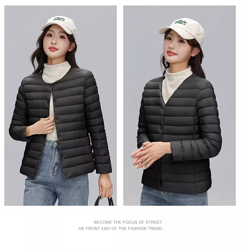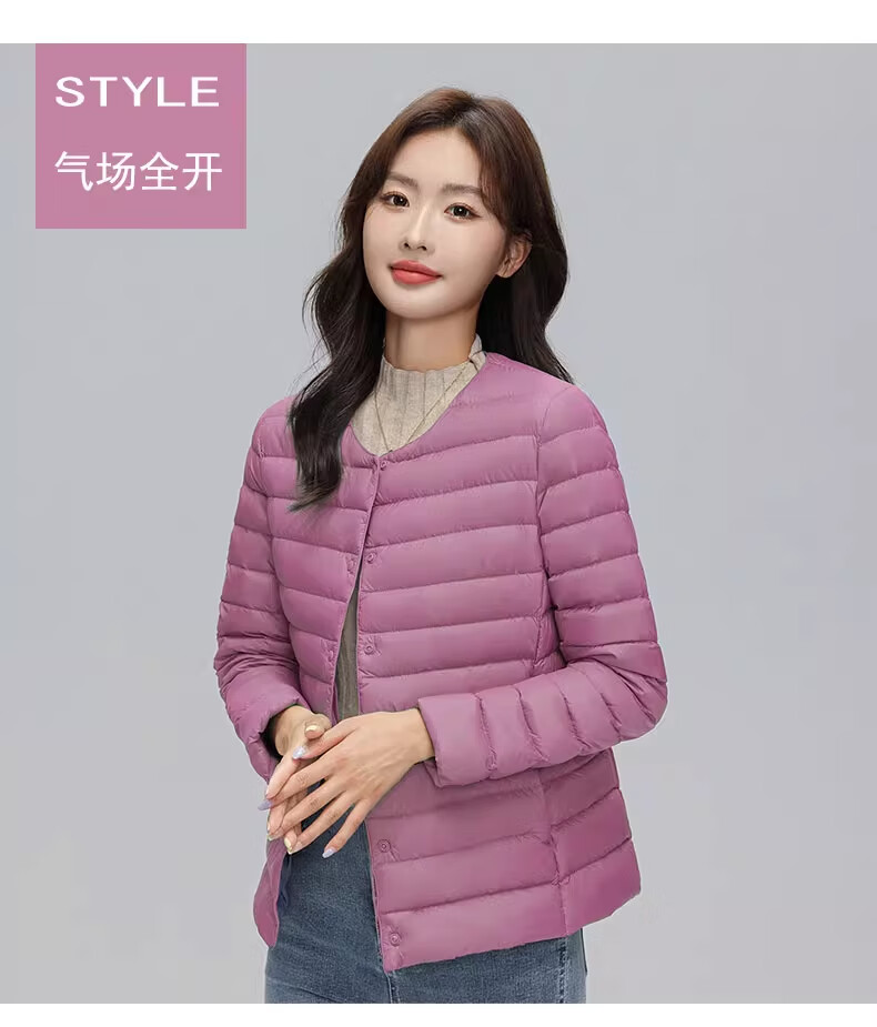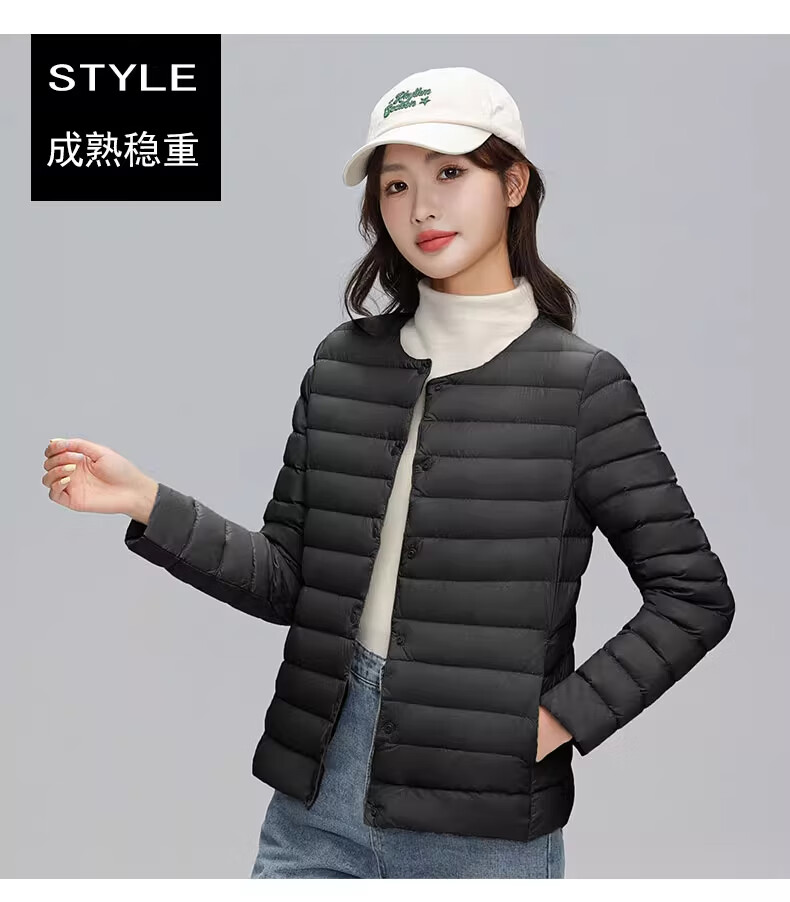 鸭鸭王一博同款轻壳系列羽绒服女短款2025冬季新款简约保暖轻薄外套HY 黑色 2XL
