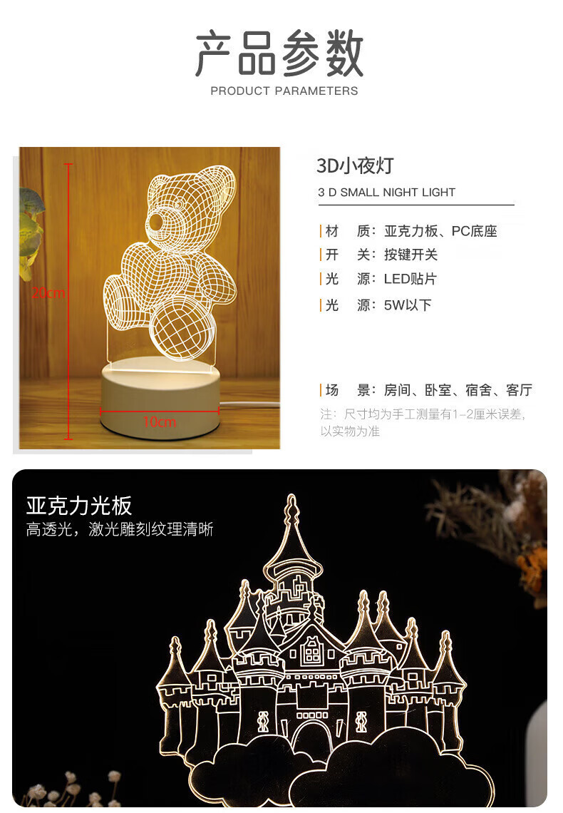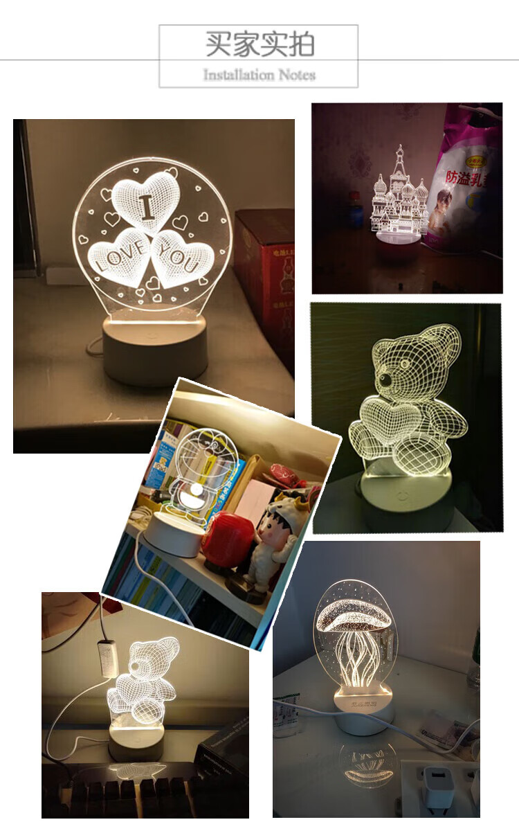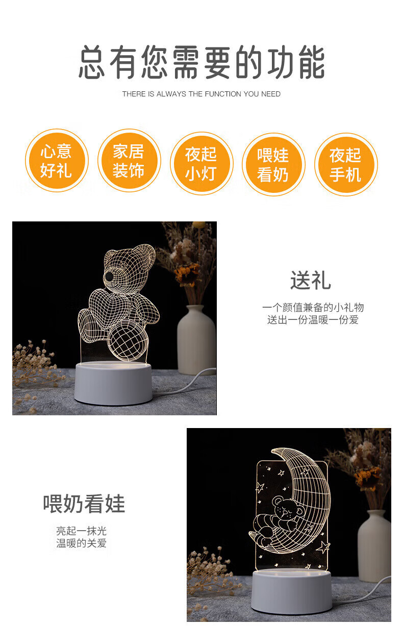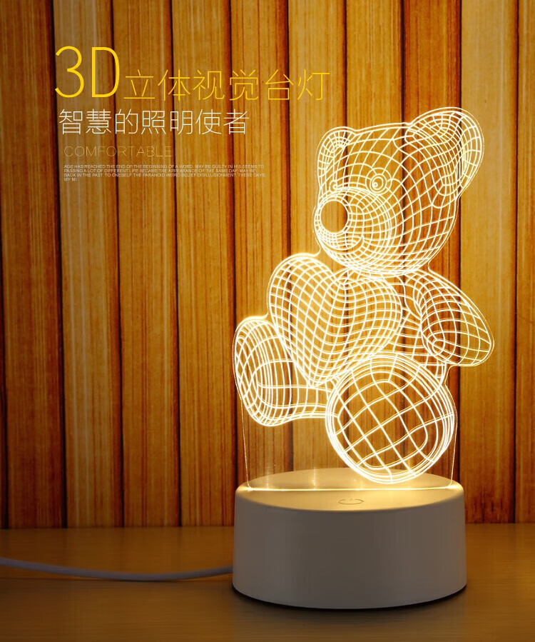 OUMIROUSB插电小夜灯床头卧室氛围3D卡通灯立体灯 送儿童朋友礼物爱心熊 三色调节-USB插电款
