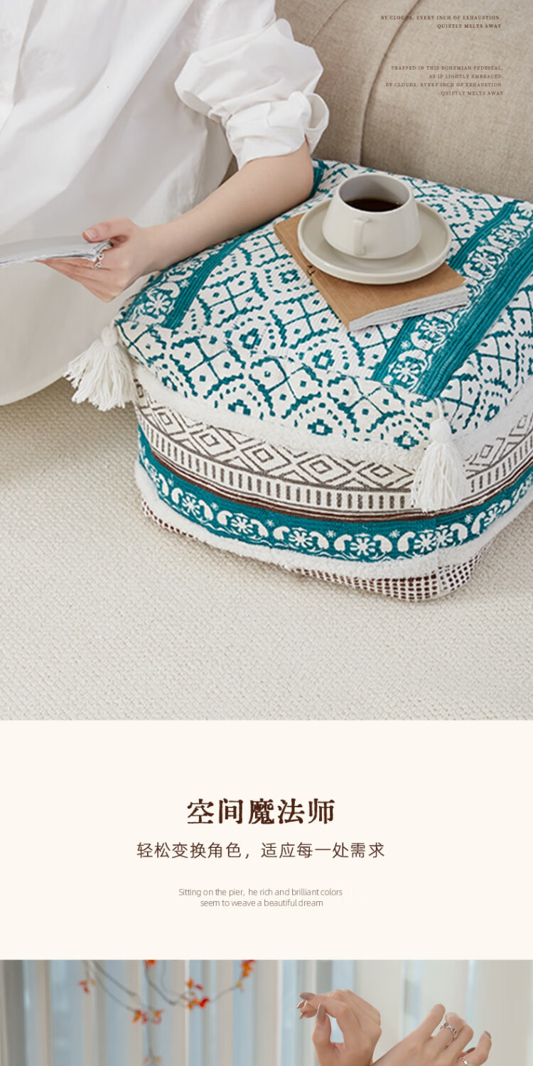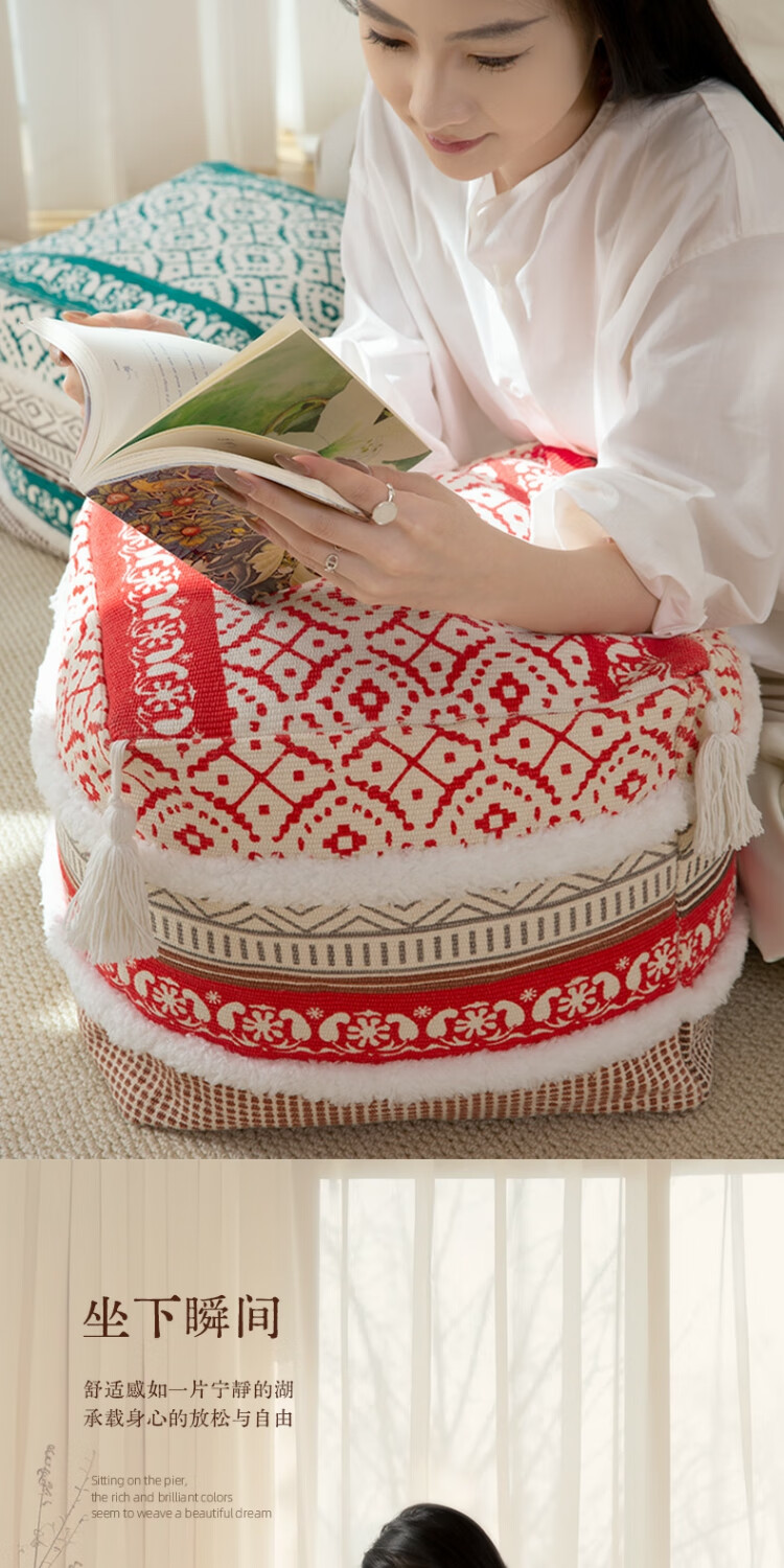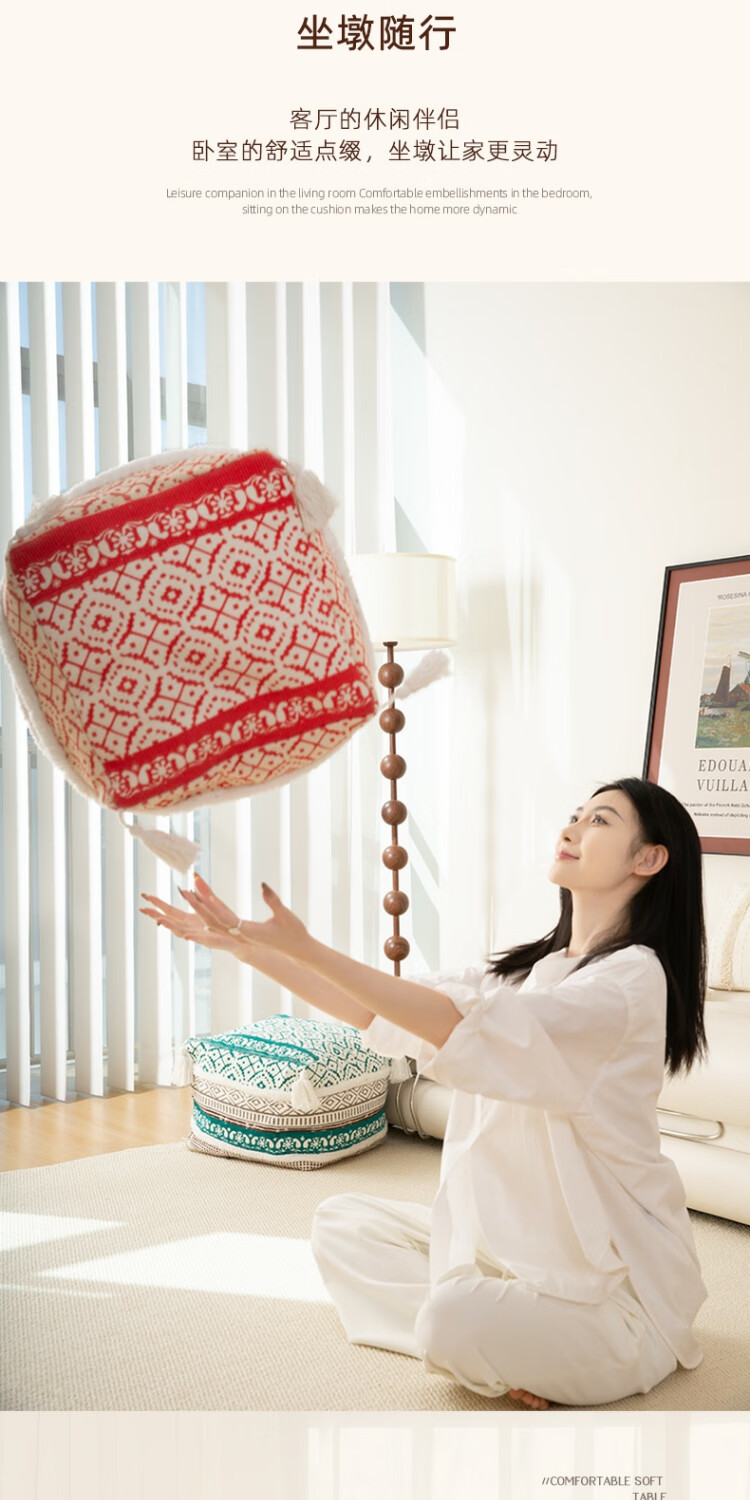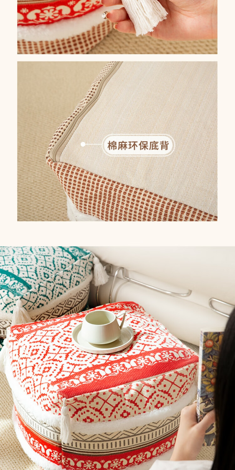 京华中古波西米亚坐墩多用轻奢榻榻米客厅地上坐垫可拆洗懒人沙发蒲团 布拉诺 40*40*30