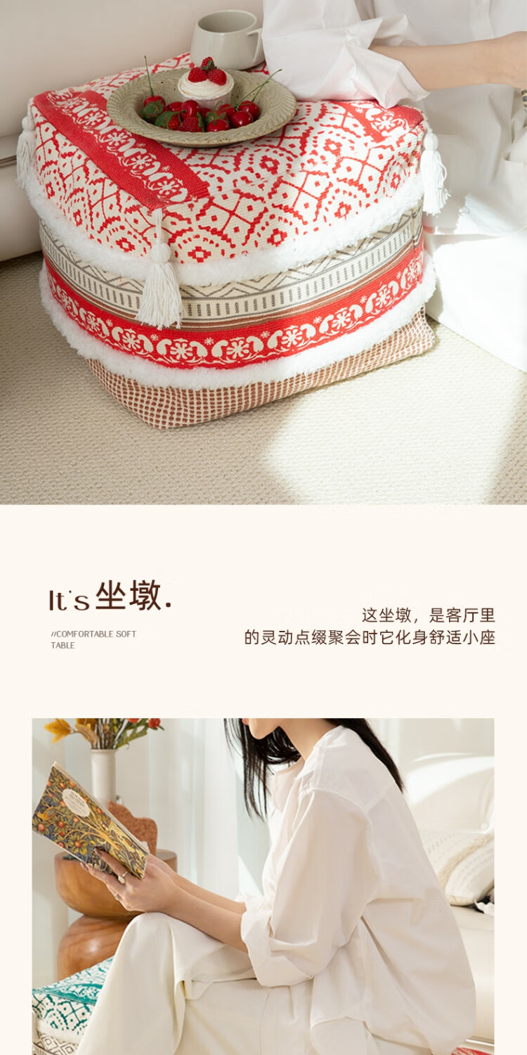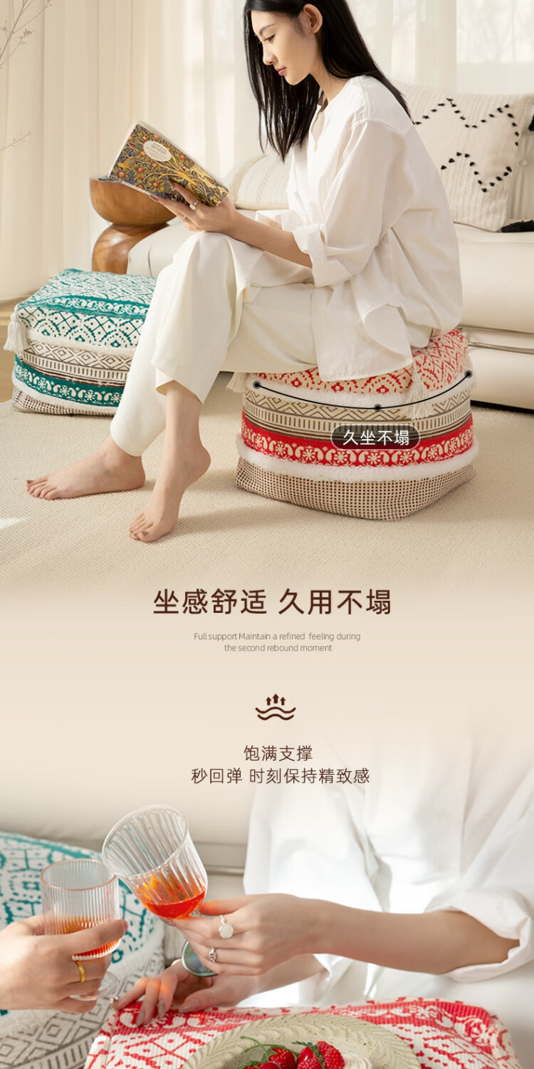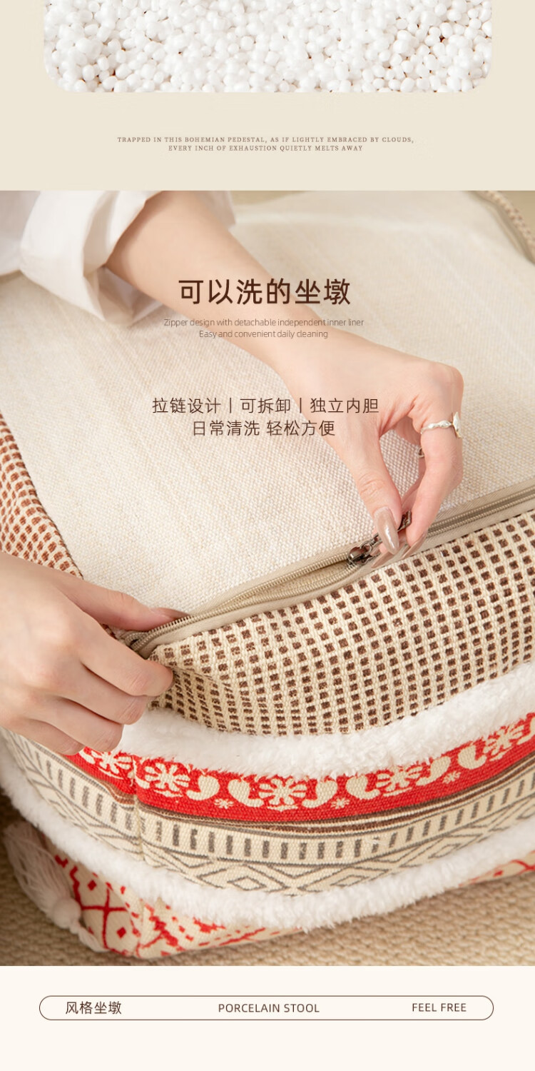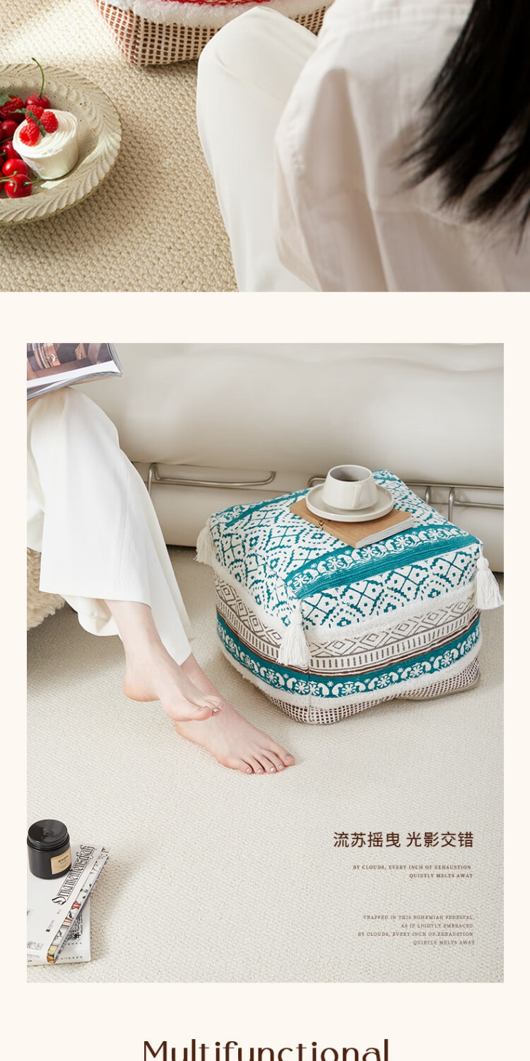 京华中古波西米亚坐墩多用轻奢榻榻米客厅地上坐垫可拆洗懒人沙发蒲团 布拉诺 40*40*30