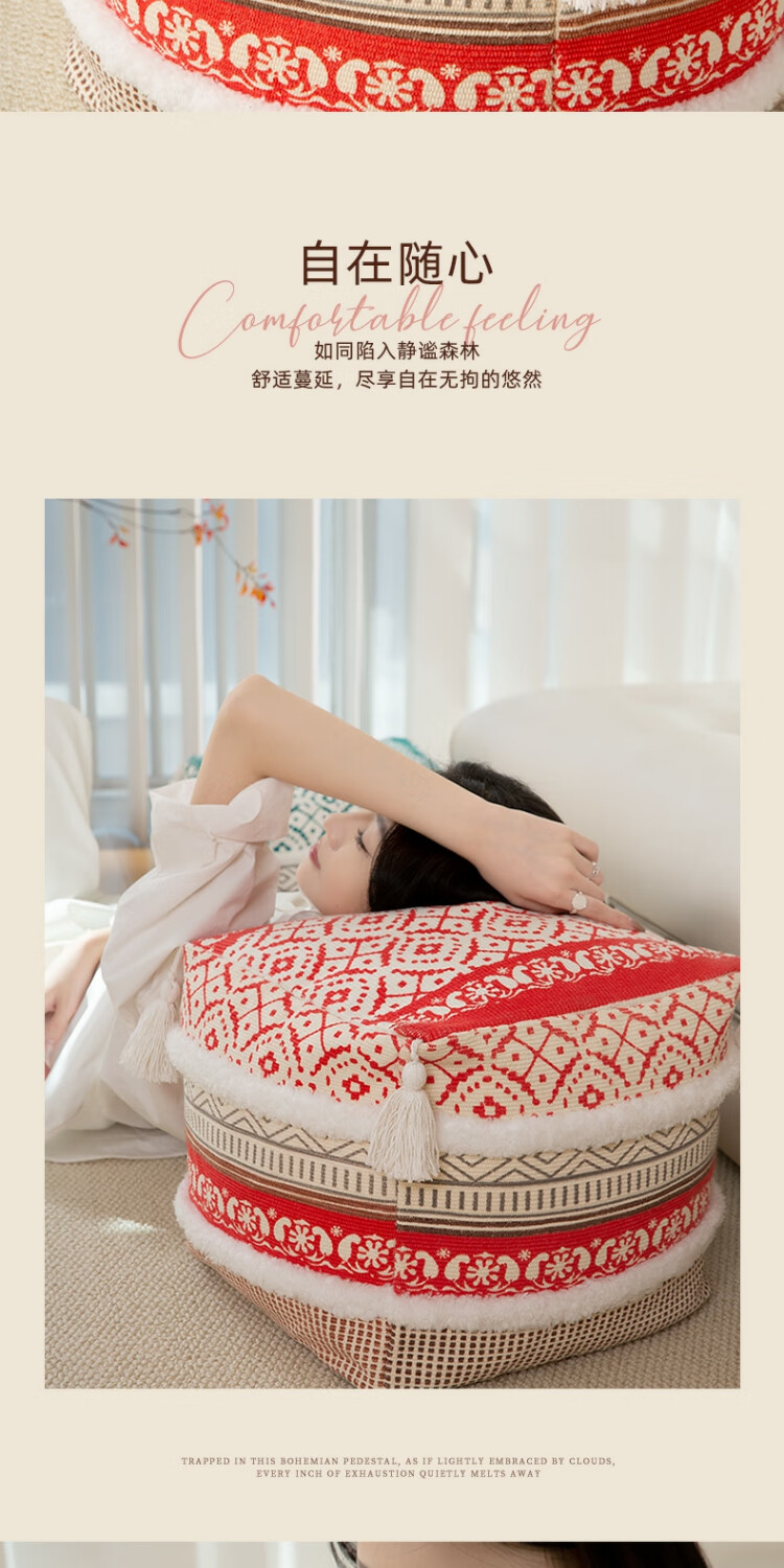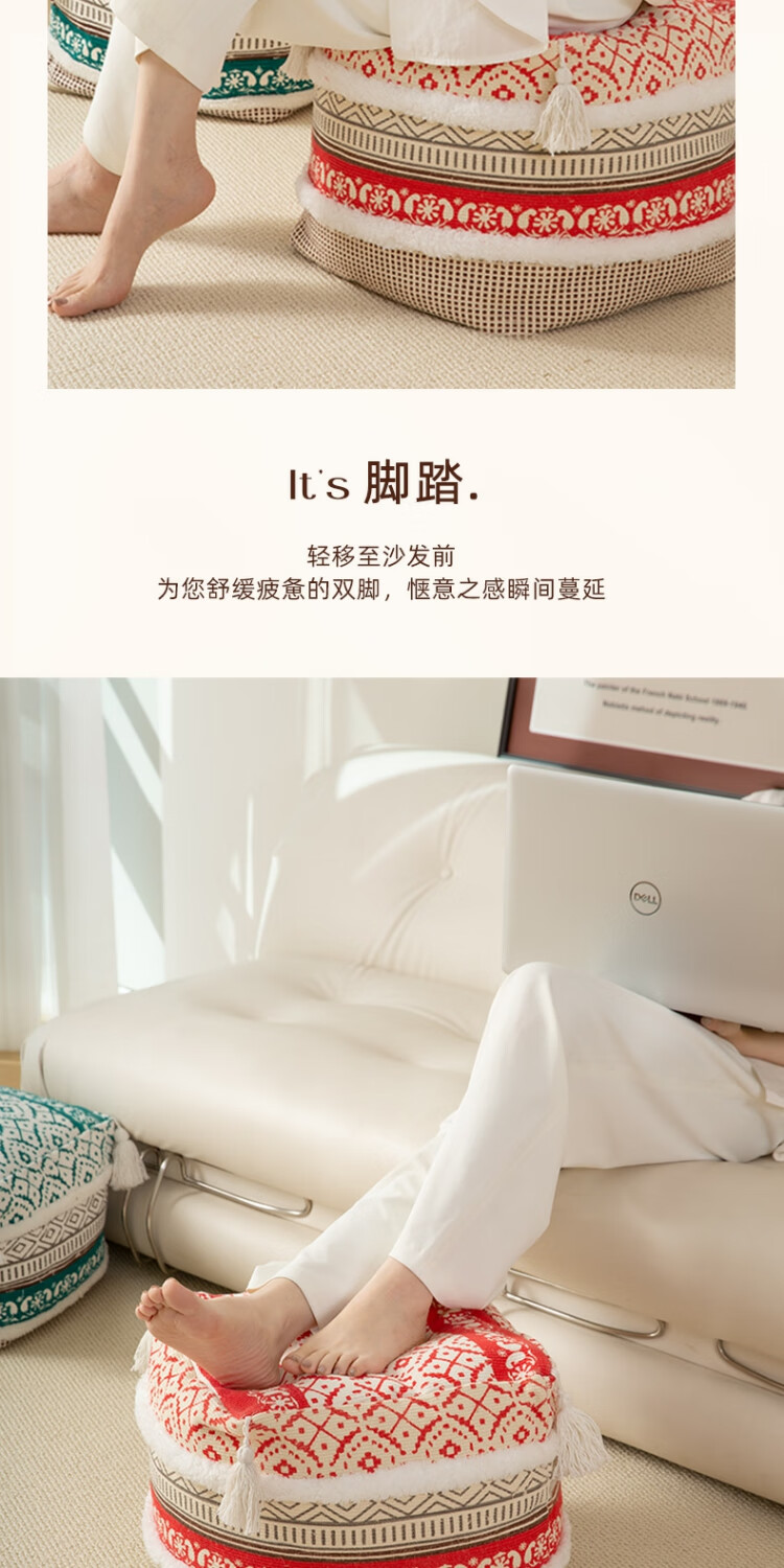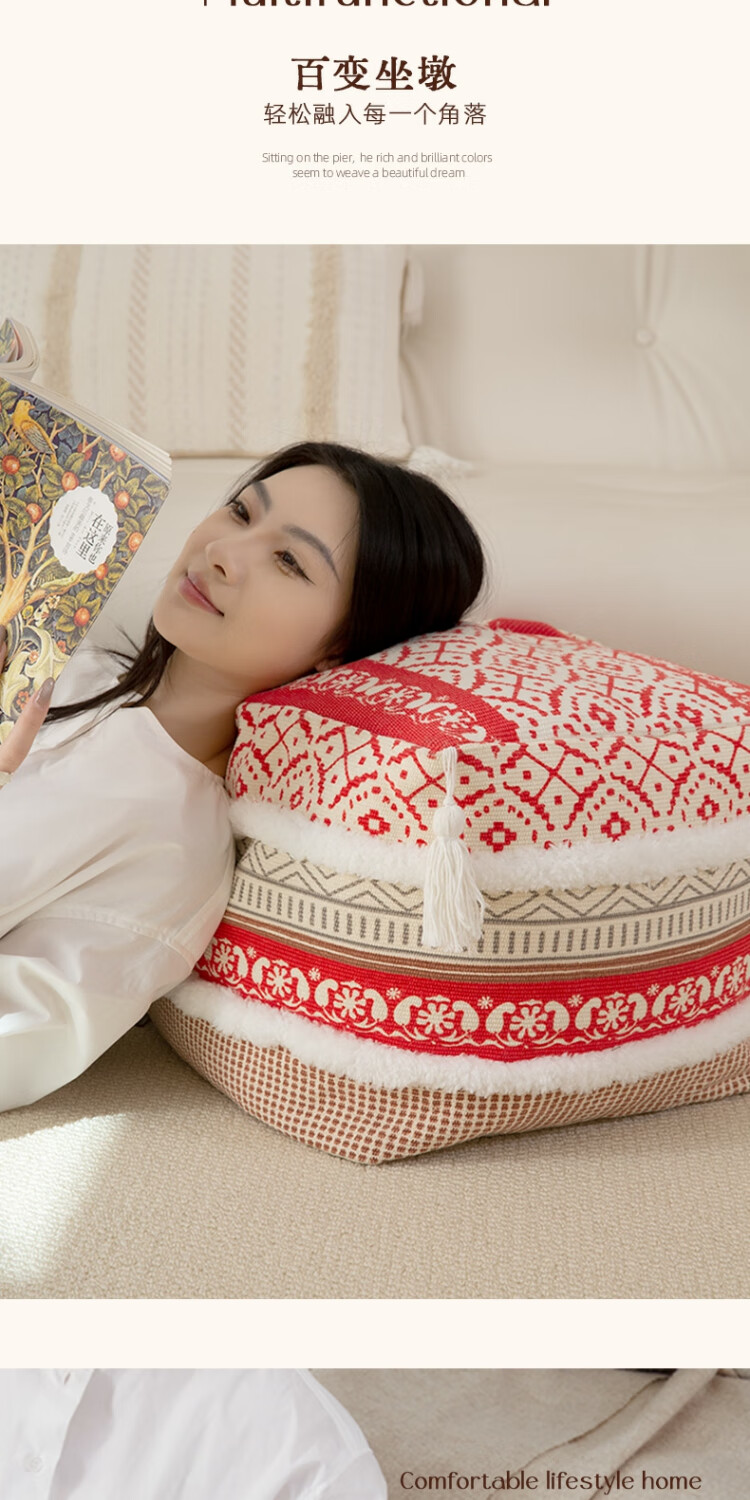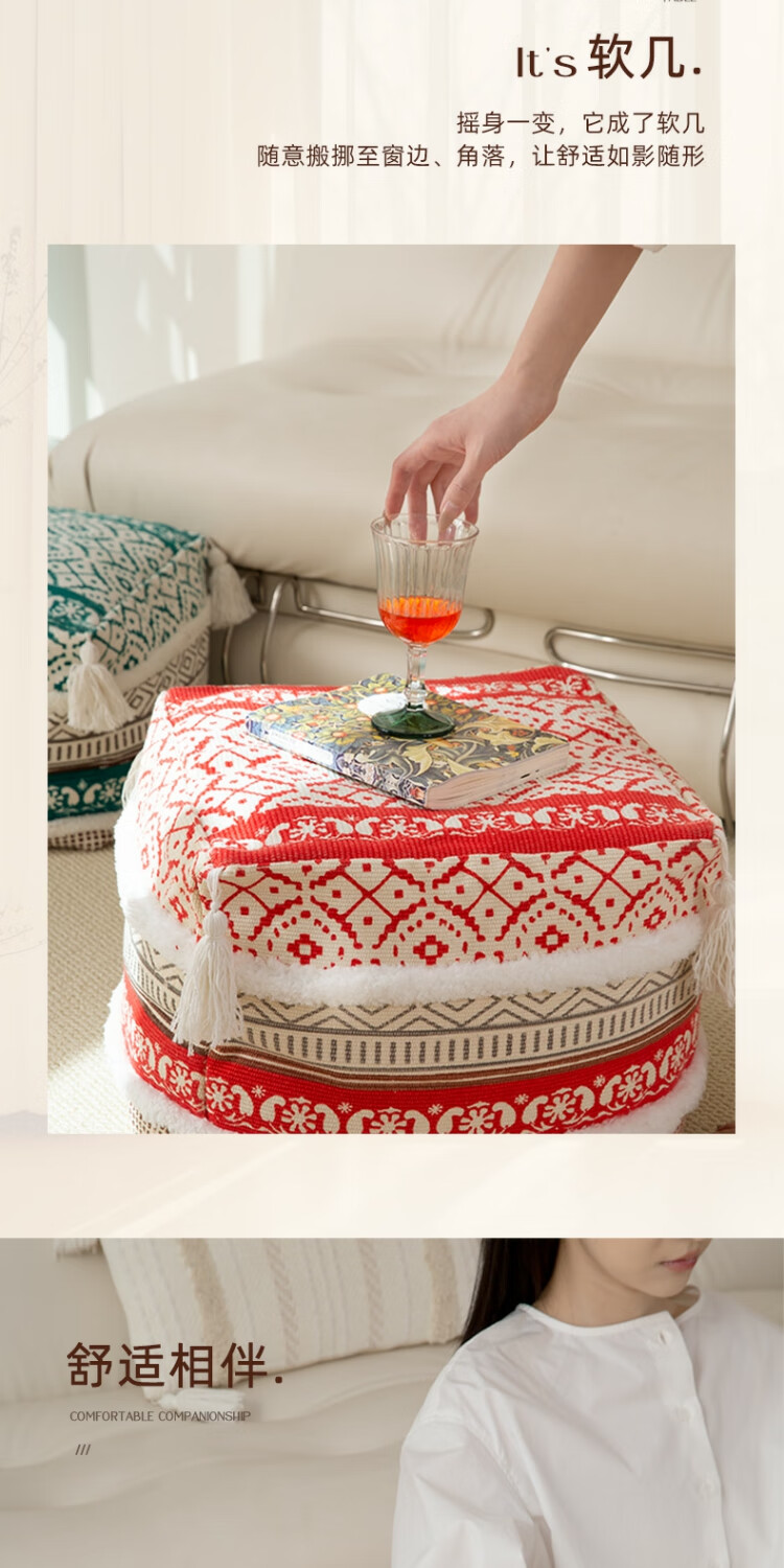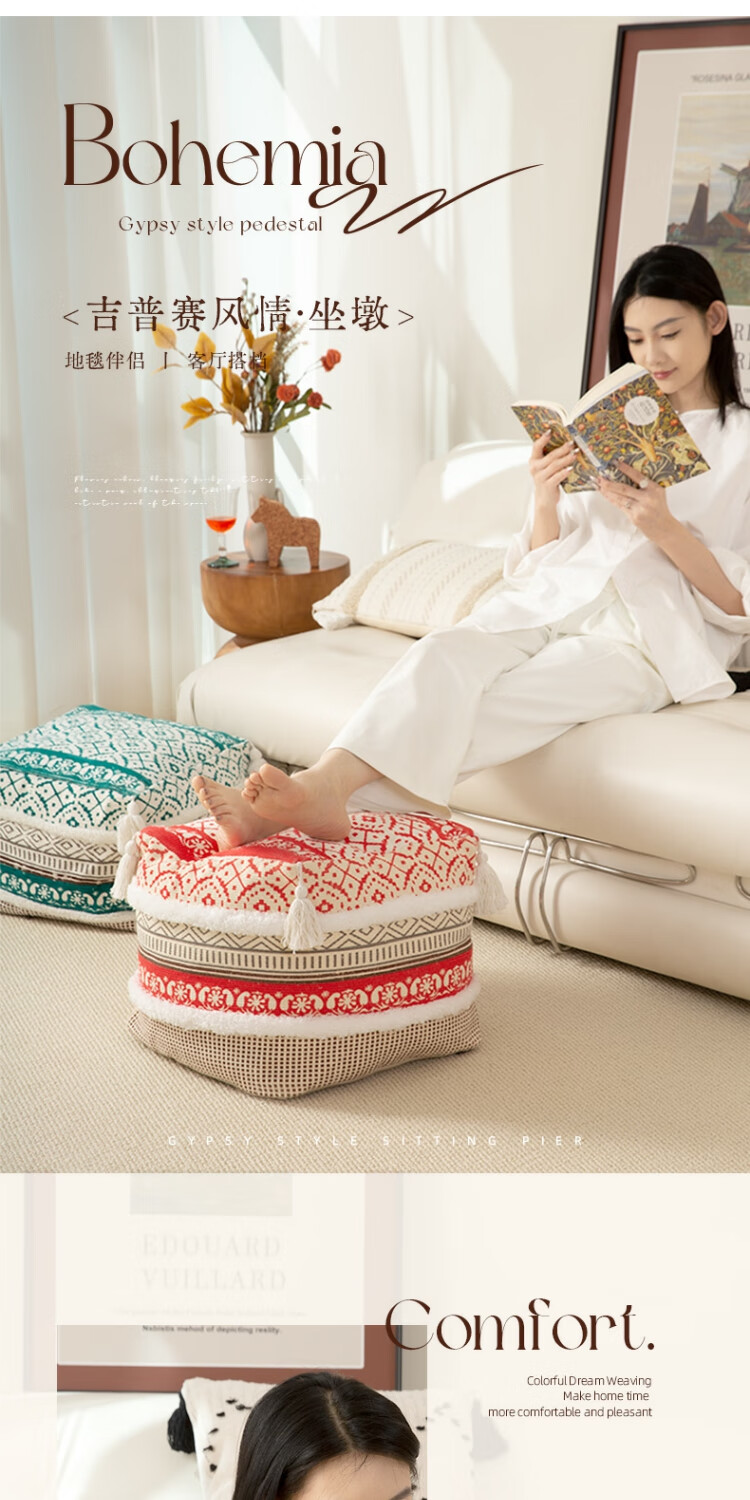 京华中古波西米亚坐墩多用轻奢榻榻米客厅地上坐垫可拆洗懒人沙发蒲团 布拉诺 40*40*30