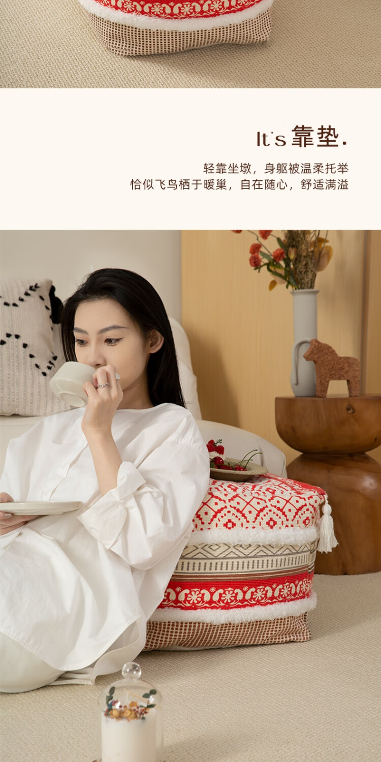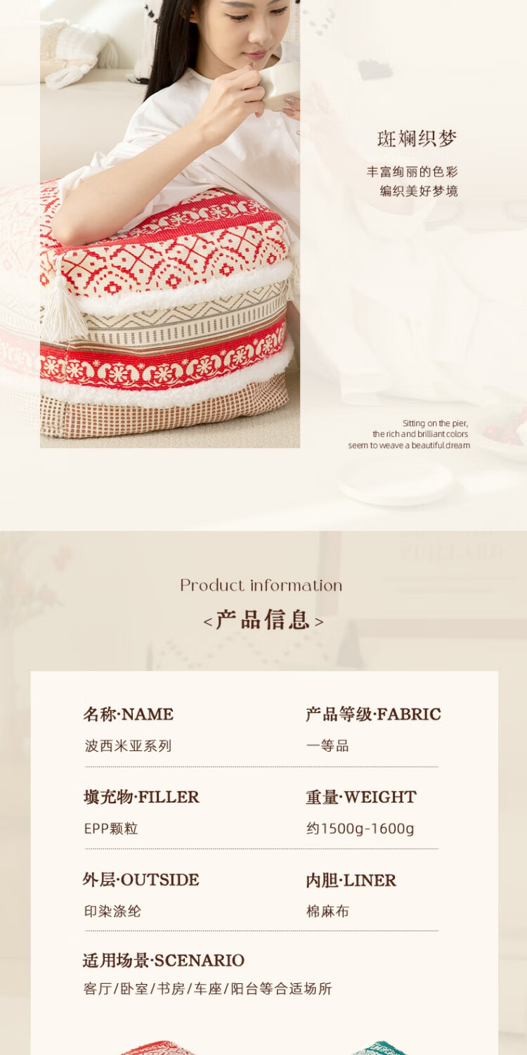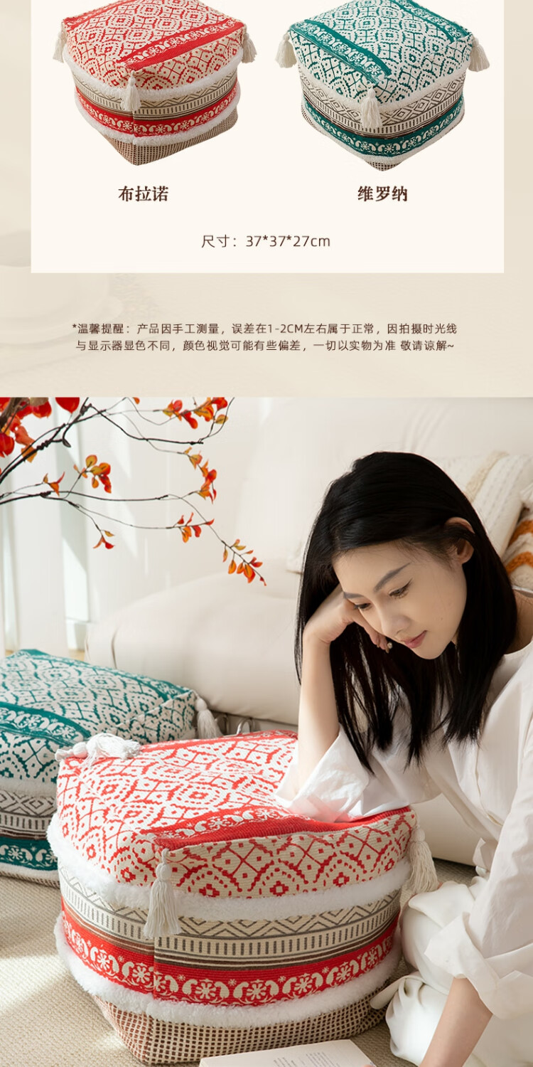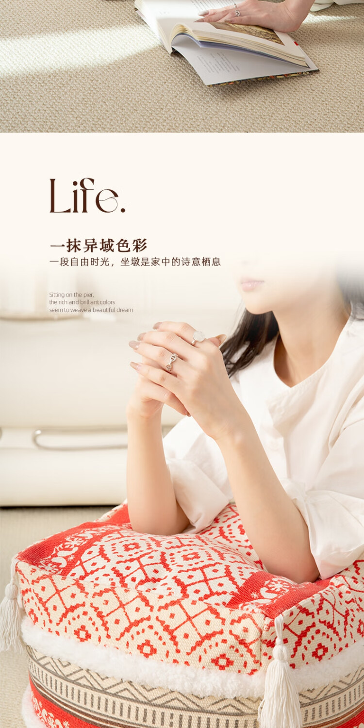 京华中古波西米亚坐墩多用轻奢榻榻米客厅地上坐垫可拆洗懒人沙发蒲团 布拉诺 40*40*30