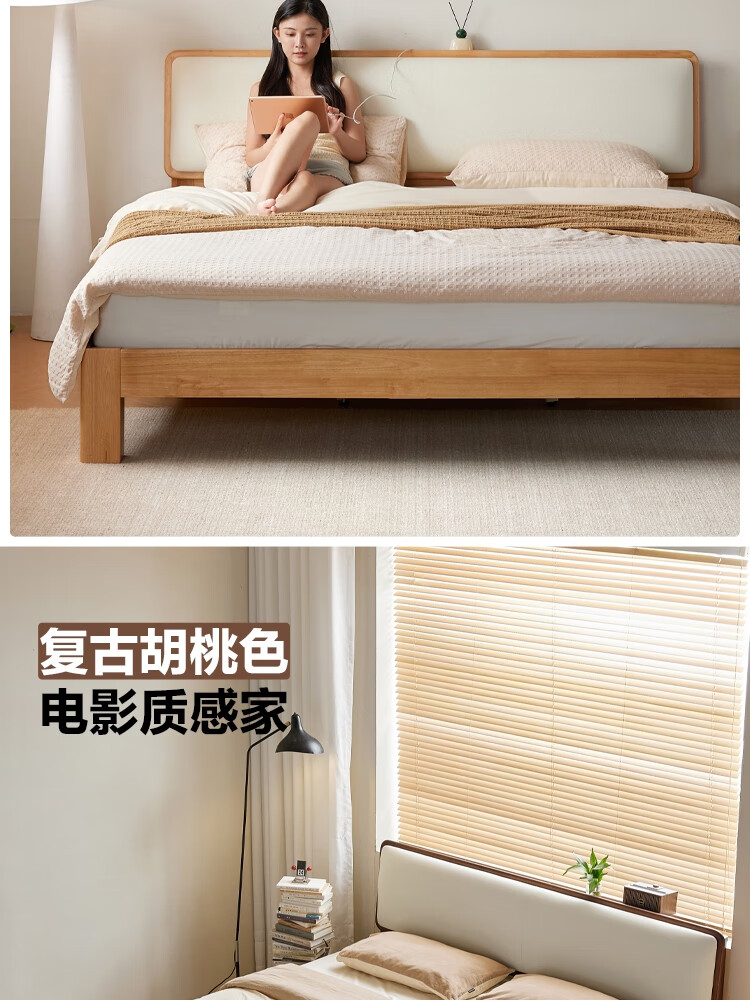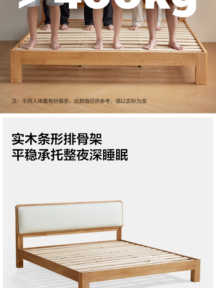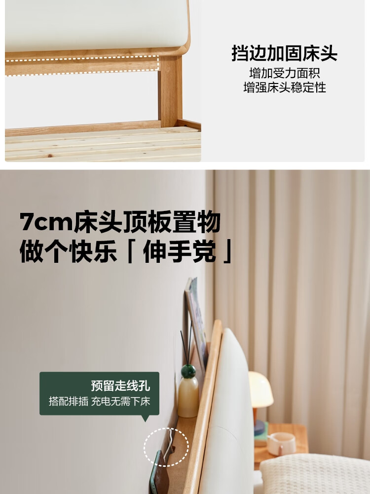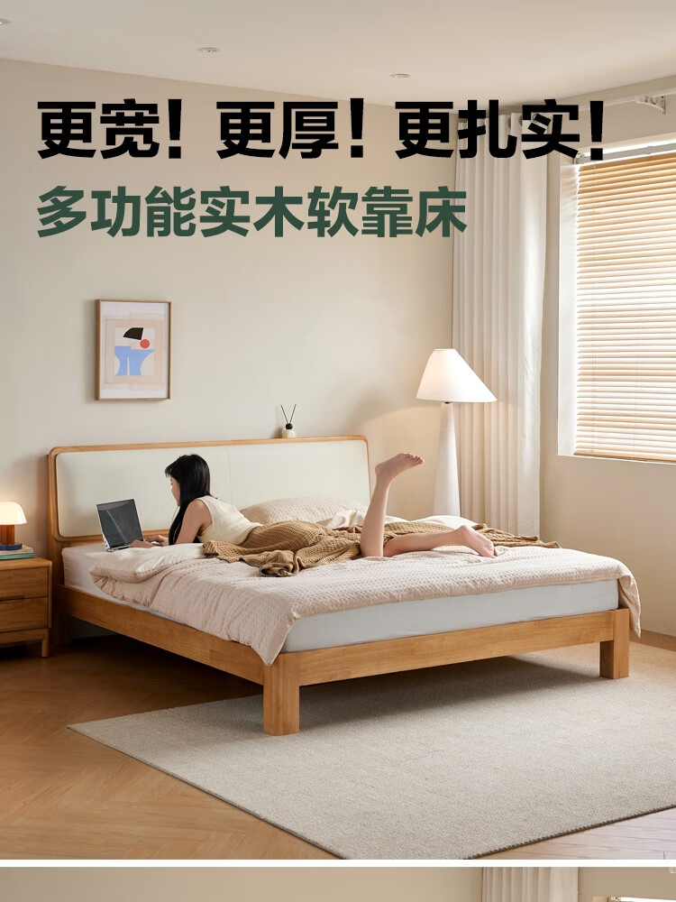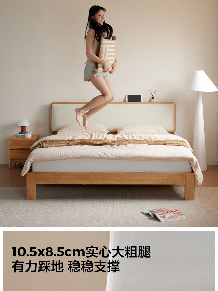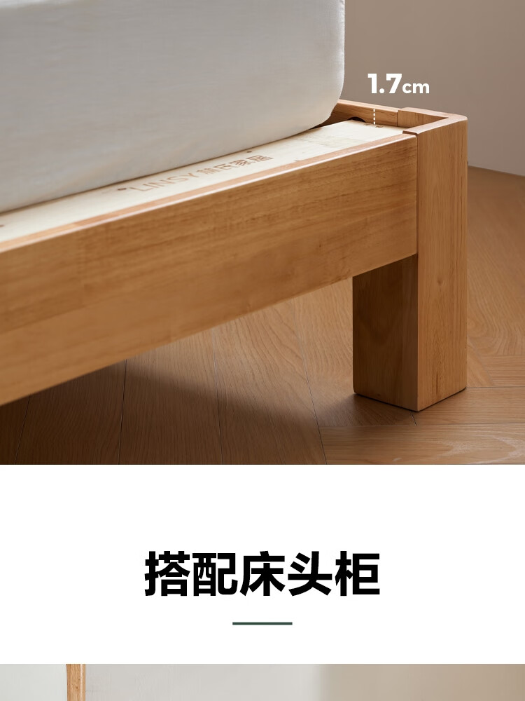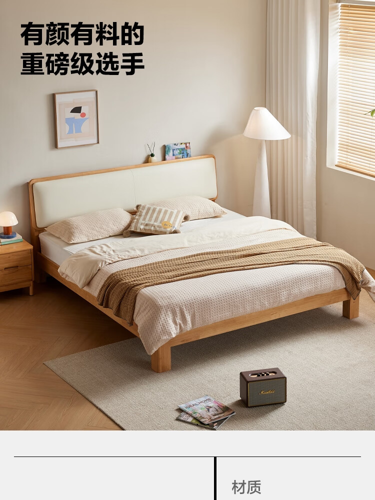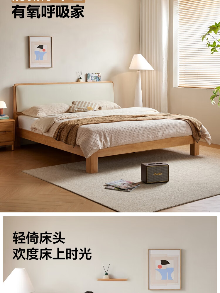 林氏家居实木软包床1米8双人床2025新款主卧大床家具木业小满系列PK21A 【原木色】软包实木床+床垫 1.5米x2米