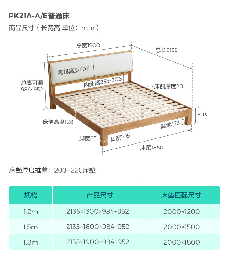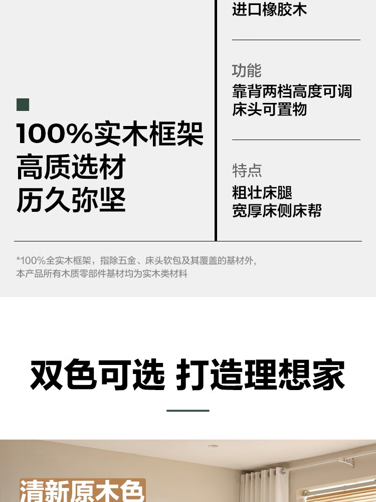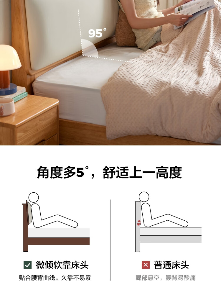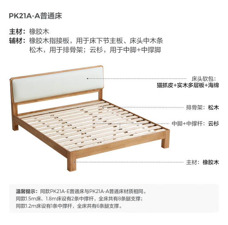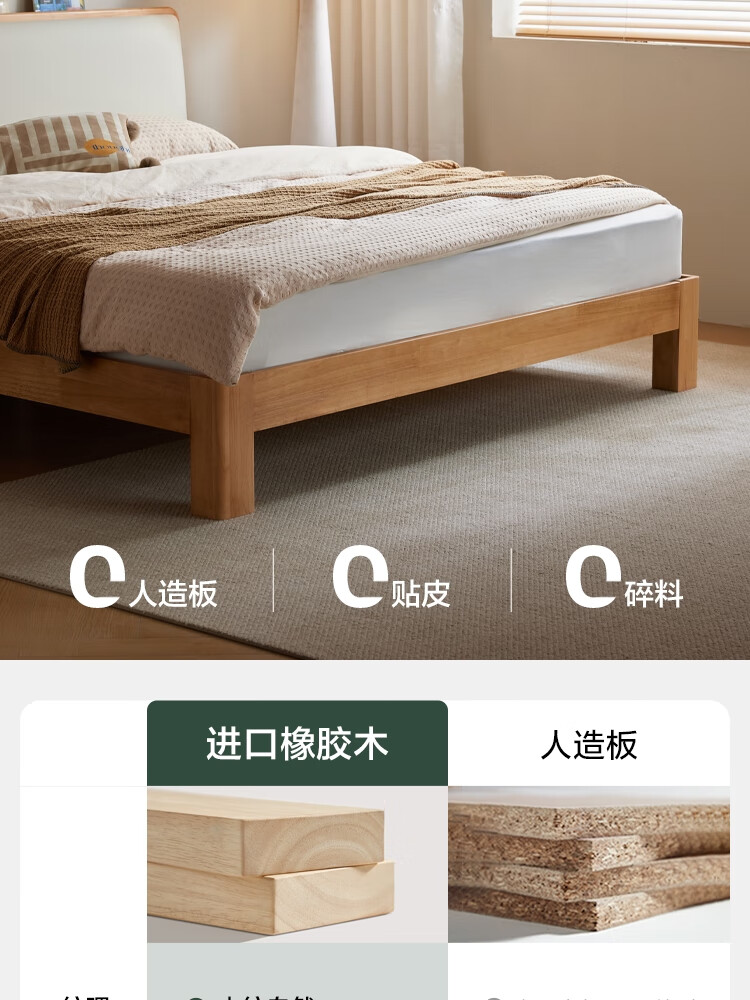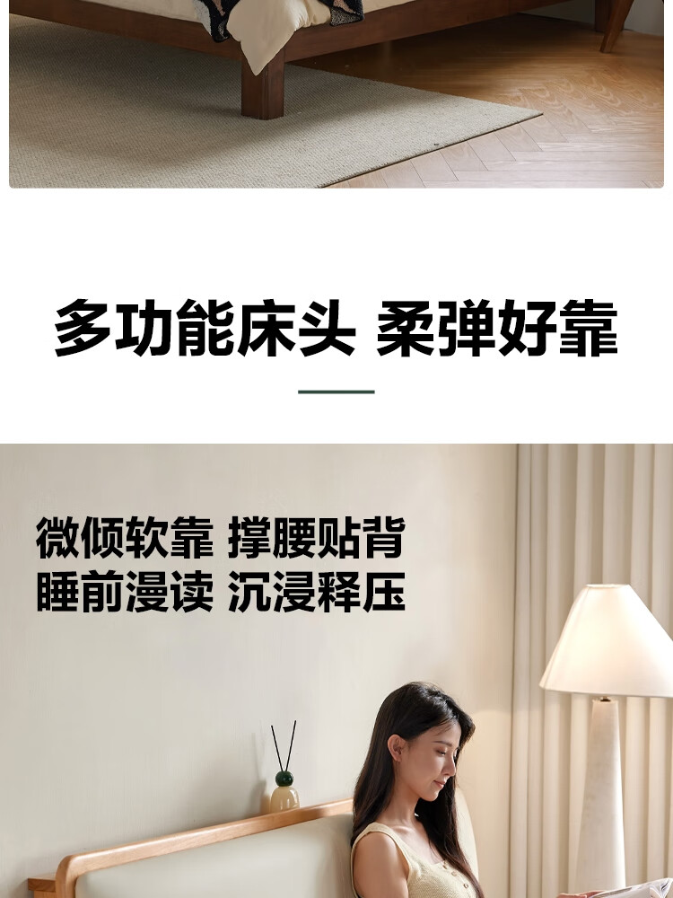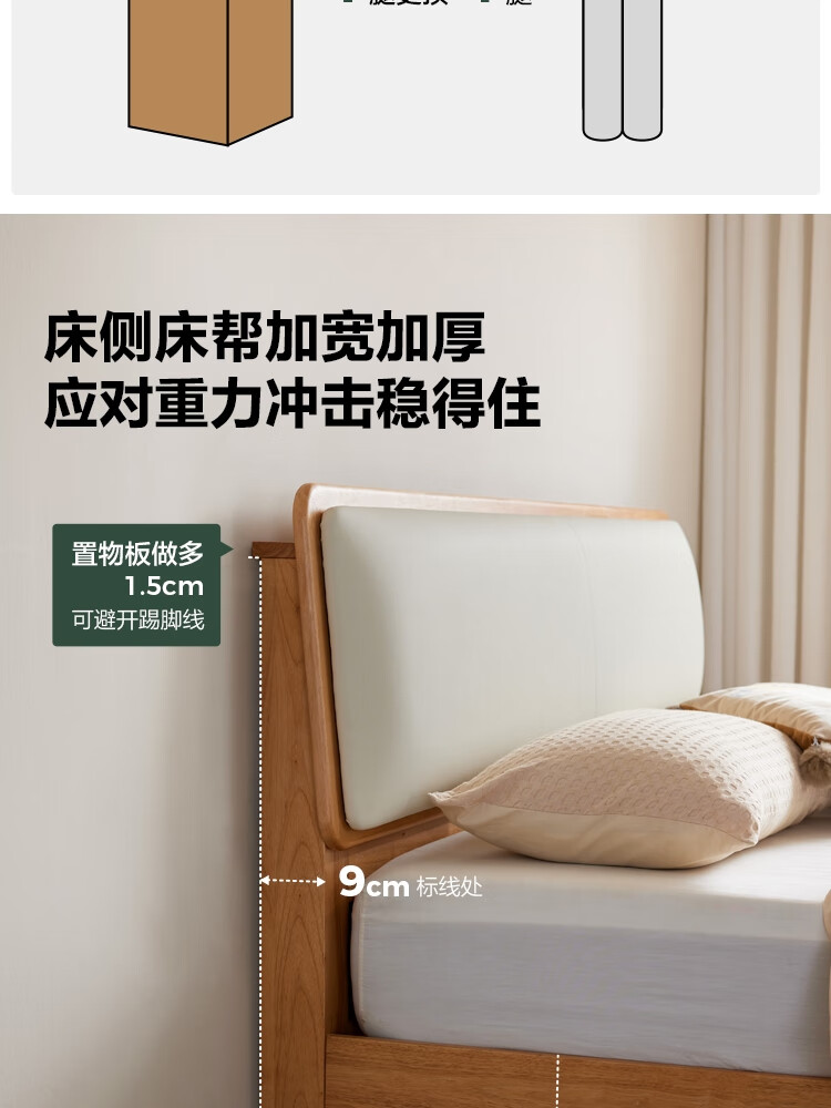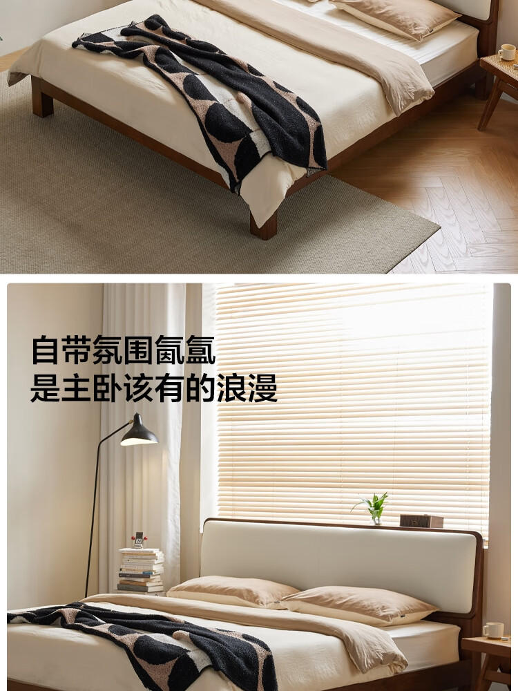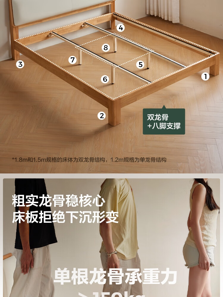 林氏家居实木软包床1米8双人床2025新款主卧大床家具木业小满系列PK21A 【原木色】软包实木床+床垫 1.5米x2米