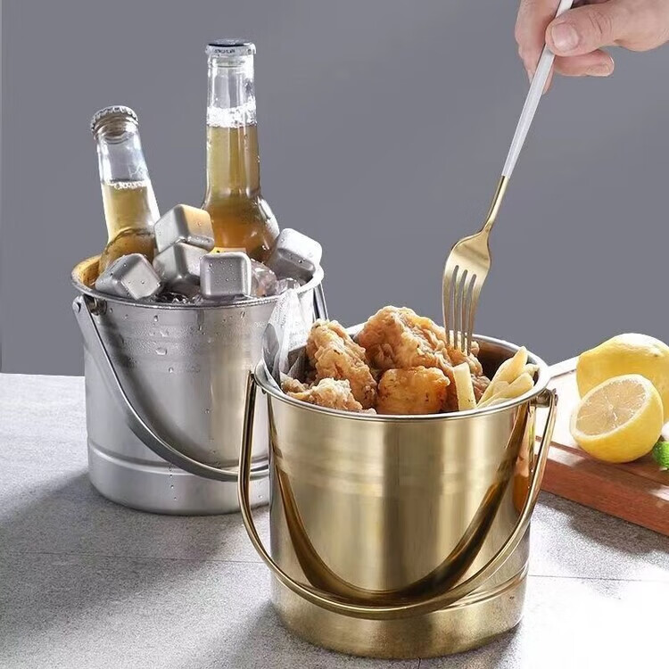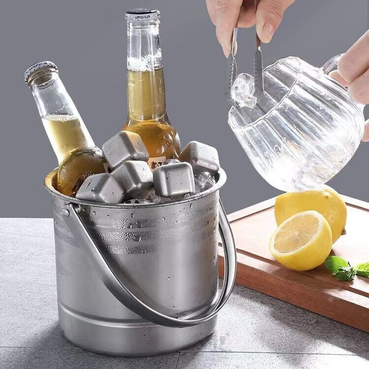 简漾不锈钢冰桶商用酒吧KTV专用啤酒红酒创意冰块桶冰粒桶酒吧香槟桶 1个装 1升冰块桶带隔水片送夹子