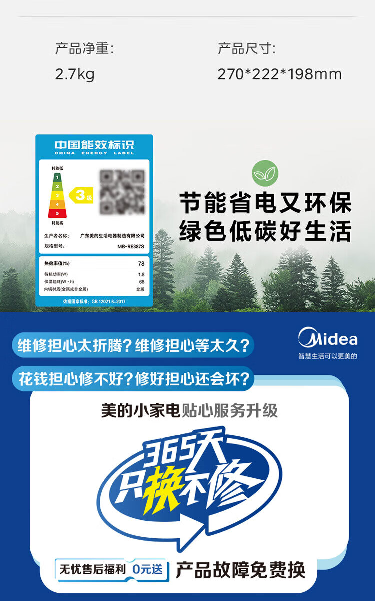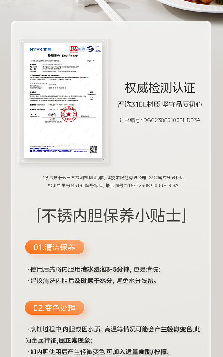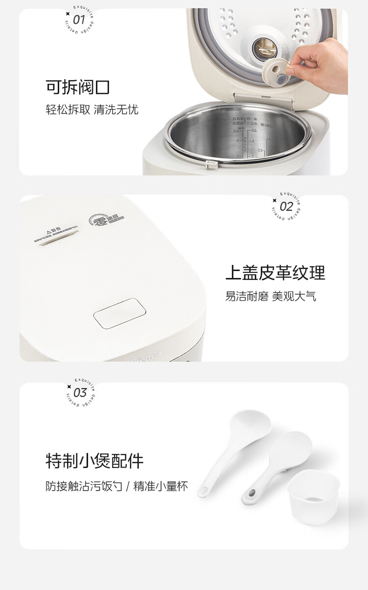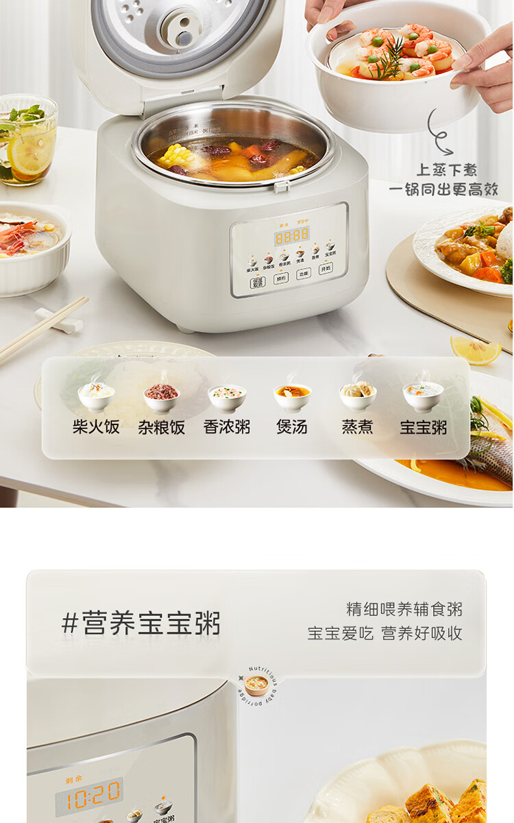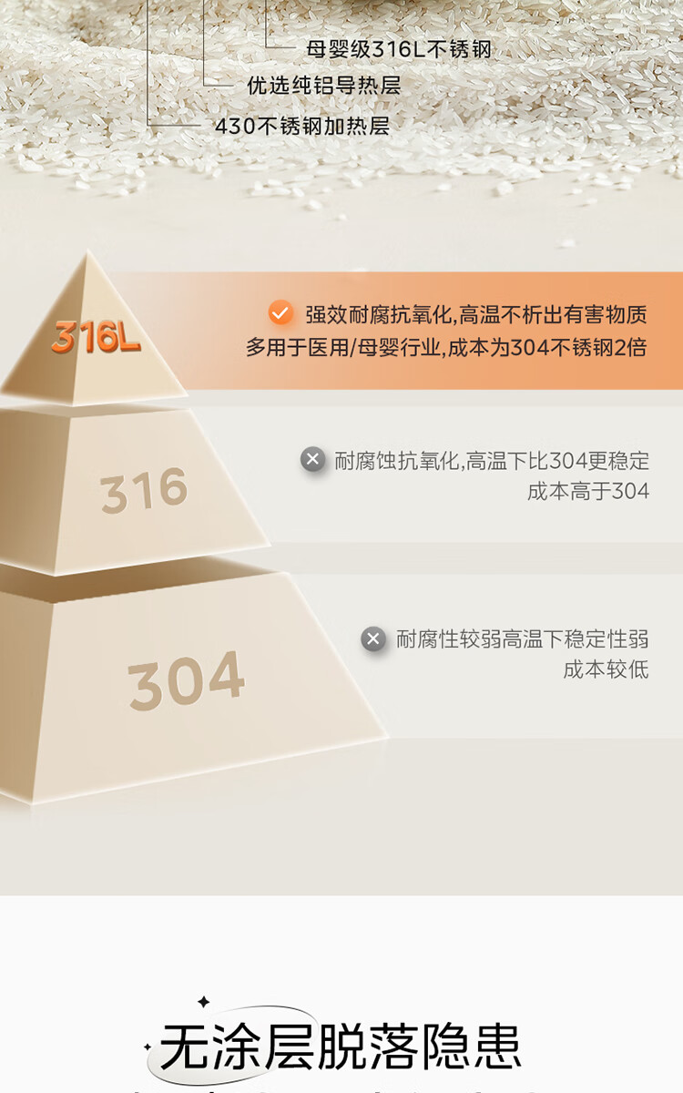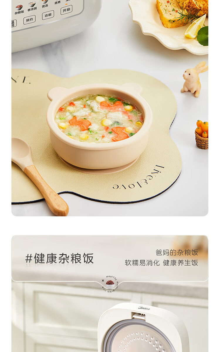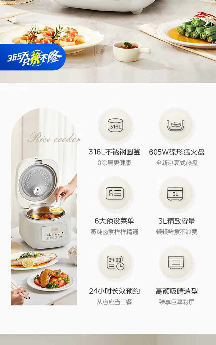 美的(Midea)电饭煲 3L家用电饭锅 316L不锈钢内胆无涂层煮饭锅 2-3人多功能0涂层煲汤煮粥锅米饭锅MB-RE387S