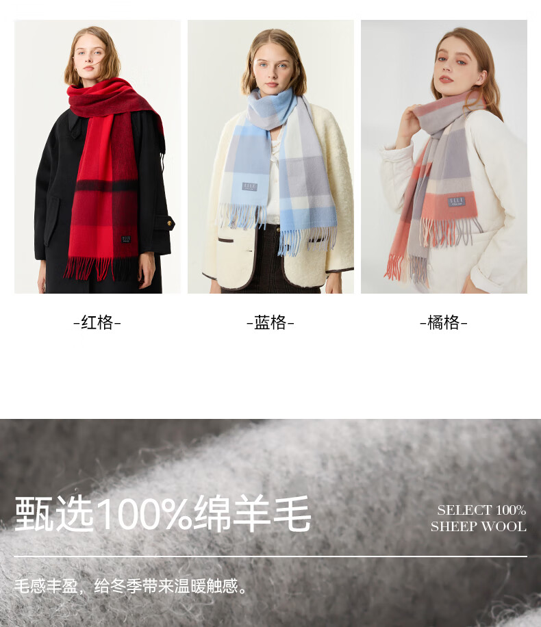 她【礼盒装】纯羊毛围巾秋冬季女保暖披肩妈妈生日送长辈礼物