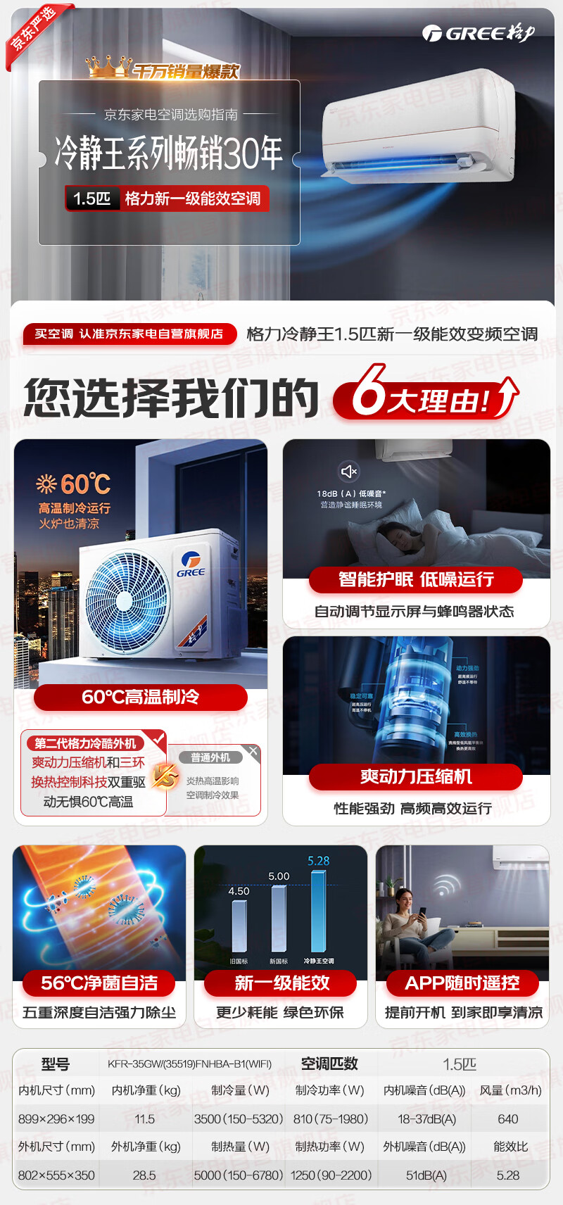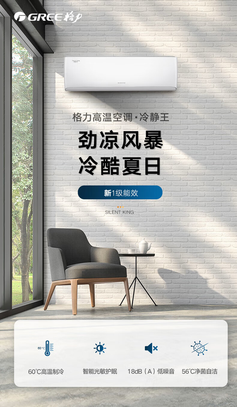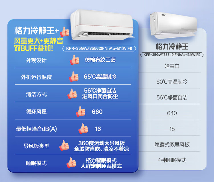 格力(GREE)空调1.5匹 冷静王 新一级能效变频冷暖 卧室格力空调挂机KFR-35GW/(35549)FNhAc-B1(WIFI)