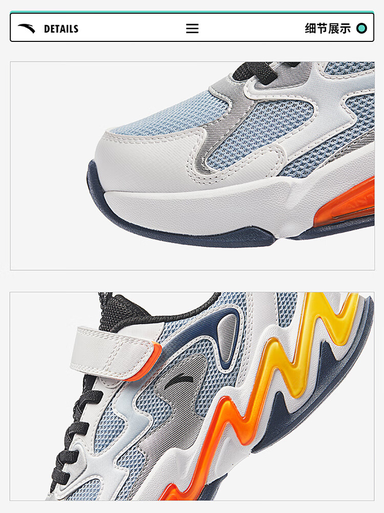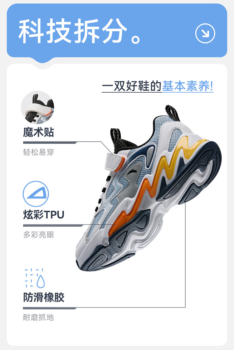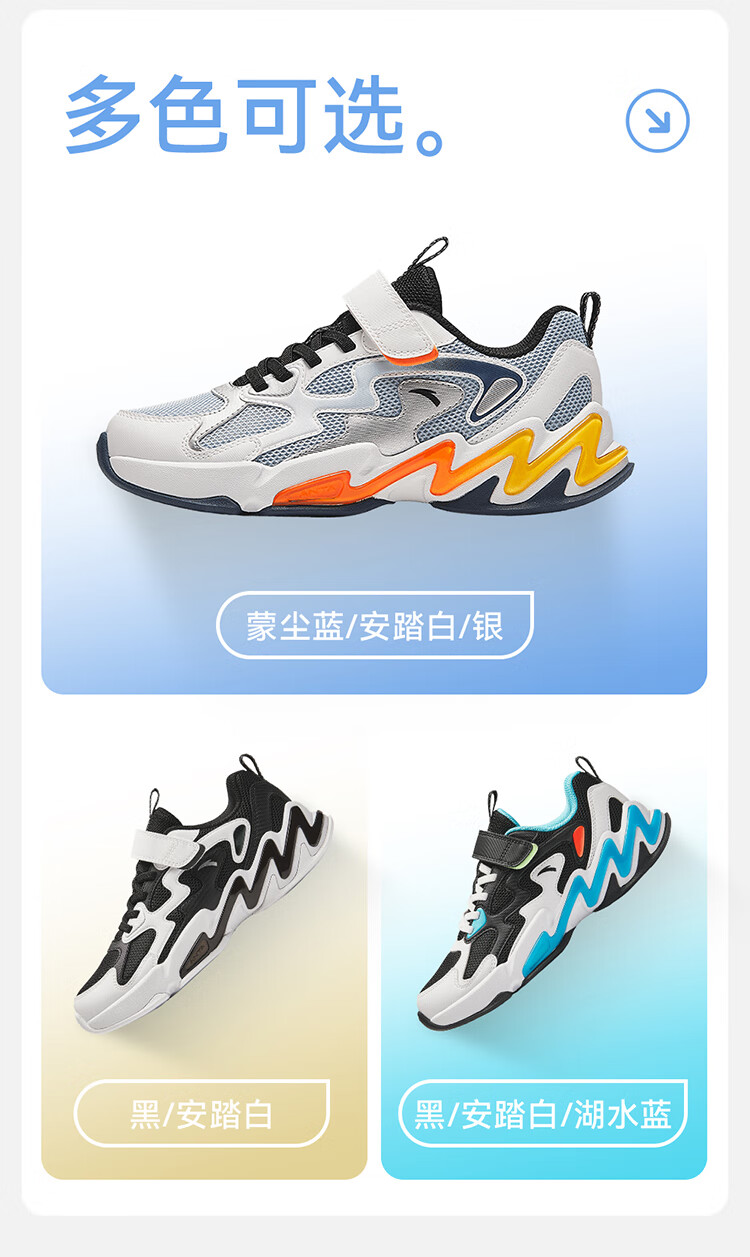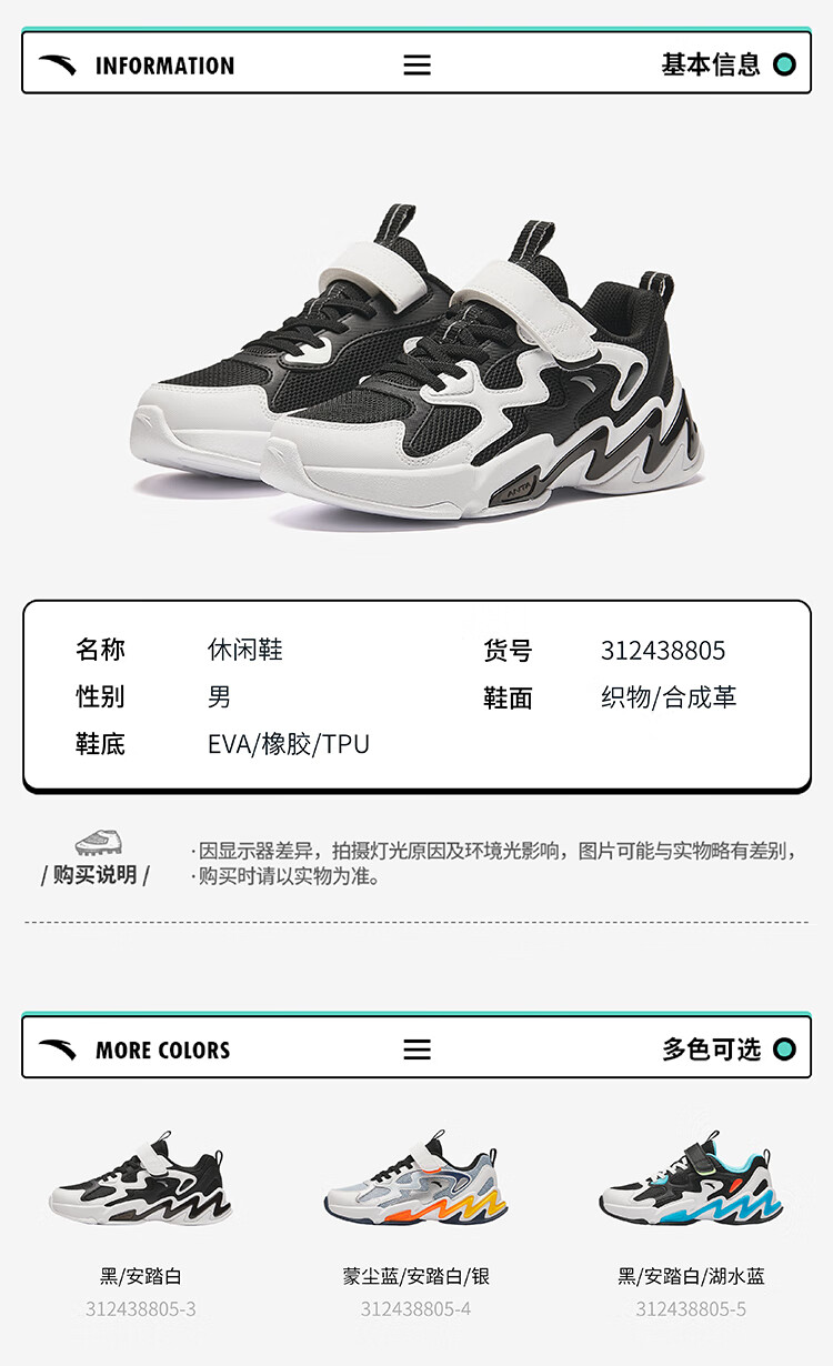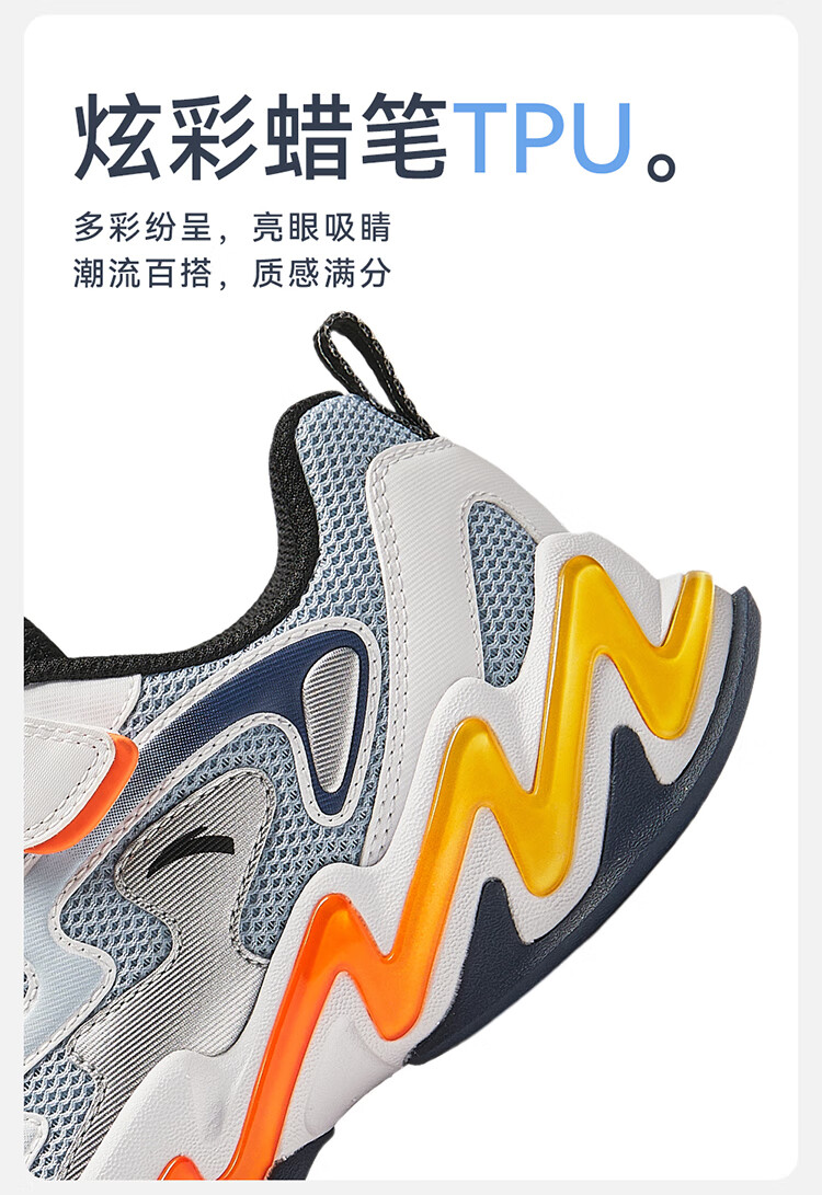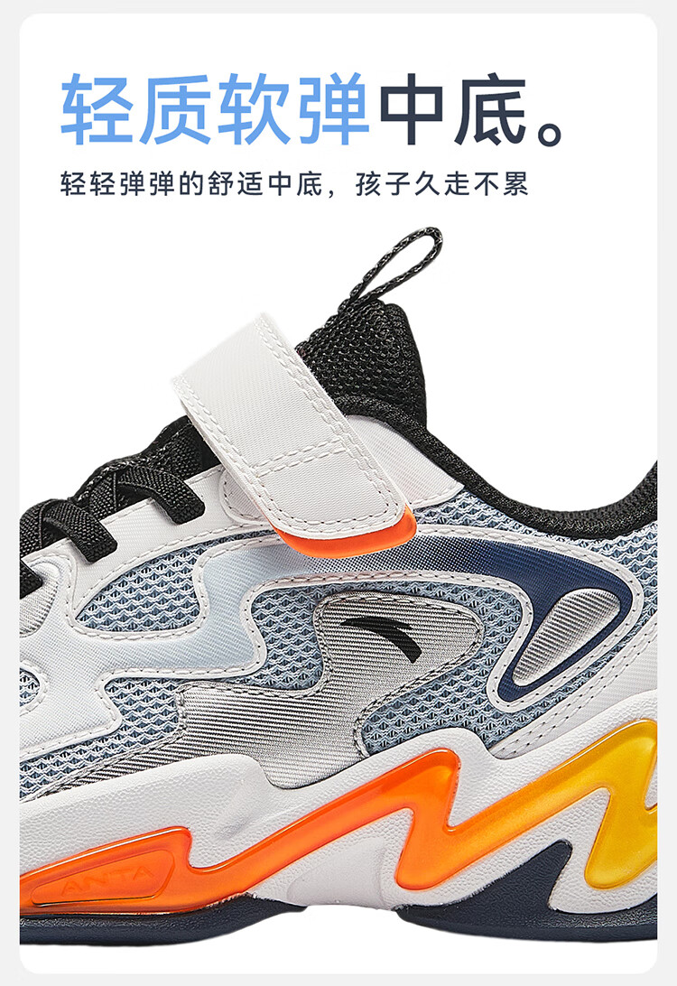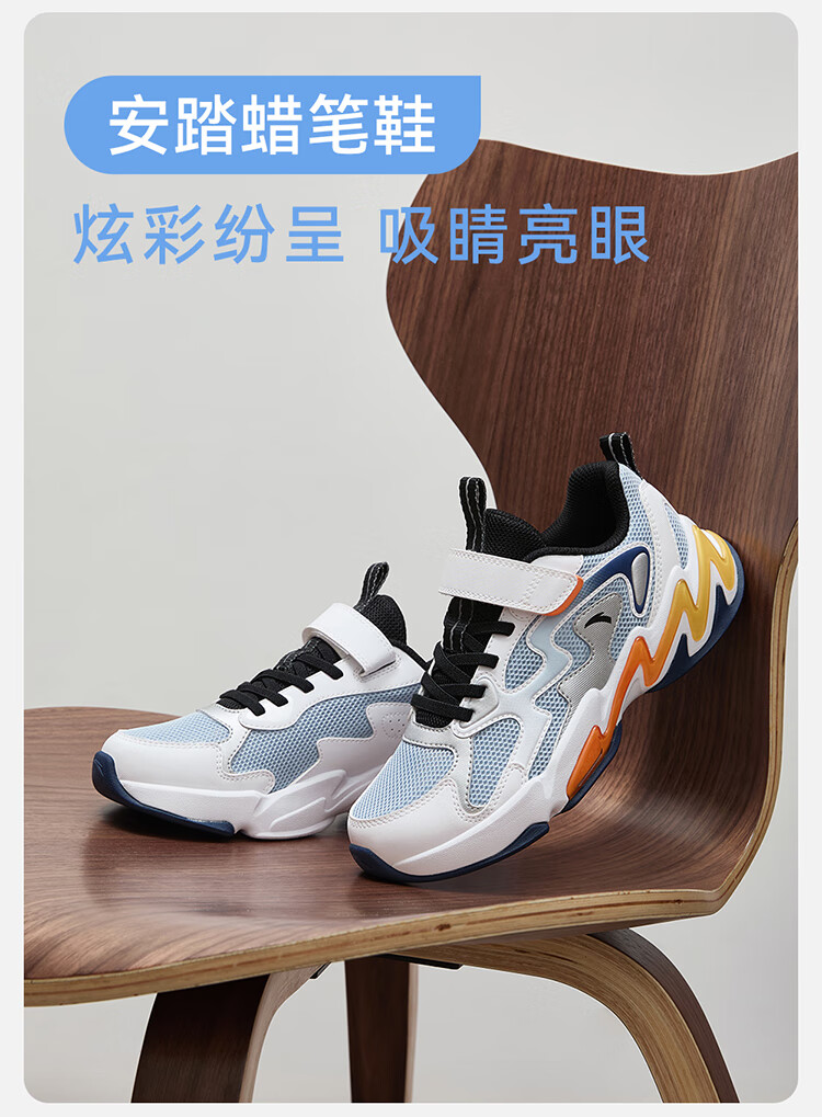 安踏儿童运动鞋男大童犟弹科技魔术贴低帮蜡笔鞋休闲鞋312438805