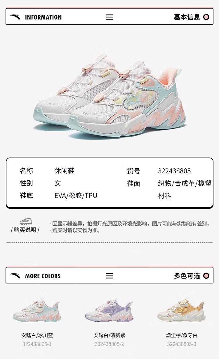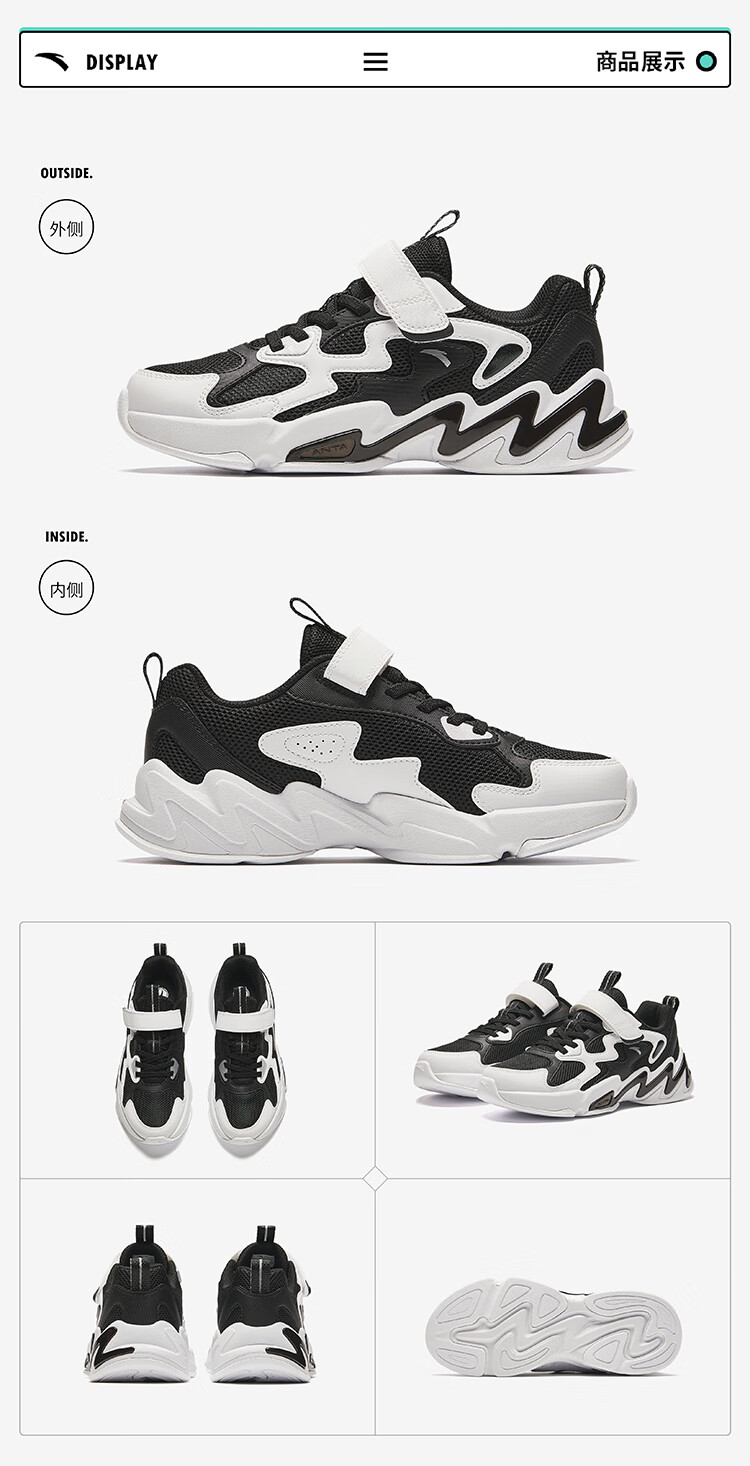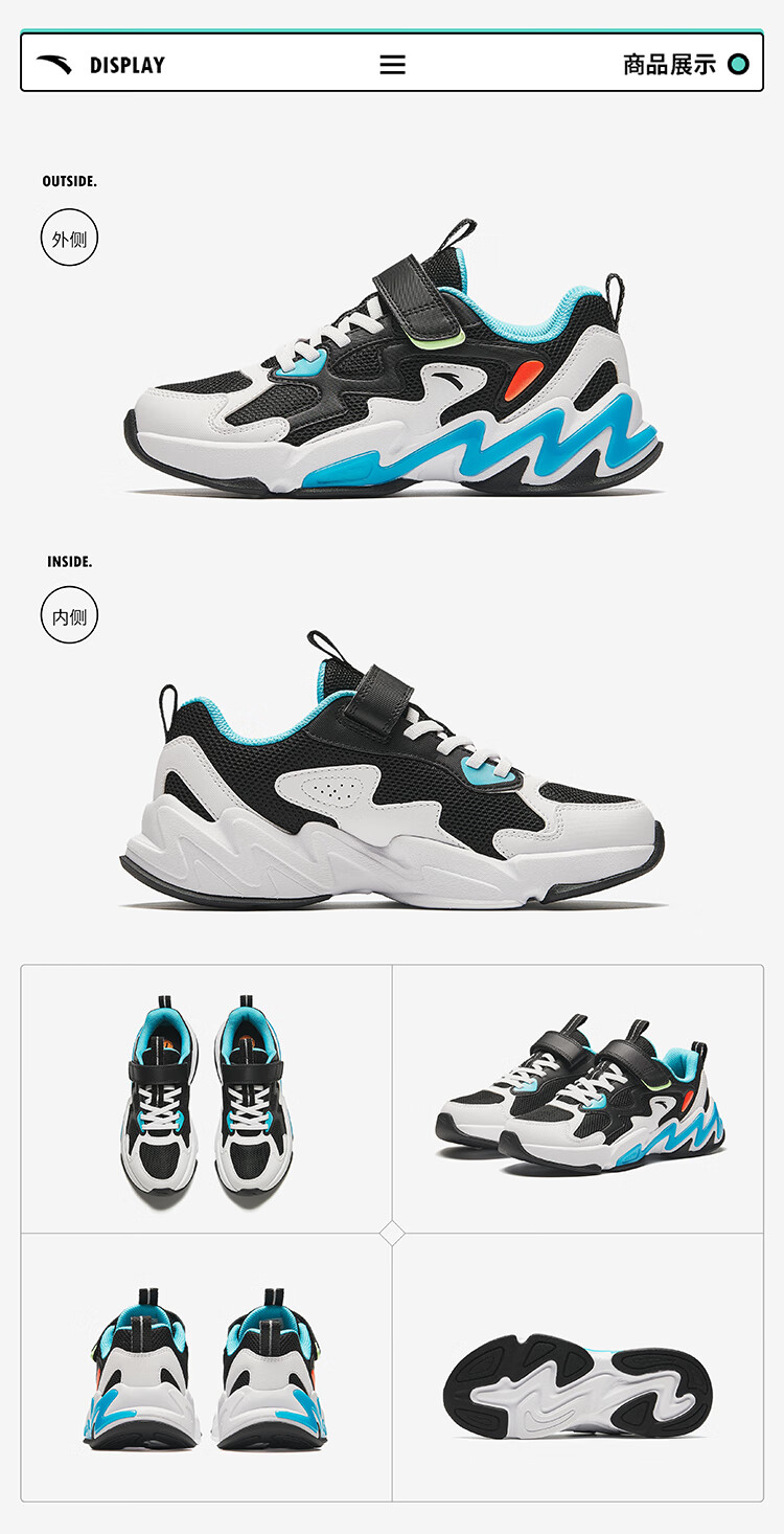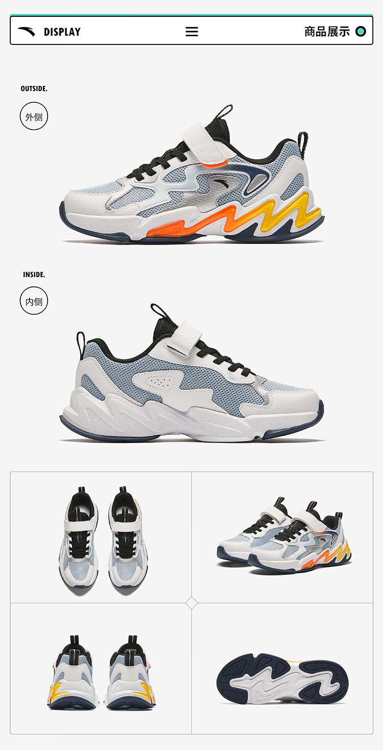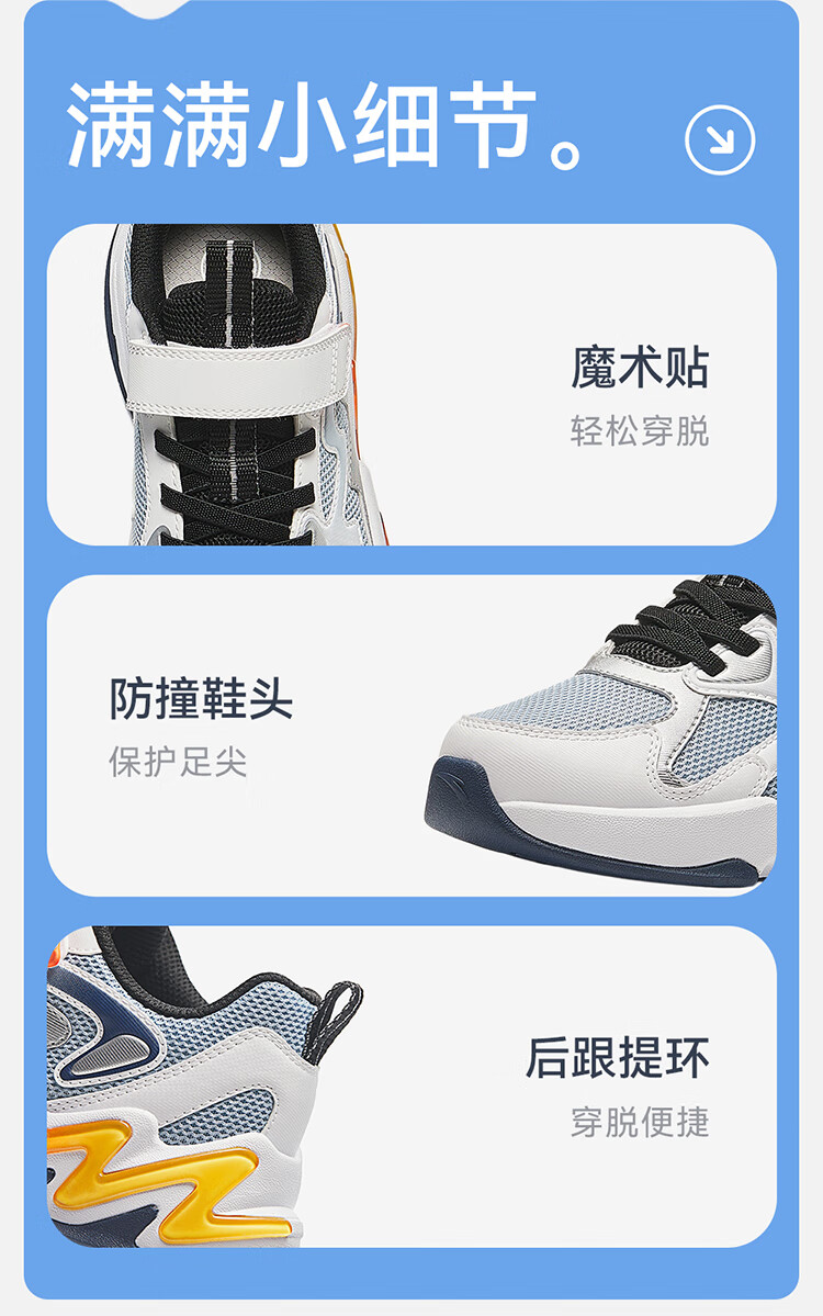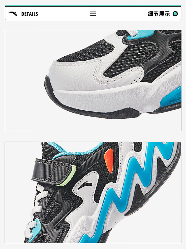安踏儿童运动鞋男大童犟弹科技魔术贴低帮蜡笔鞋休闲鞋312438805