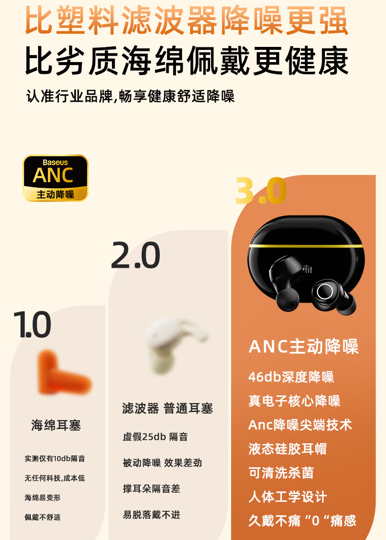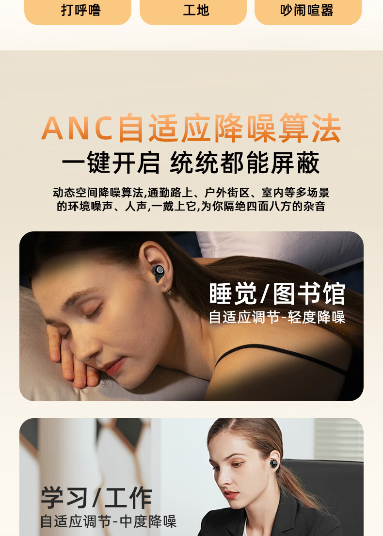 入梦【Anc主动降噪】耳塞防噪音睡眠专用超强隔音神器不伤耳打鼾防吵