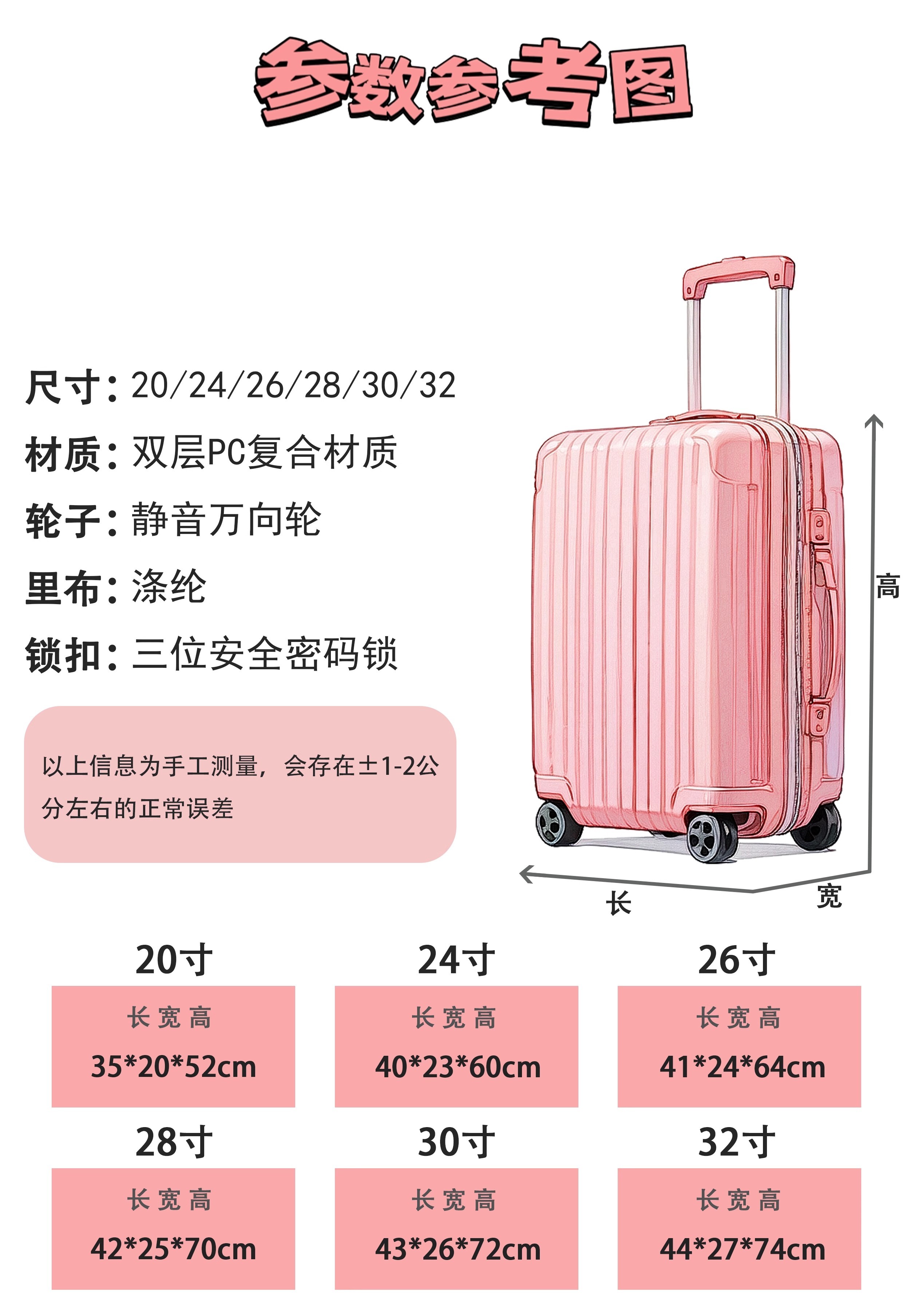 爱华仕方糖箱大容量行李箱结实耐用轻便密码登机箱旅行拉杆箱皮箱子 黑色 【加厚PC】 【耐磨抗摔】 24英寸 【3-5天中途行】