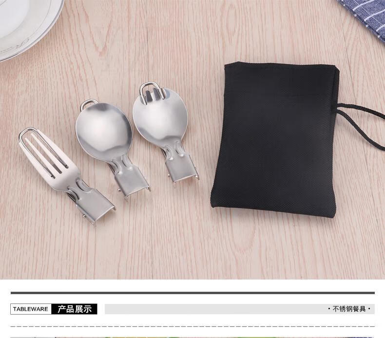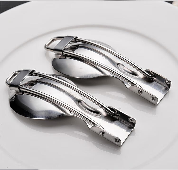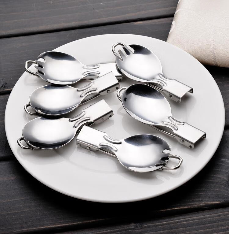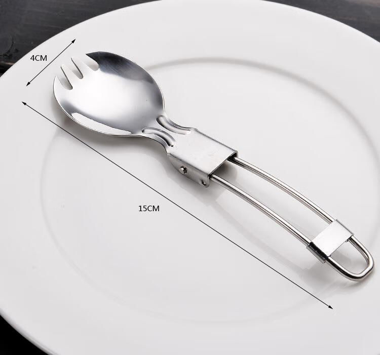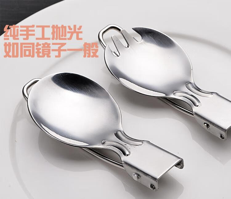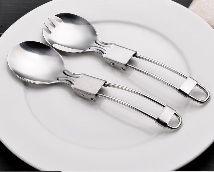 不锈钢折叠勺子折叠餐具 小刀 沙拉勺 带叉折叠勺 户外便携 带叉折叠勺