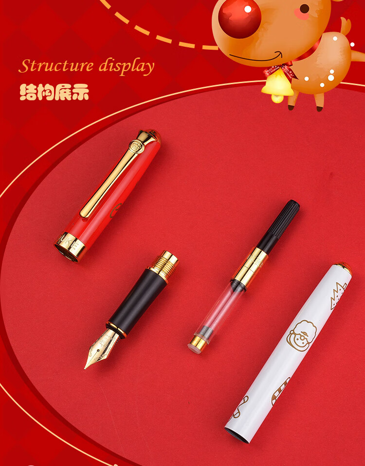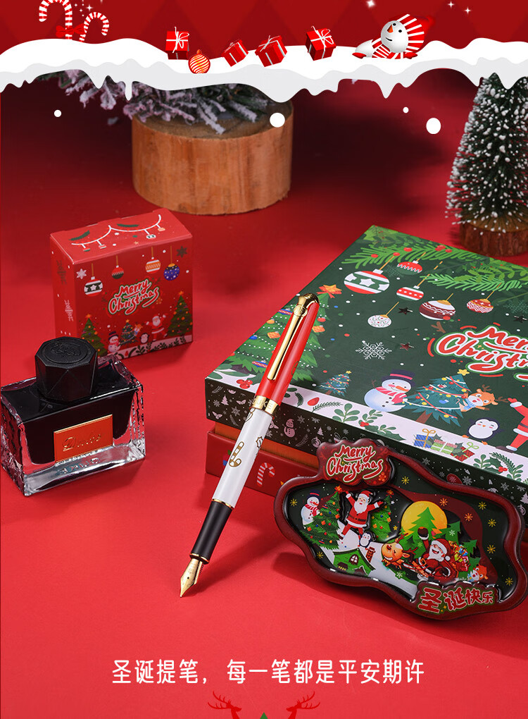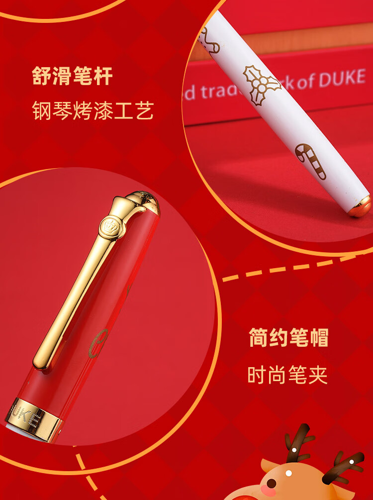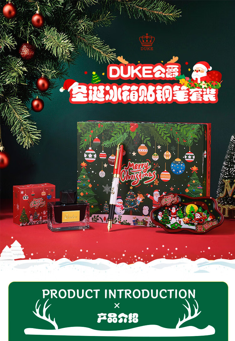 DUKE公爵圣诞节系列套装5红色气氛款铱金笔钢笔墨水笔自用书写送人自用书写顺滑可用墨囊 圣诞冰箱贴套装(红色钢笔)