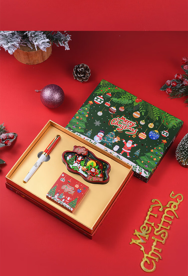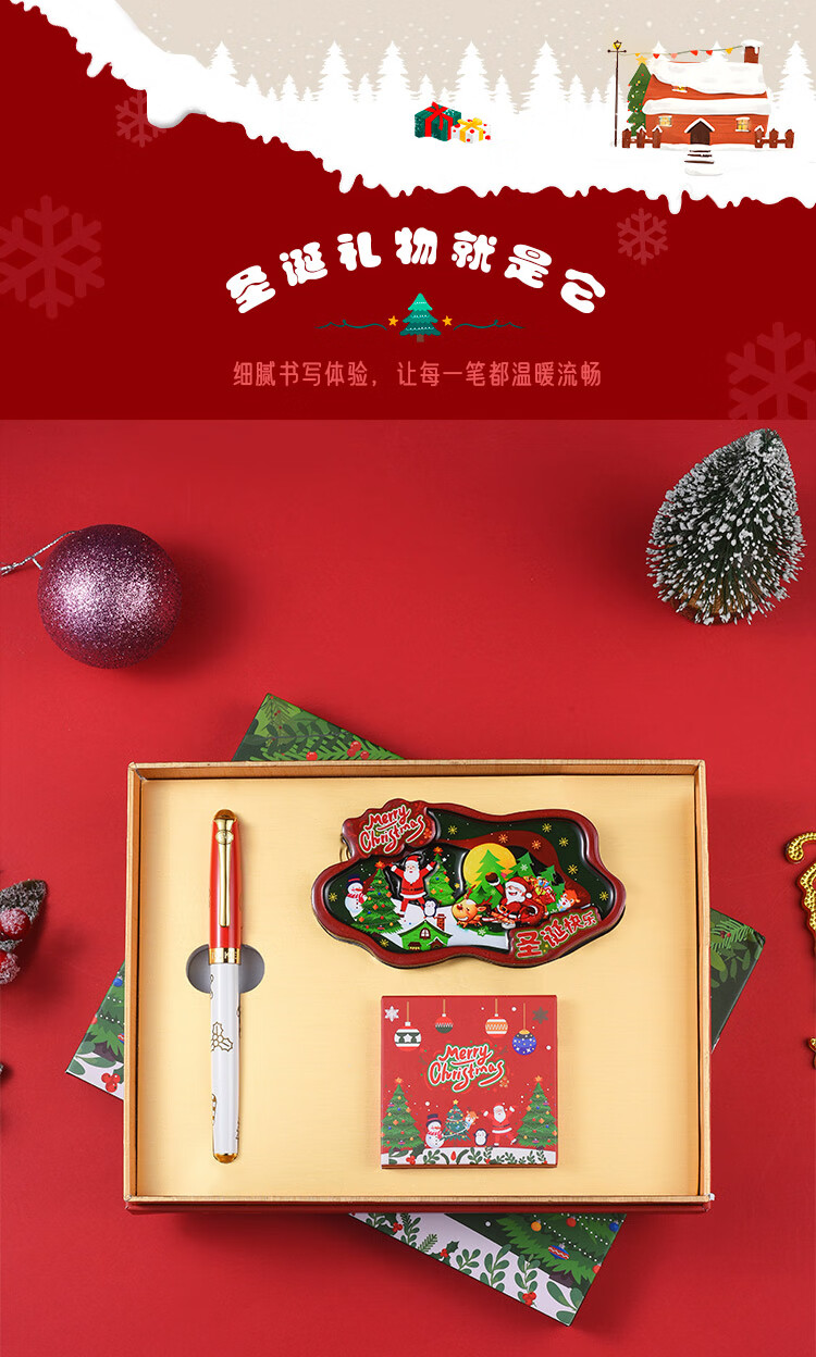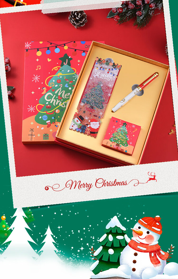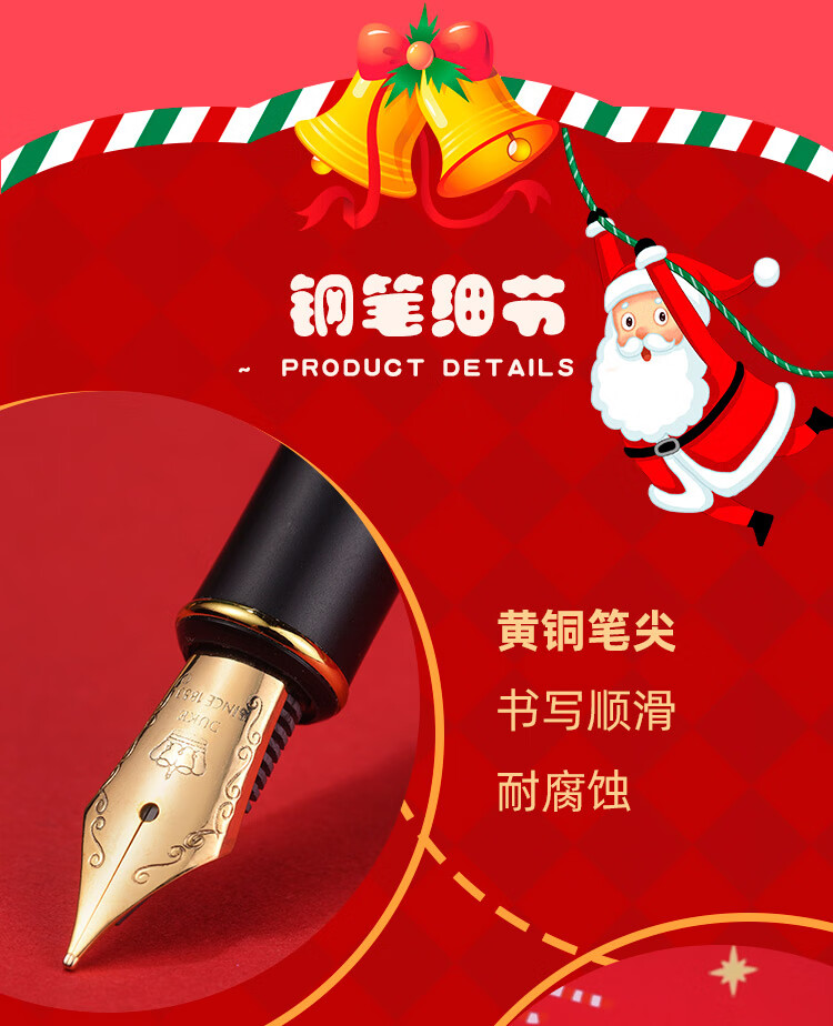 DUKE公爵圣诞节系列套装5红色气氛款铱金笔钢笔墨水笔自用书写送人自用书写顺滑可用墨囊 圣诞冰箱贴套装(红色钢笔)
