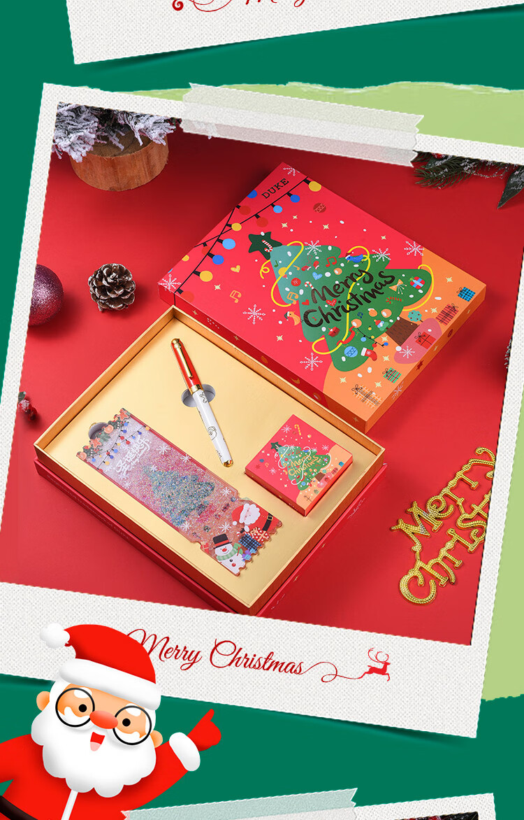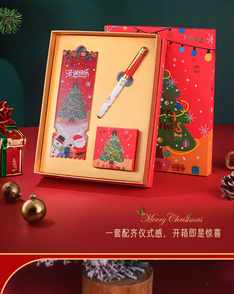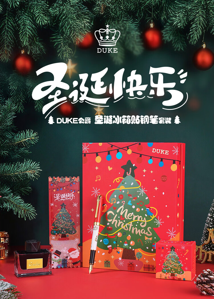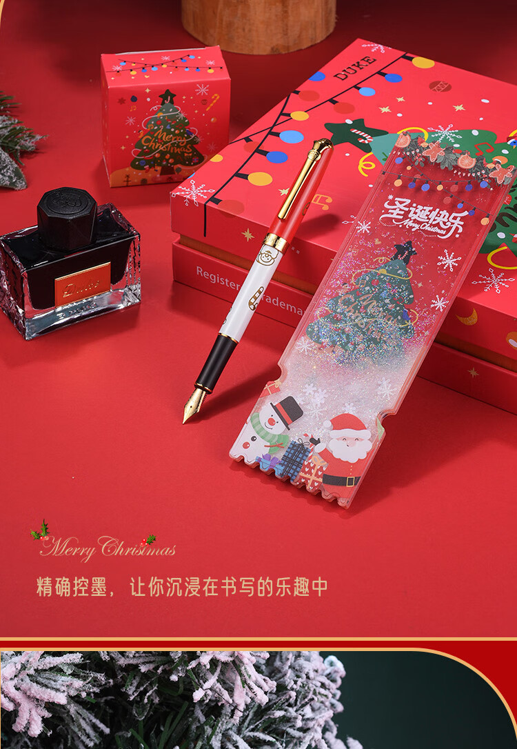 DUKE公爵圣诞节系列套装2红色气氛款铱金笔钢笔墨水笔自用书写送人自用书写顺滑可用墨囊 圣诞树挂件套装(红色笔帽)