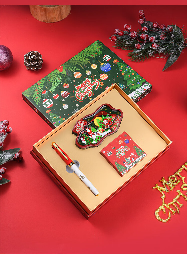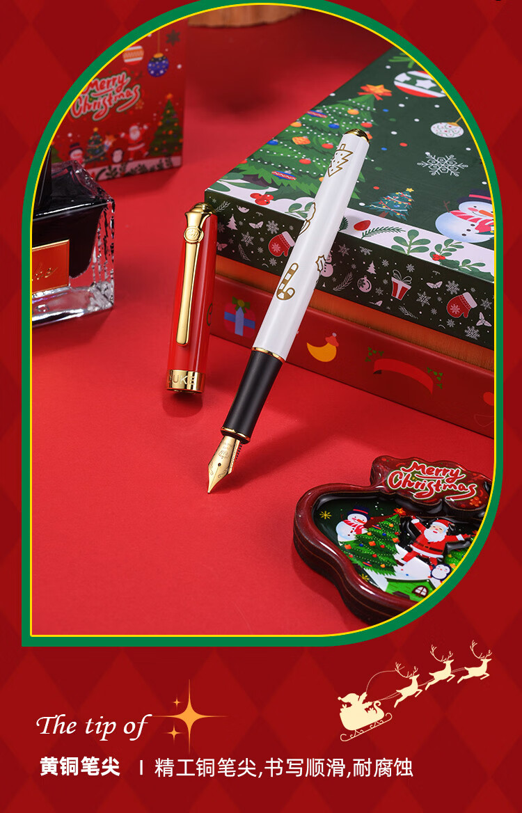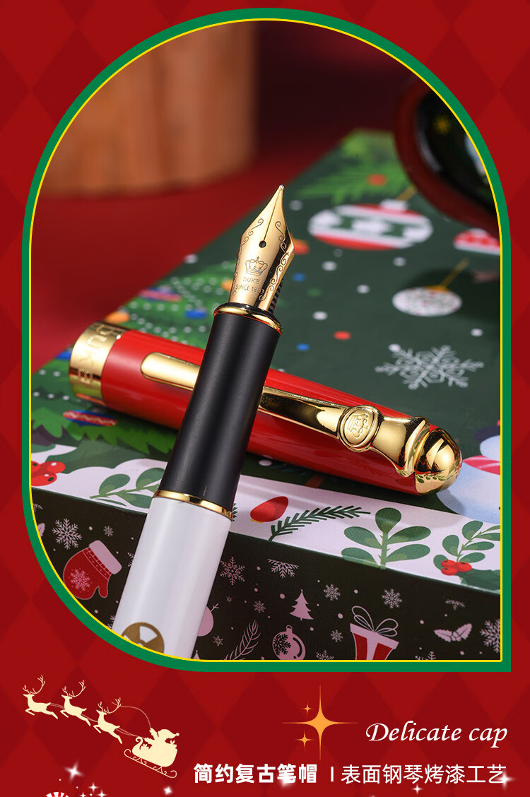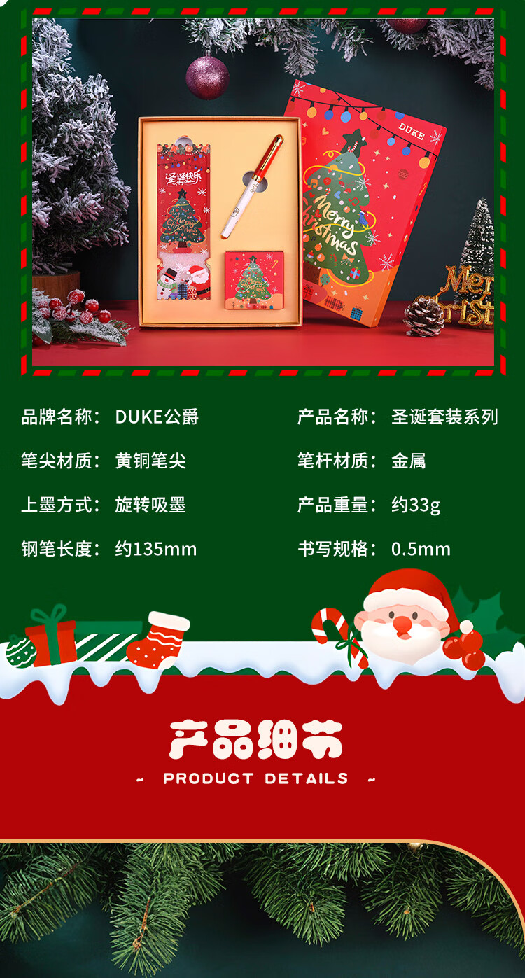 DUKE公爵圣诞节系列套装2红色气氛款铱金笔钢笔墨水笔自用书写送人自用书写顺滑可用墨囊 圣诞树挂件套装(红色笔帽)