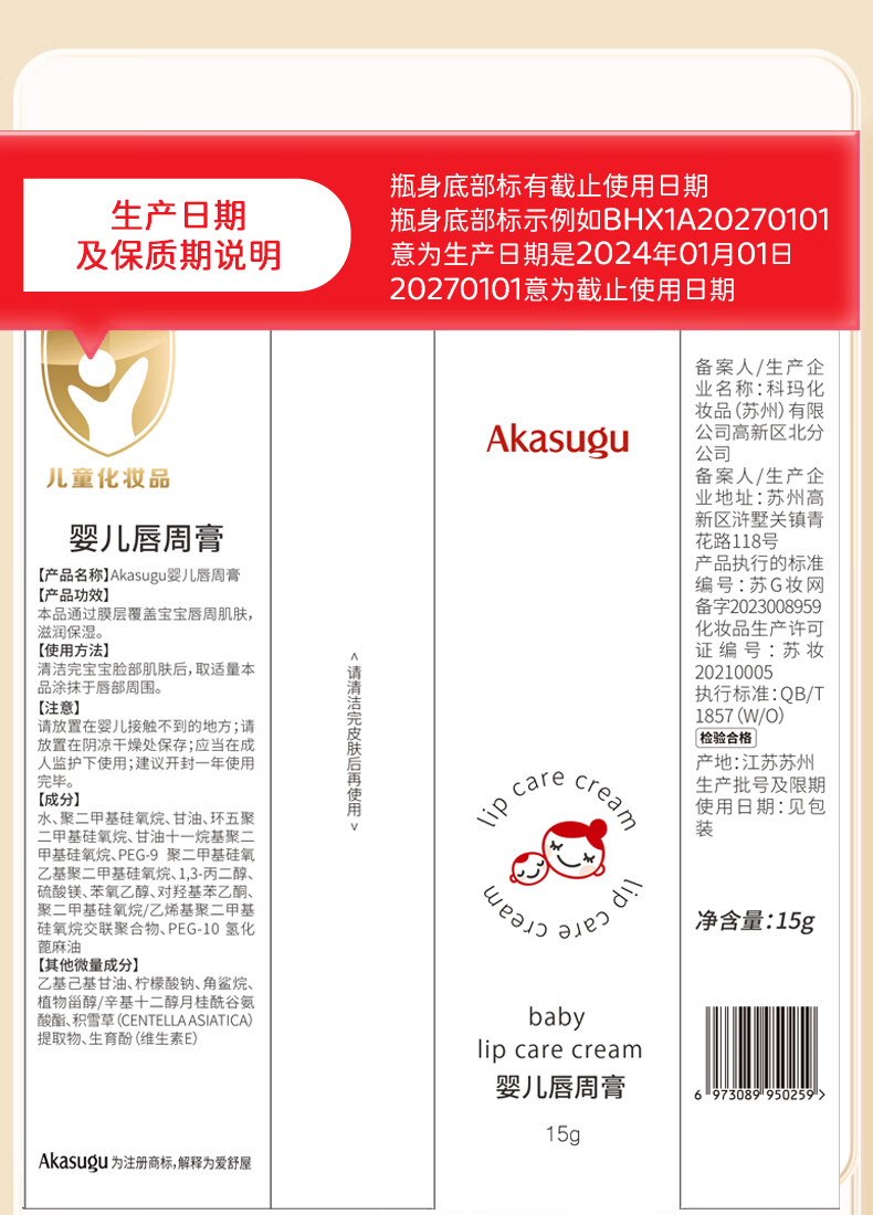 Akasugu爱舒屋婴儿唇周膏15g 宝宝口水膏护理膏嘴部滋润疹舒缓保湿面霜