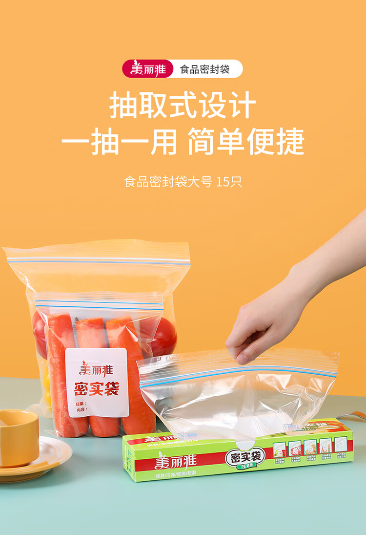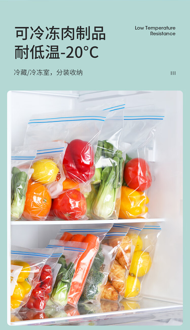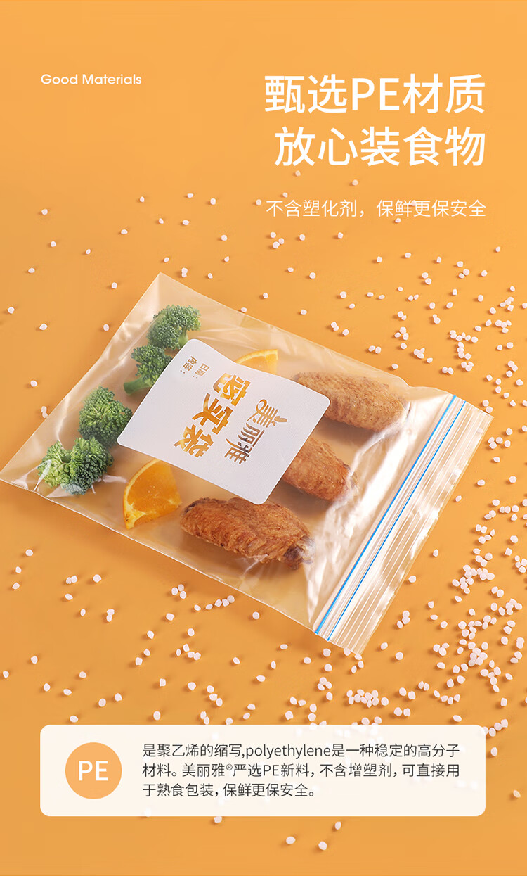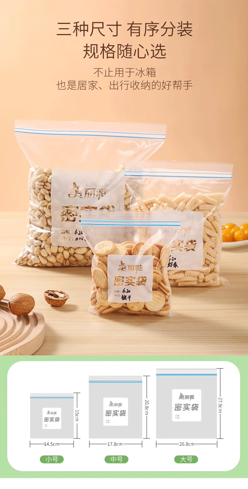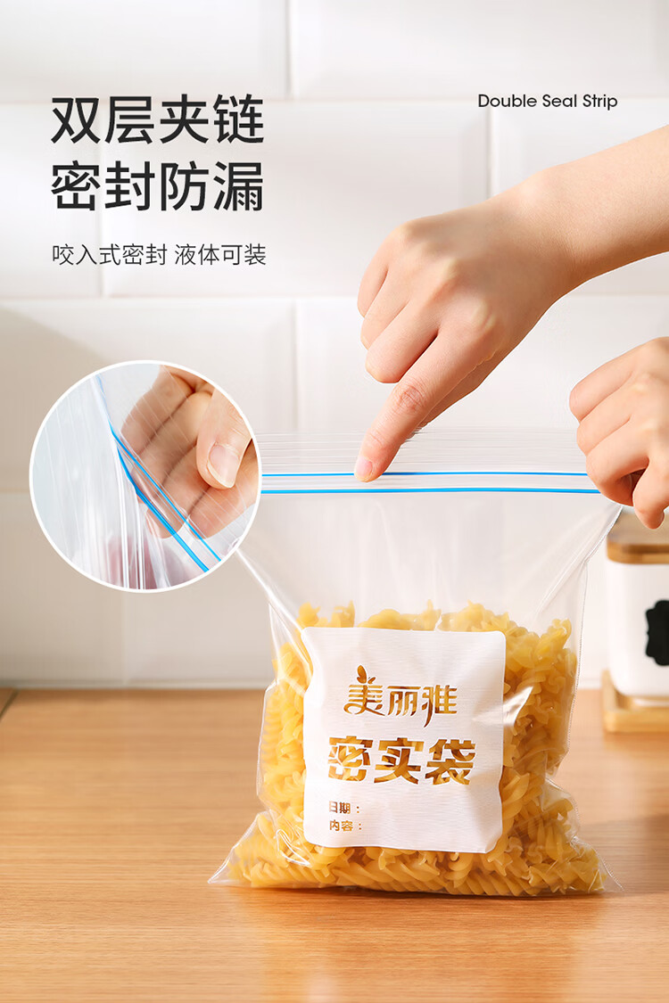 美丽雅食品密封袋拉链式真空分装密实袋加厚双重保鲜食品保鲜袋 【中号+小号】70只 1个