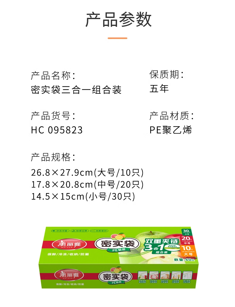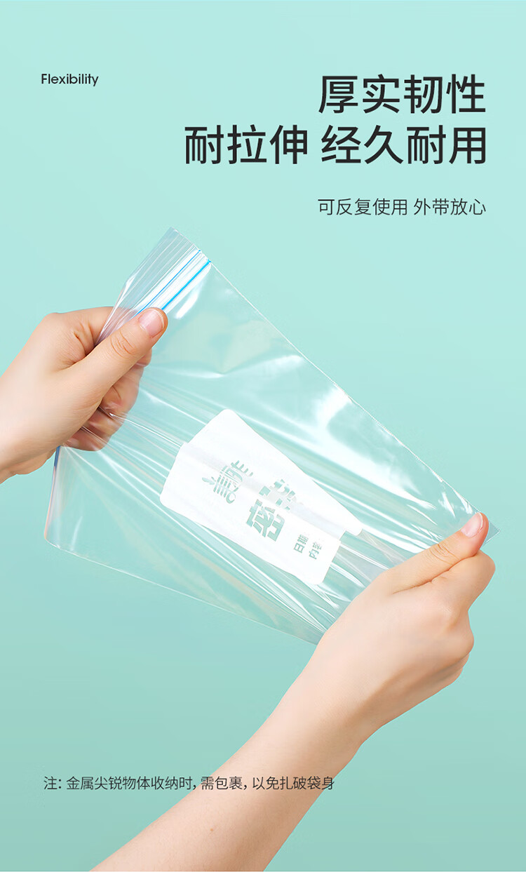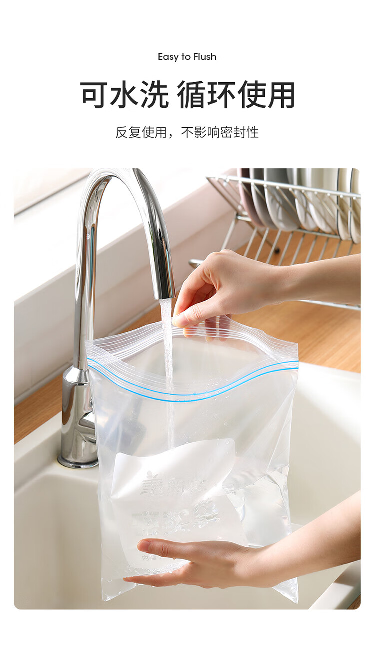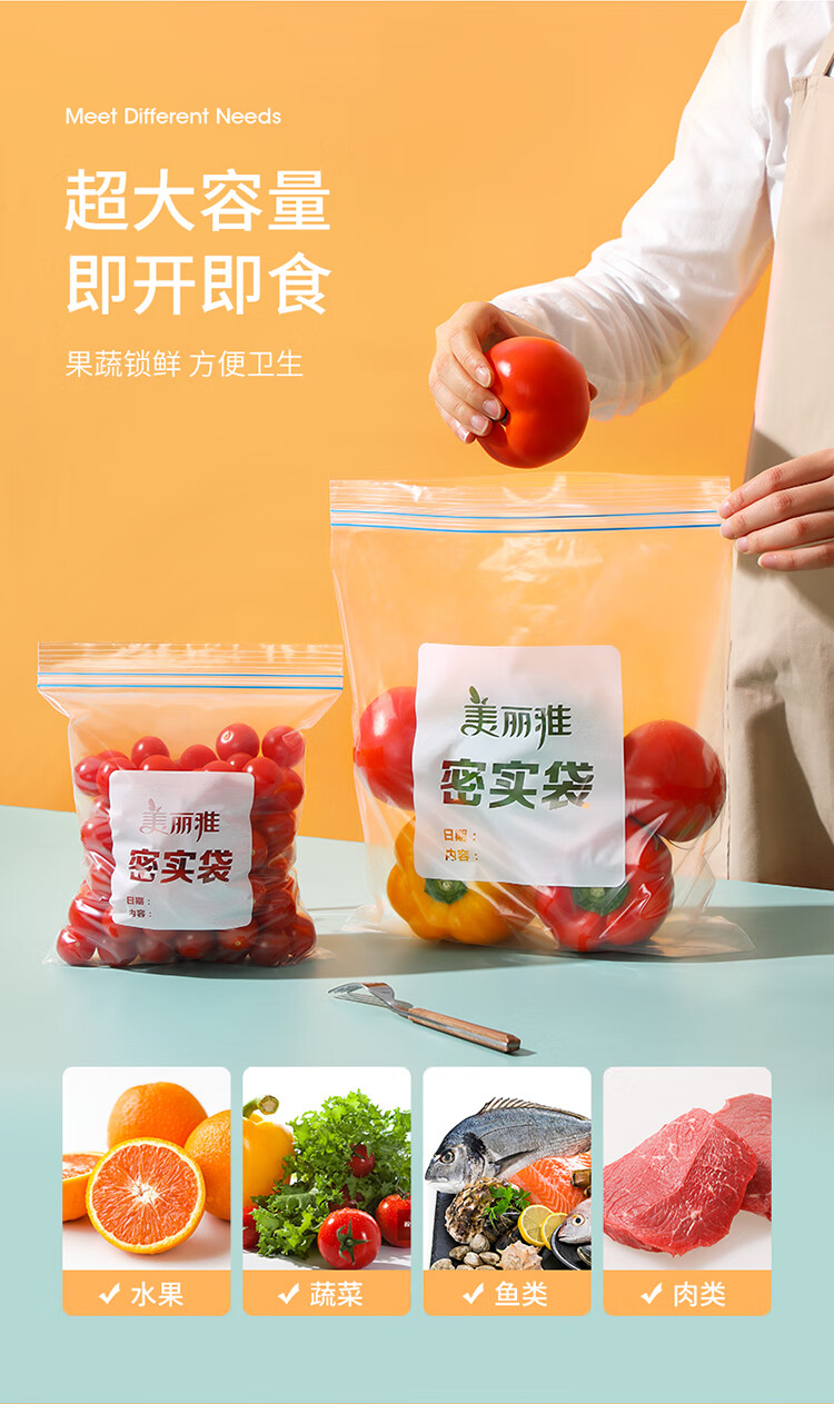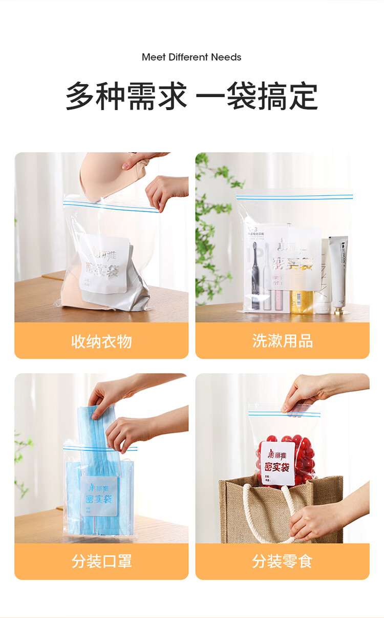 美丽雅食品密封袋拉链式真空分装密实袋加厚双重保鲜食品保鲜袋 【中号+小号】70只 1个