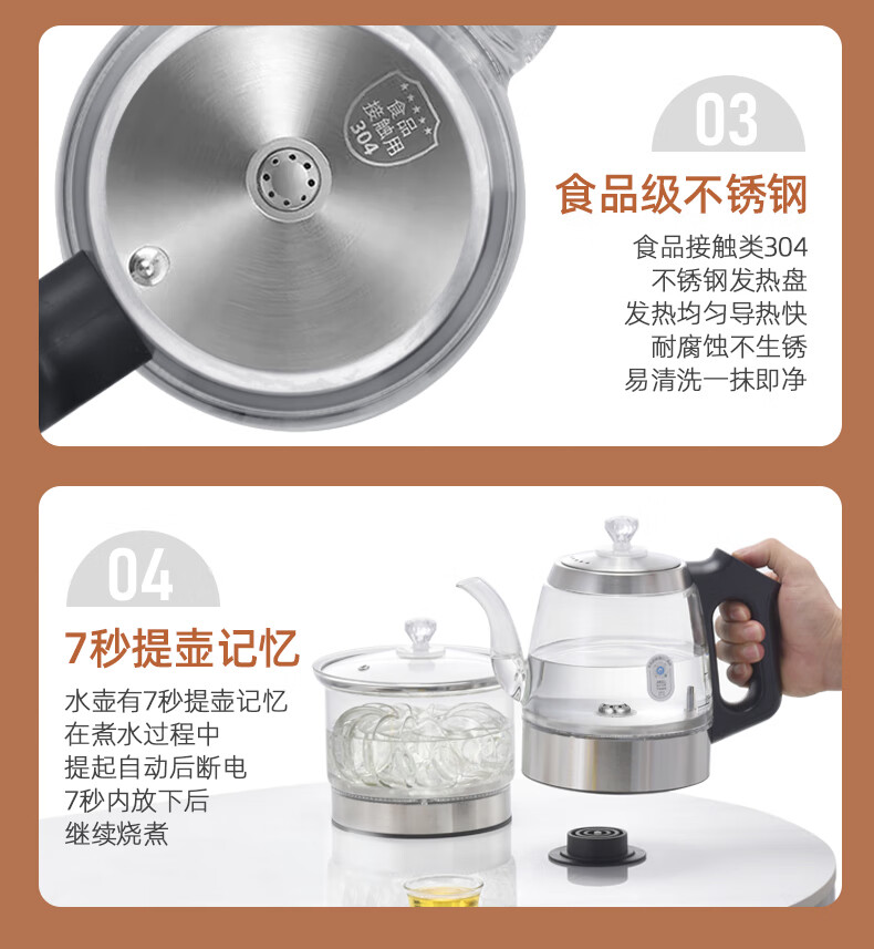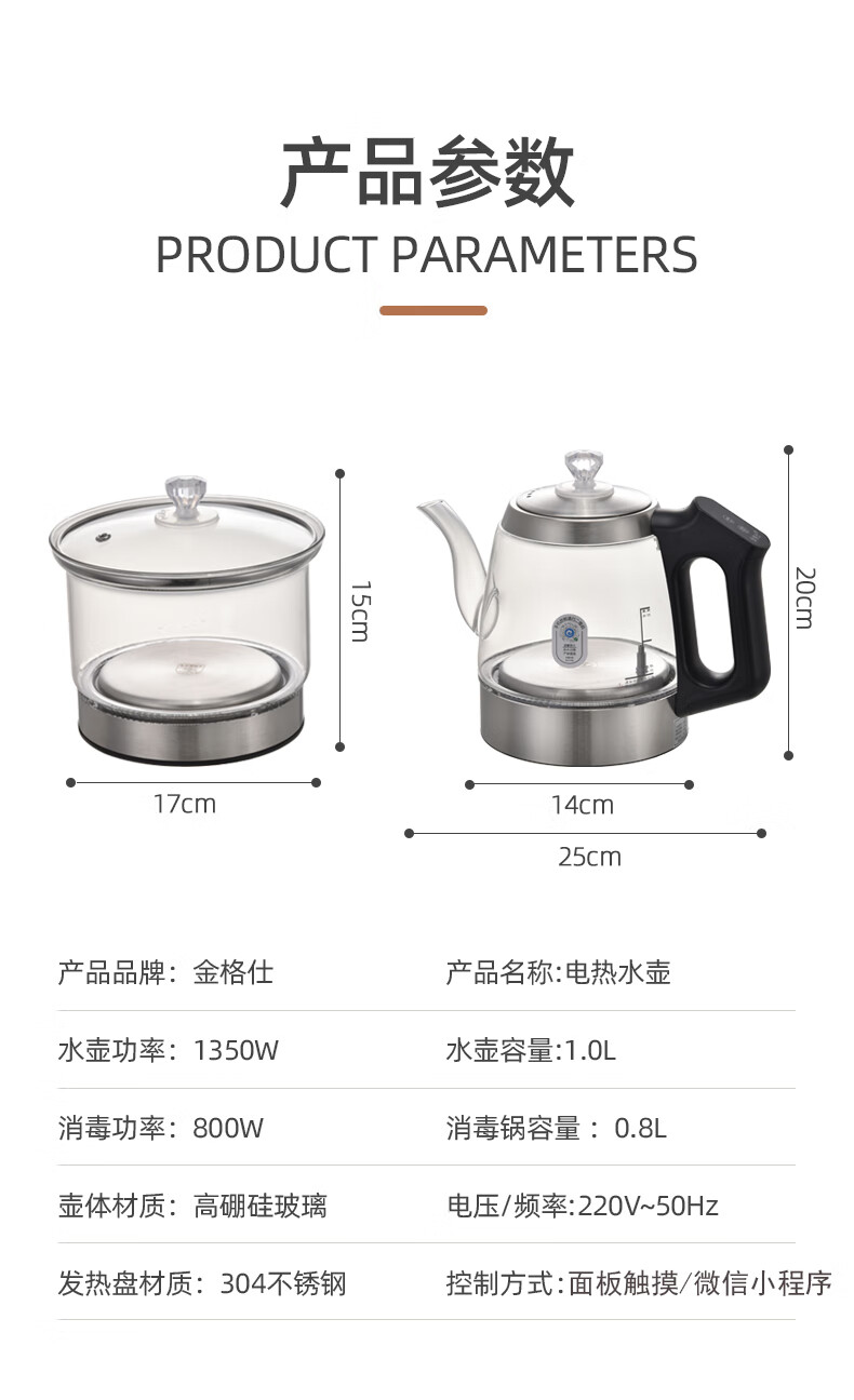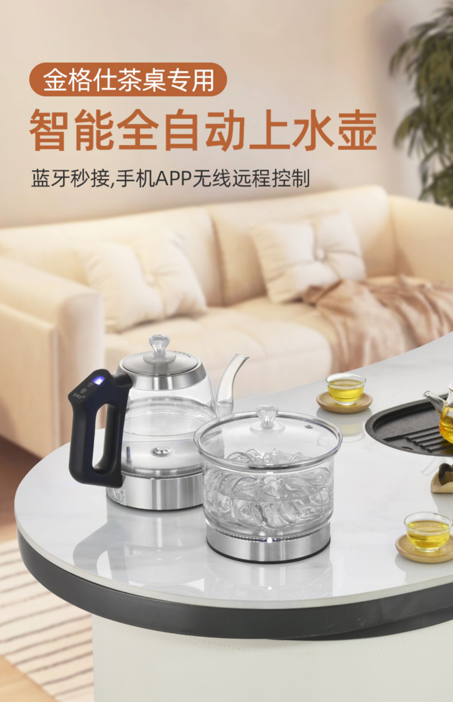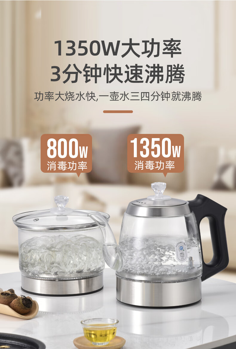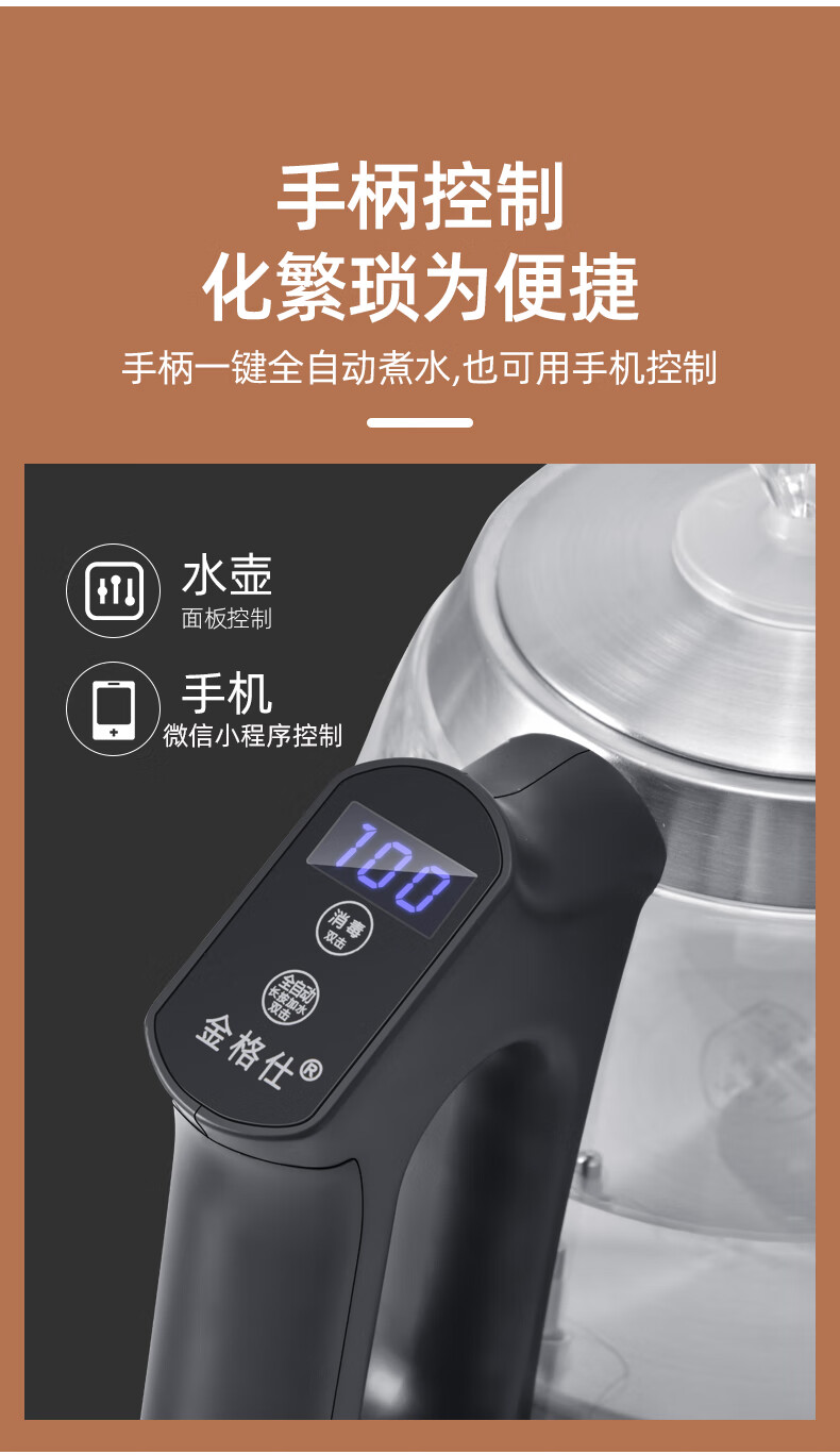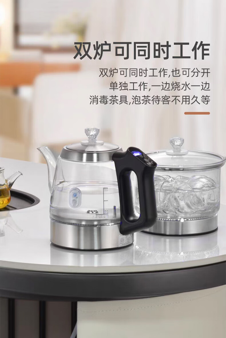 金格仕(KinGaz)全自动底部上水电热水壶 3孔岩板茶几暗装机隐藏式自动水壶电磁茶炉 两孔电茶炉 底部上水烧水壶 1L 双孔消毒款【蓝牙版】