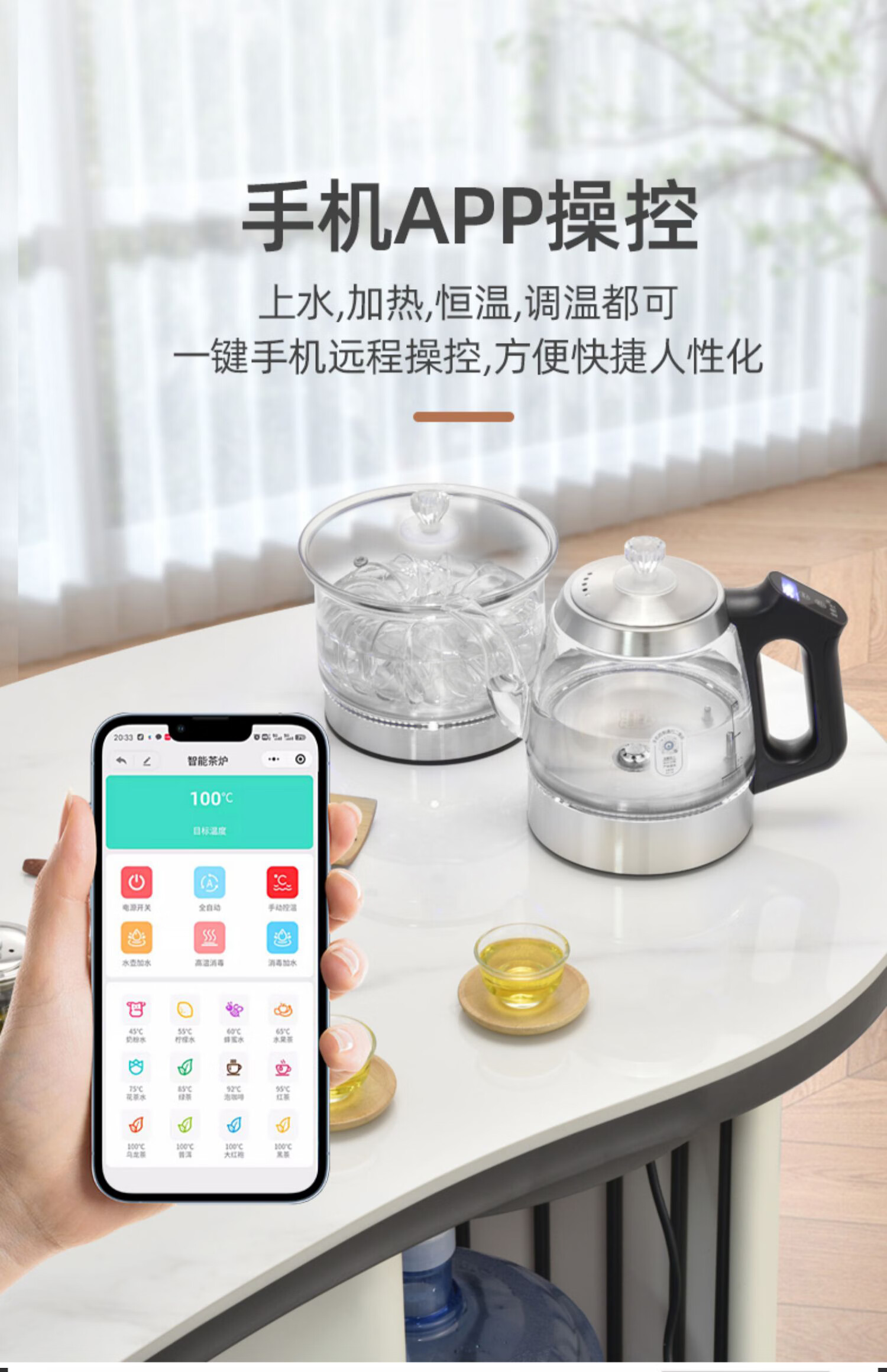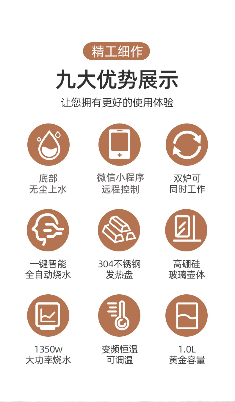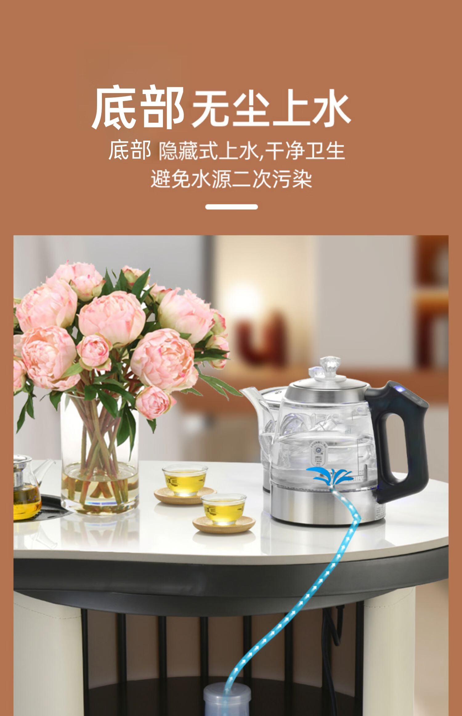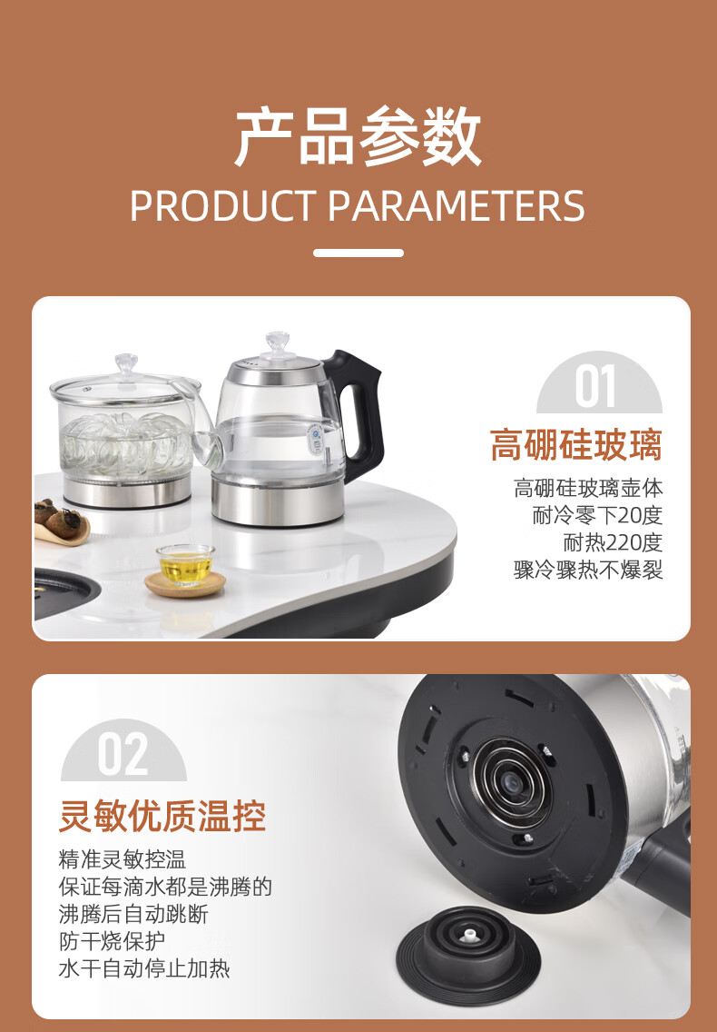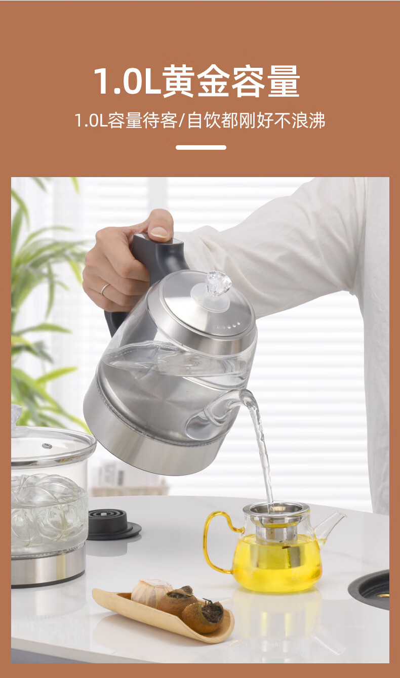 金格仕(KinGaz)全自动底部上水电热水壶 3孔岩板茶几暗装机隐藏式自动水壶电磁茶炉 两孔电茶炉 底部上水烧水壶 1L 双孔消毒款【蓝牙版】