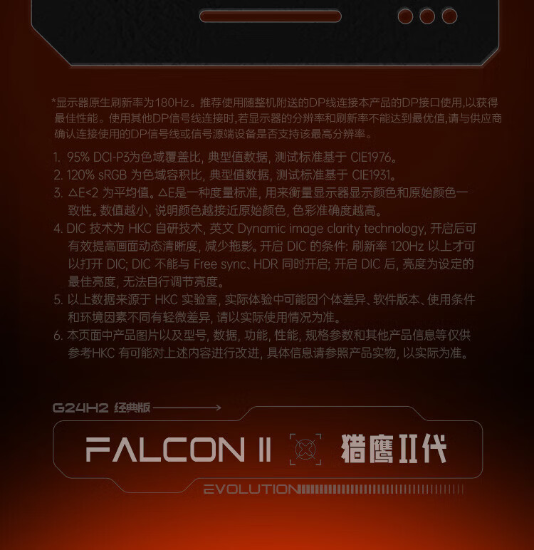HKC 23.8英寸2K 180Hz高刷FastIPS硬件低蓝光HDR400广色域1ms游戏电竞PS5电脑显示器猎鹰 G24H2经典版