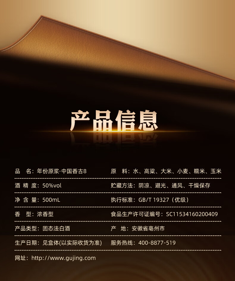 古井贡酒 年份原浆 中国香古8 浓香型白酒 50度 500ml*2瓶 双瓶装