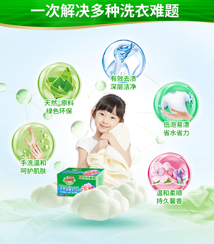 好爸爸(Kispa)亲肤粒子皂洗衣皂210g*2块天然酵素因子温和洁净